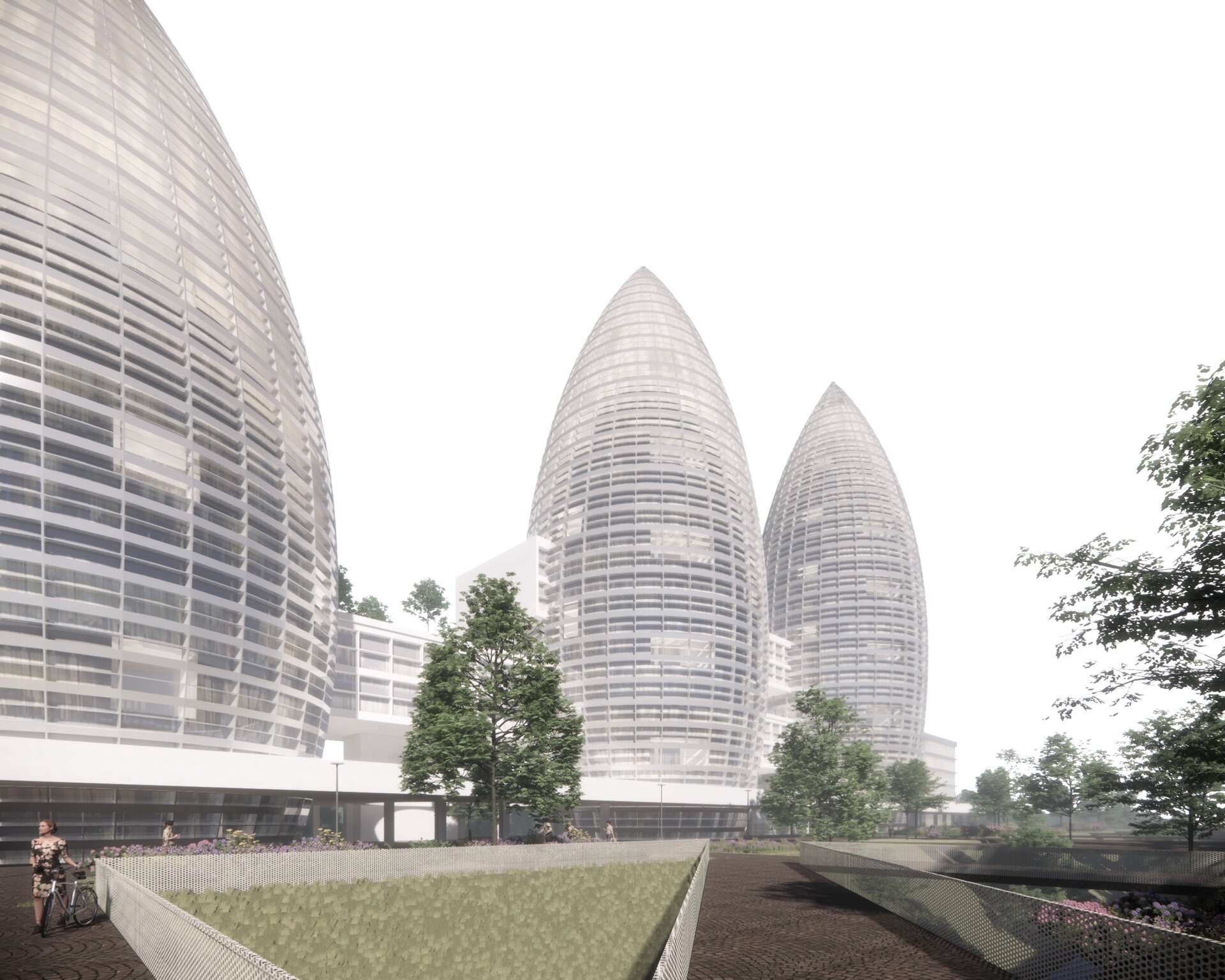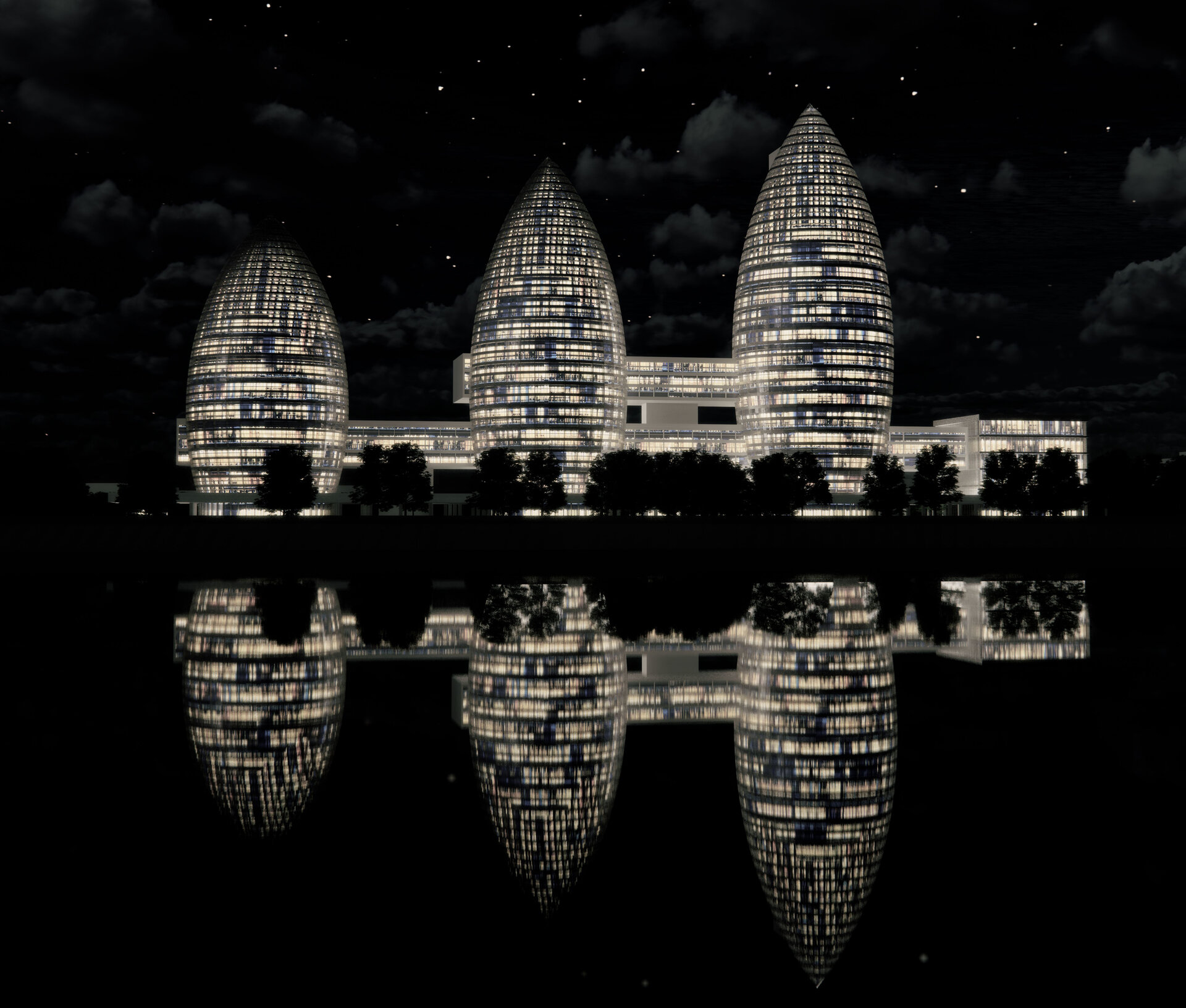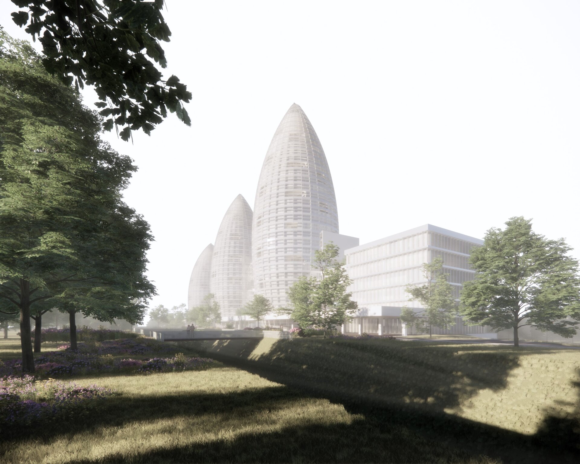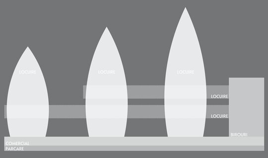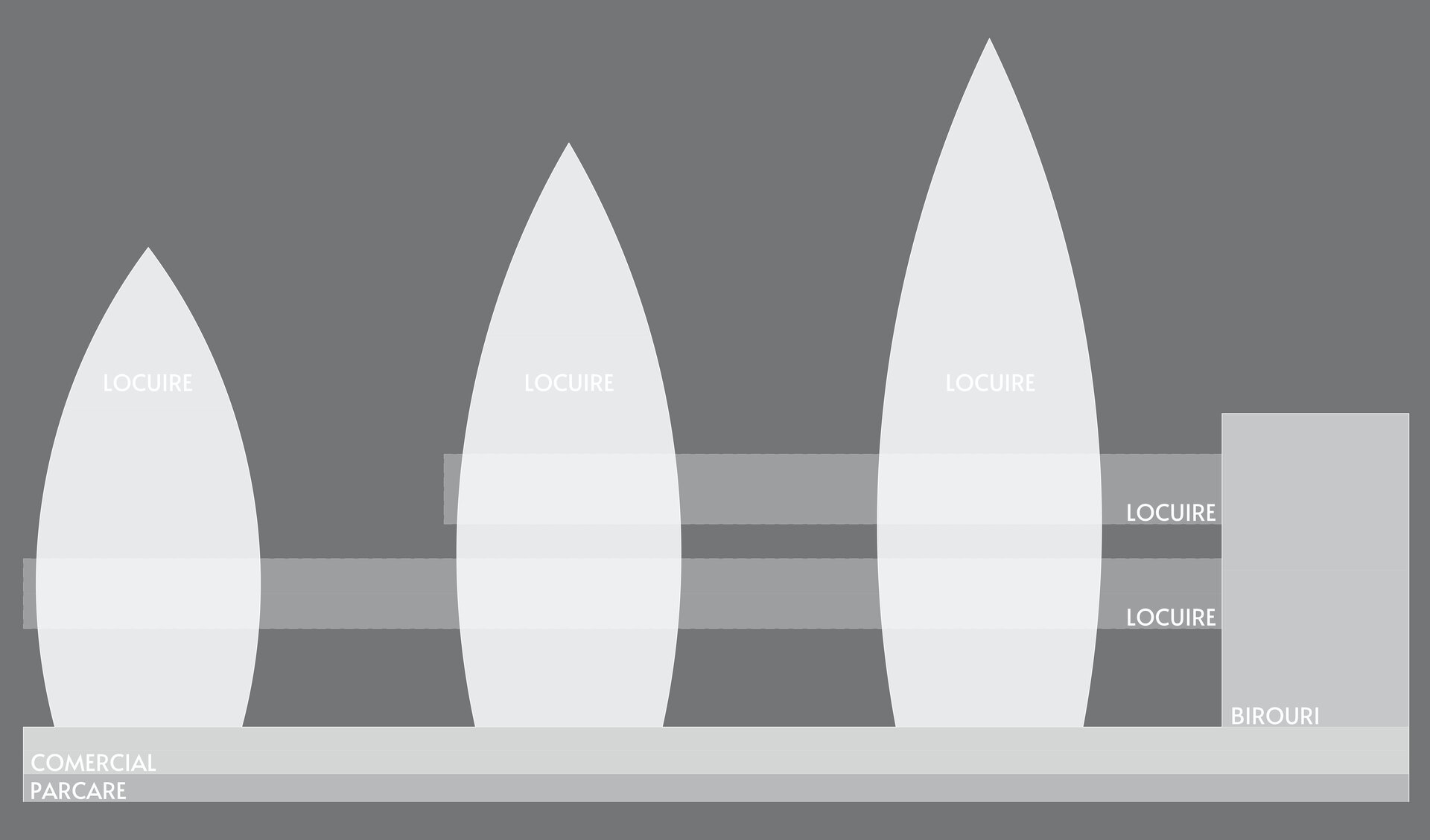 urban și elementul natural. Cele trei turnuri sculpturale, cu înălțimi variabile, reprezintă o interpretare simbolica a unei ambarcatiuni combinate cu forma de flacara ce conduce spre realizarea unui reper urbanistic.