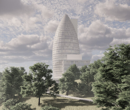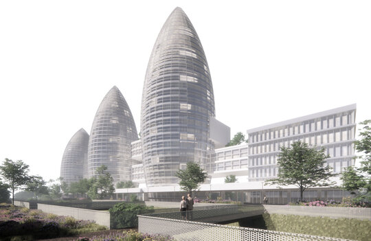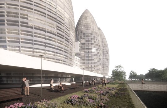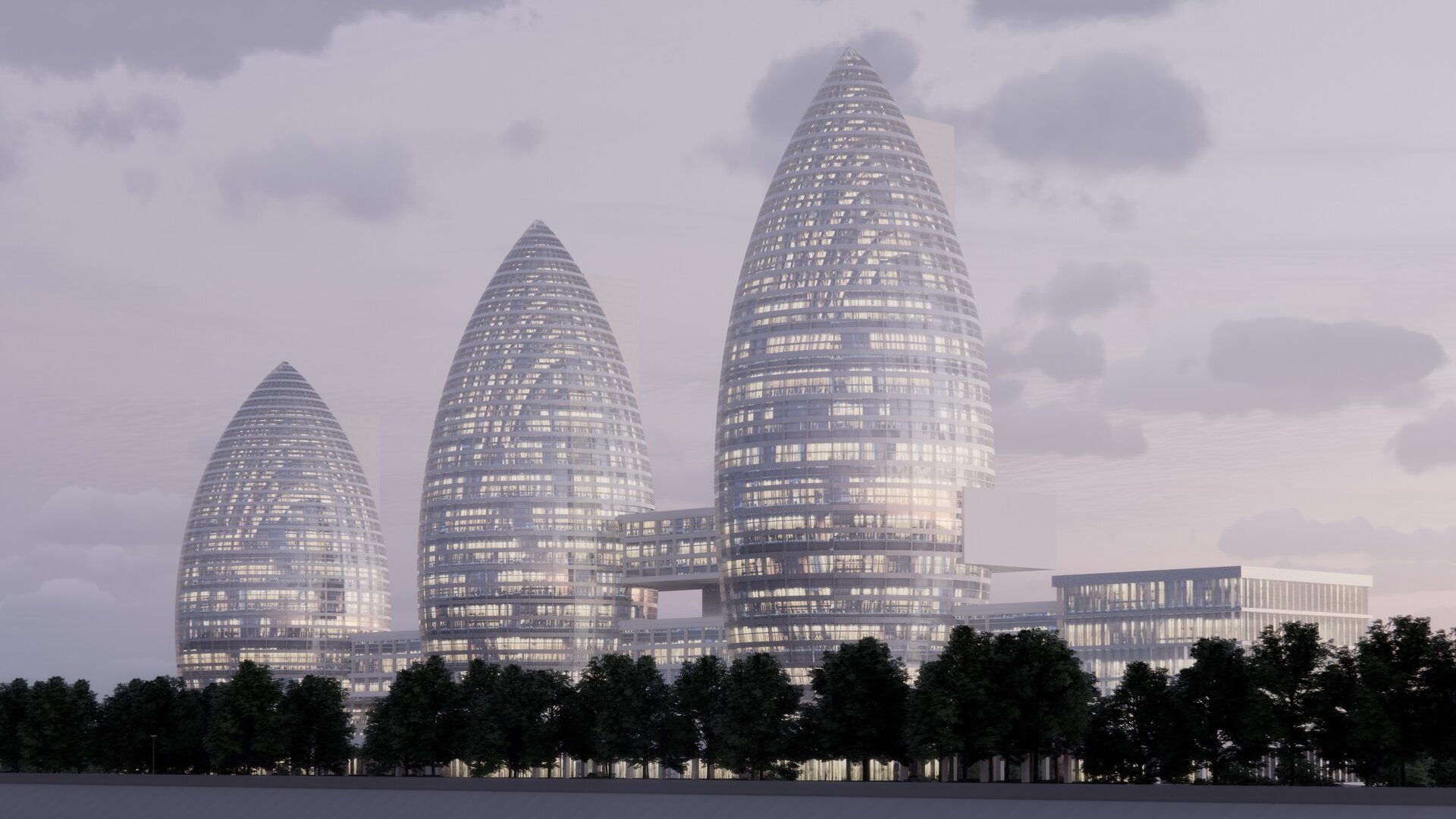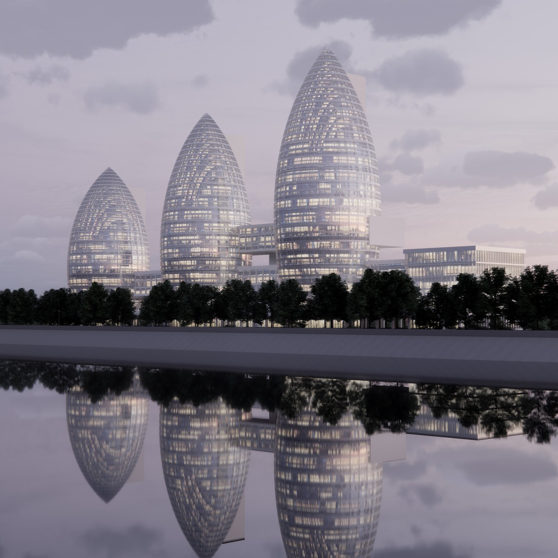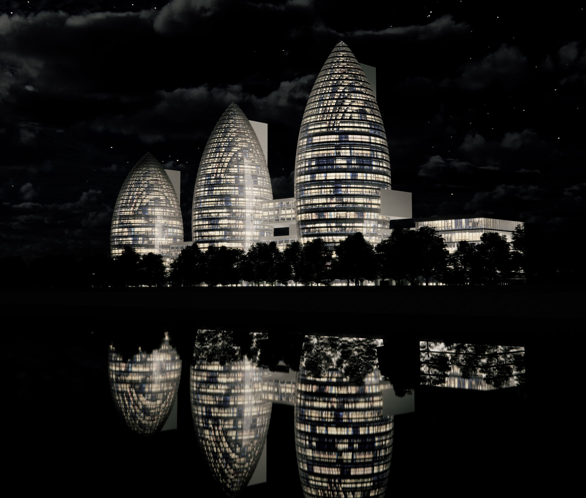 urban și elementul natural. Cele trei turnuri sculpturale, cu înălțimi variabile, reprezintă o interpretare simbolica a unei ambarcatiuni combinate cu forma de flacara ce conduce spre realizarea unui reper urbanistic.