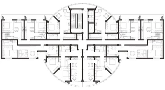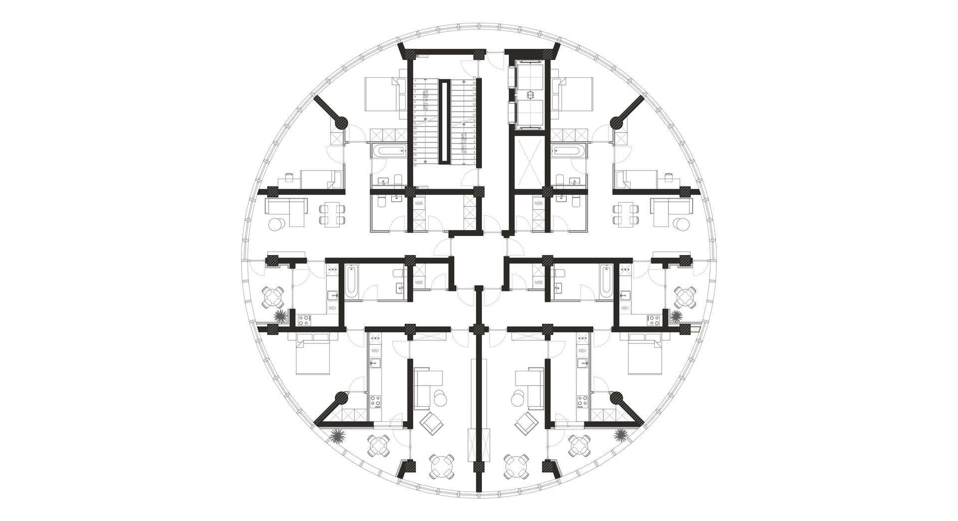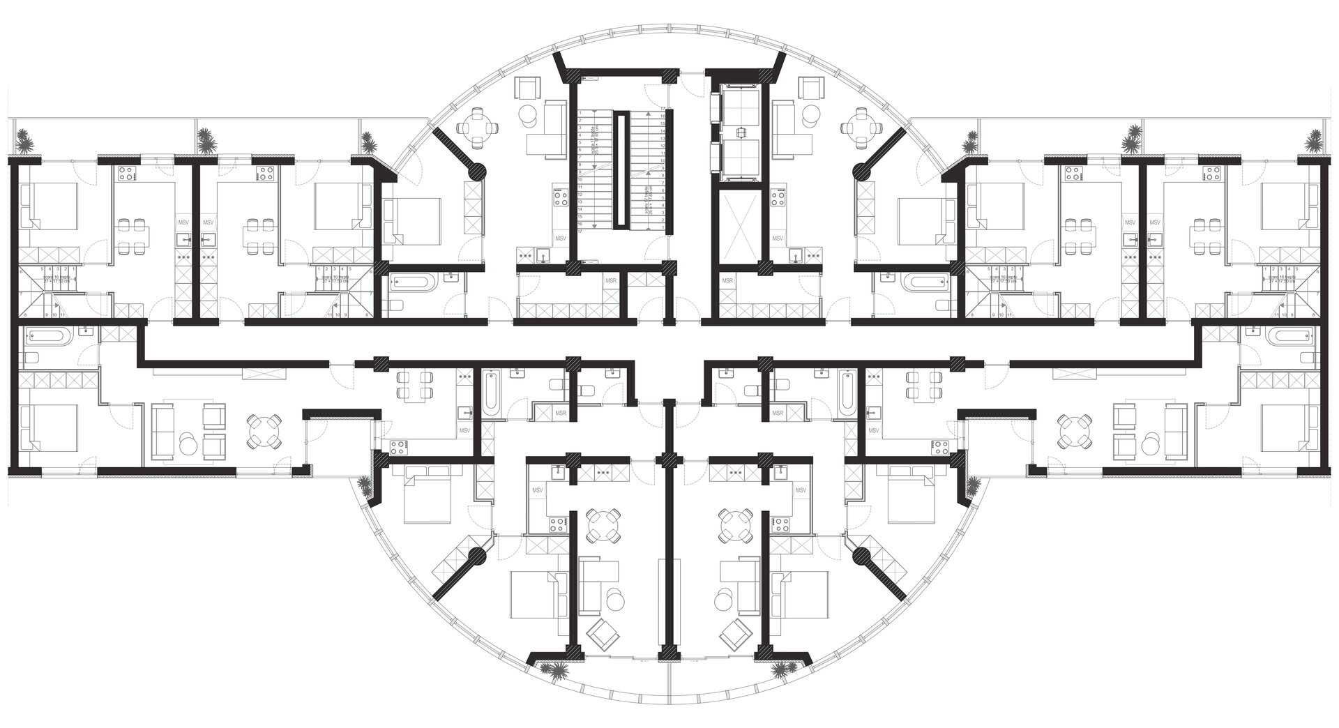 Alegerea conectării turnurilor printr-o serie de bare suspendate creează un dialog între spațiul privat și spațiul comun. Aceste zone de