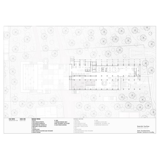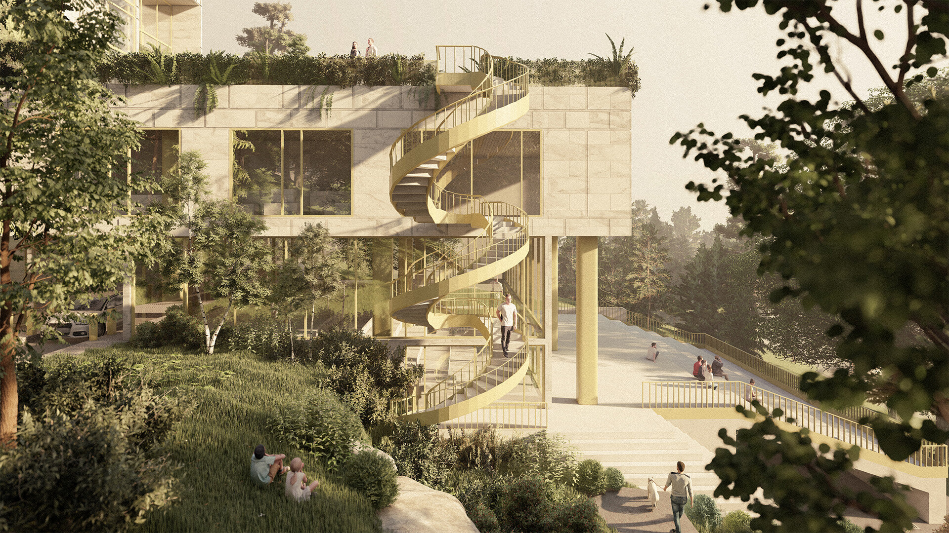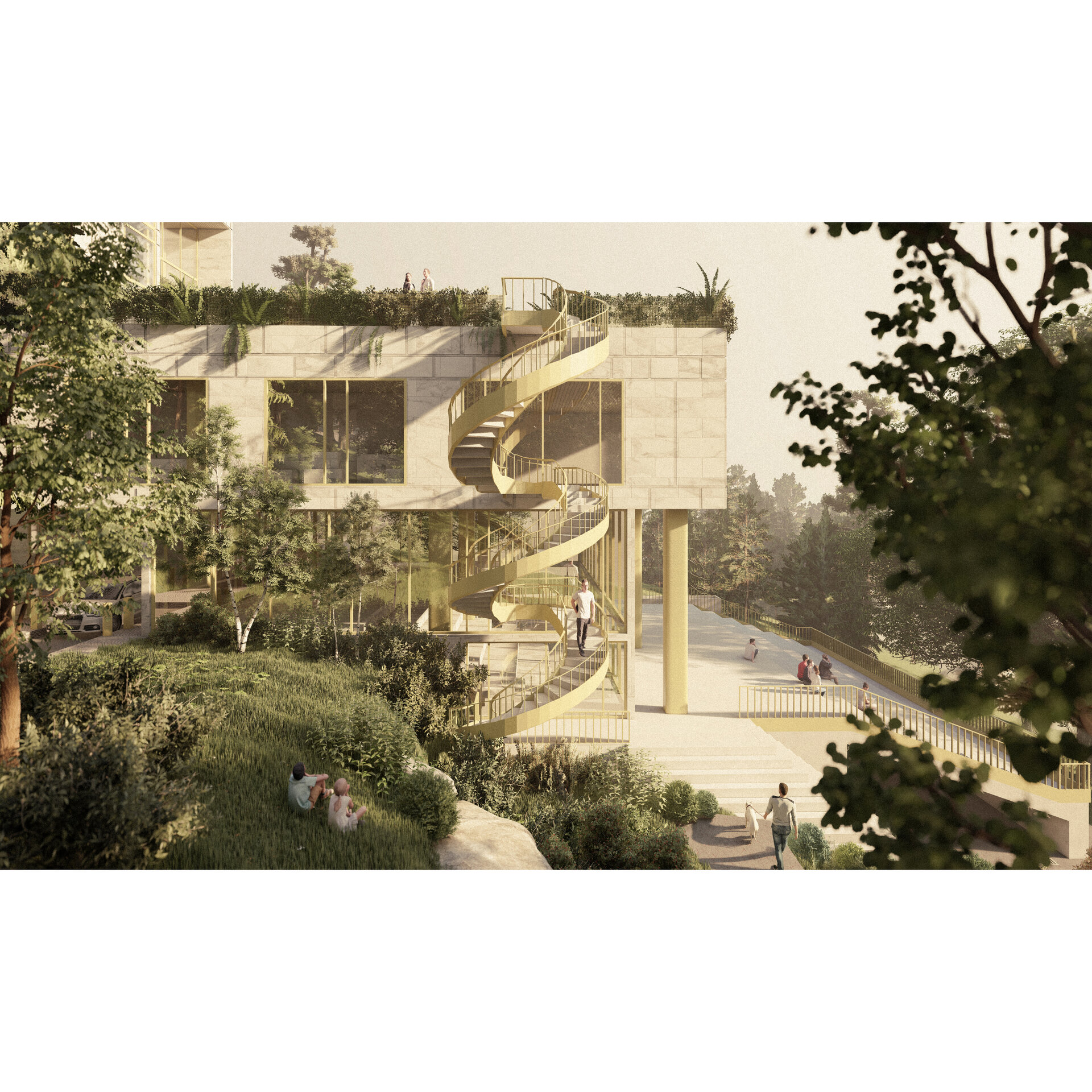 Viitoarea construcție va reprezenta un liant prin care comunitatea să aibă acces la spațiul natural al pădurii din apropiere. Această relație va fi stabilită prin intermediul unor terase amenajate, publice, deschise, care să transforme situl într-un nucleu viu ce invită observatorul să parcurga spațiul. Va fi creat un dinamism aparte care va anima zona și va îmbunătăți calitatea sa urbană.