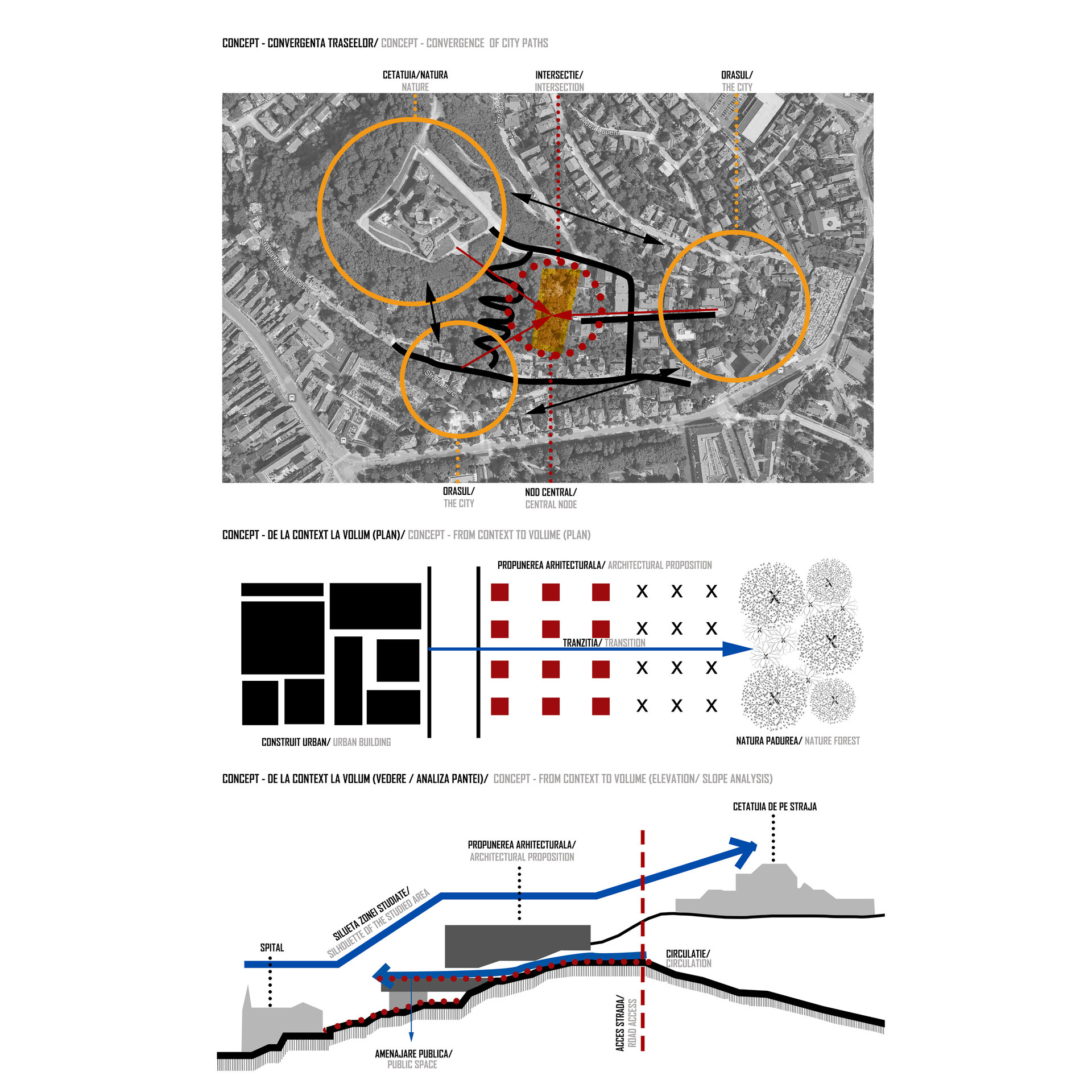 Intervenția își propune să accentueze identitatea culturală a locului, punând în valoare simbolurile arhitecturale și istorice ale orașului ce se află în vecinătatea sitului. Construcția propusă se va raporta la specificul zonei, fără să își impună dominanța.