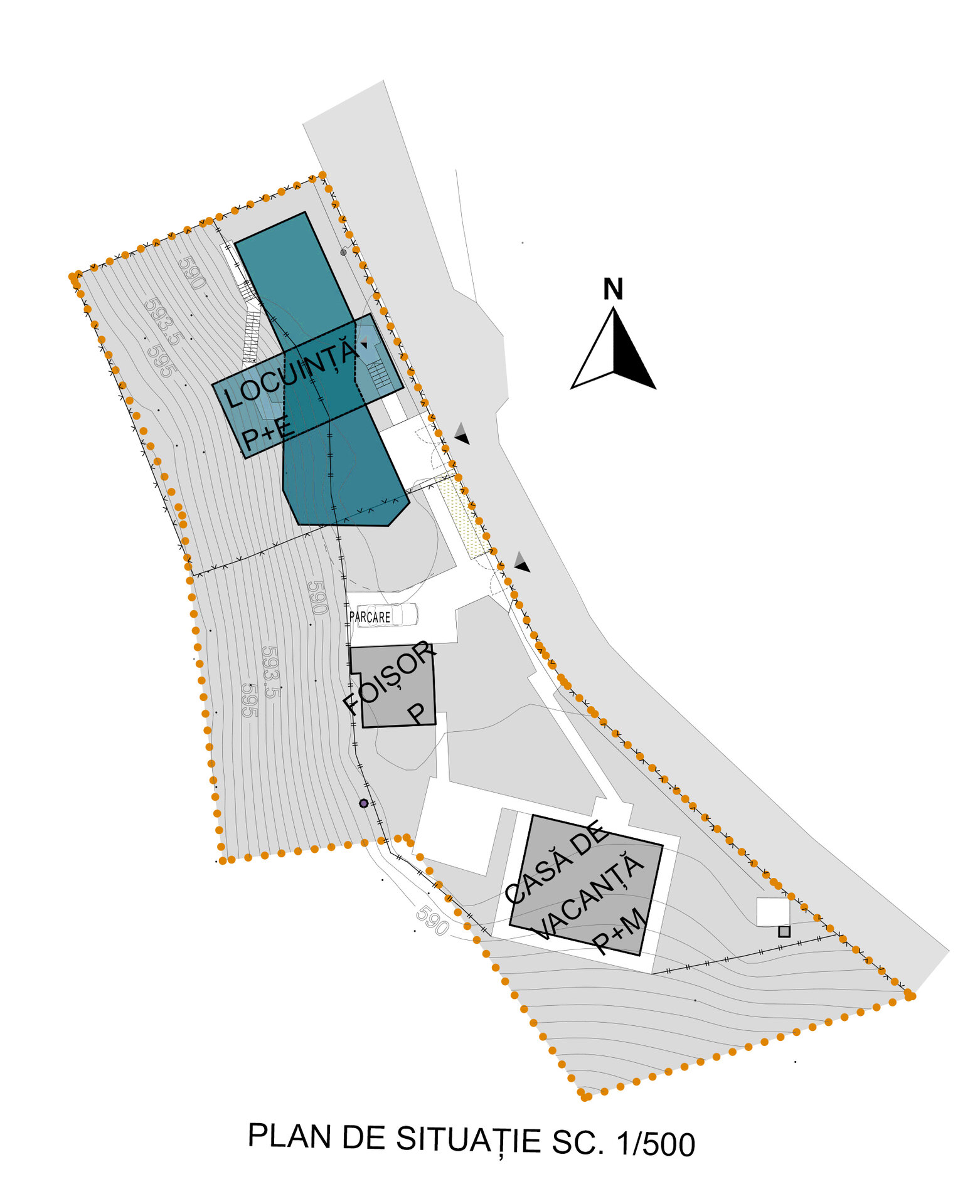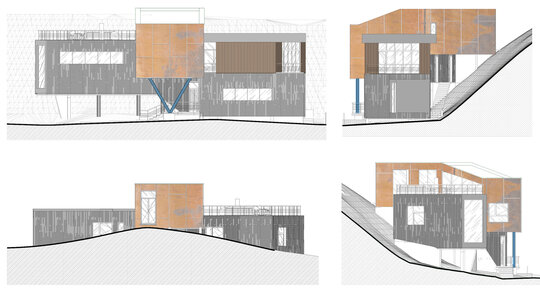 Alegerea dispunerii volumelor pornește de la necesitatea de a oferi un răspuns parcularităților amplasamentului (unghiul abrupt al versantului care ajunge la 45 de grade în anumite zone) precum și de la punerea în valoare a anumitor priveliști prin alegerea unor puncte de observație.