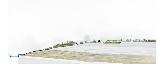 - la nivelul de sus - platoul - retenția este esențială. Noile corpuri de apă, dar și o selecție de vegetație adecvată rețin apa și o descarcă mai lent la vale, funcționând ca un tampon crucial în amonte în caz de furtună;