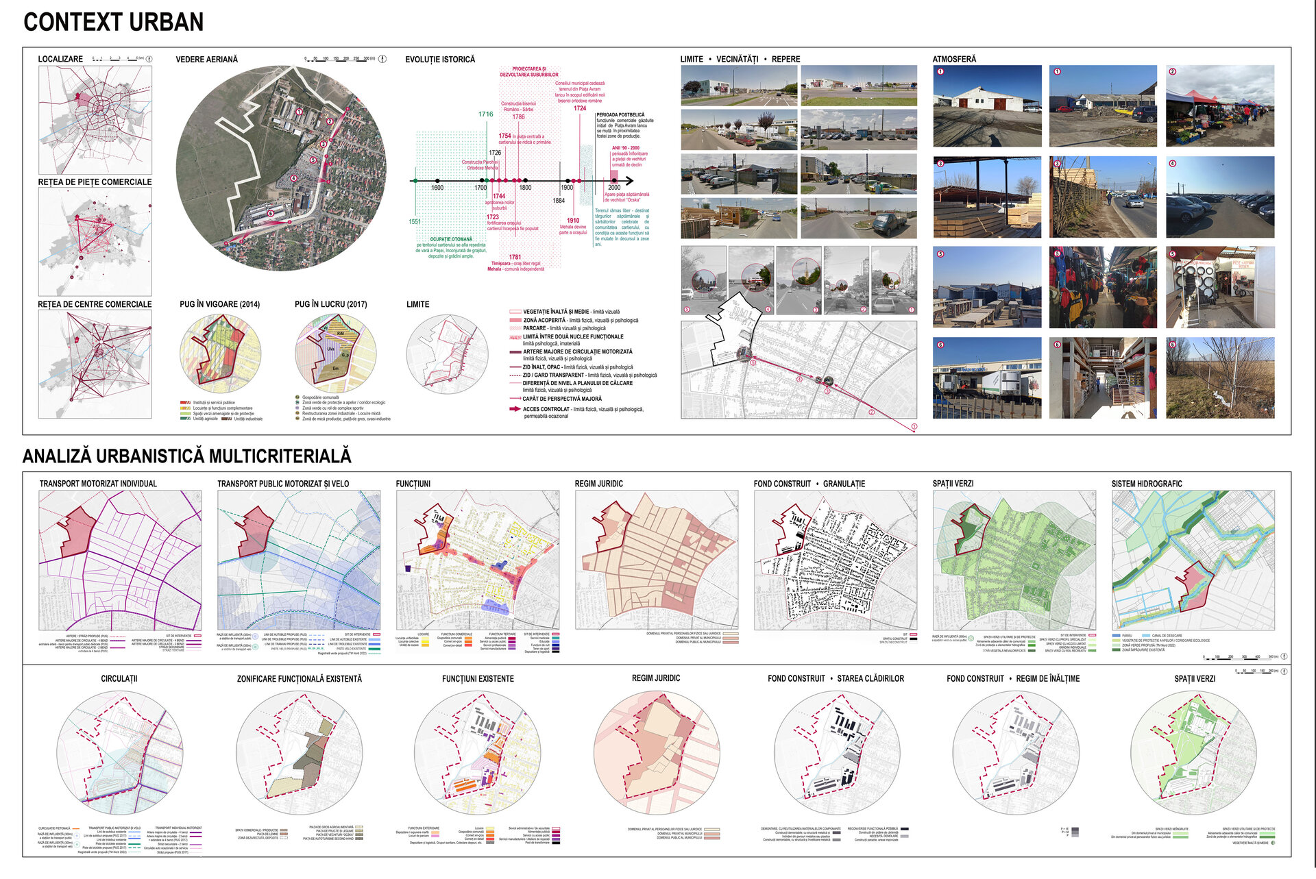 Analiza contextului a generat o serie de concluzii determinante pentru evoluția soluției. Metodele de cercetare utilizate au fost atât de natură etică (analiza hărților istorice și a literaturii de specialitate și realizarea analizei urbanistice multicriteriale), cât și emică (observații la fața locului, discuții cu utilizatorii, studiul identității locale). Au fost identificate elementele pozitive și negative de pe sit, clasificate în probleme de mobilitate, fond construit, elemente naturale, funcțiuni și percepție, soluția bazându-se pe PUG 2017 și Strategia de Dezvoltare Teritorială Urbană Timișoara Nord 2022, integrată parțial.