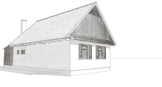 Locuinţa unifamilială propusă are o suprafaţă construită de 98,86 m2 şi regim de înălţime P, amplasat în zona mediană a lotului, are un plan simplu, cu o organizare spaţială tradiţională şi circulaţie interioară dependentă, compusă dintr-o cameră de zi centrală, două camere amplasate la vest, bucătărie, baie şi cămară la est. Accesul principal se face din curte, prin prispa de pe faţada sudică. Planimetria locuinţei a fost prelungită prin alipirea centralei termice, accesibilă atât din casă, cât şi din curte.