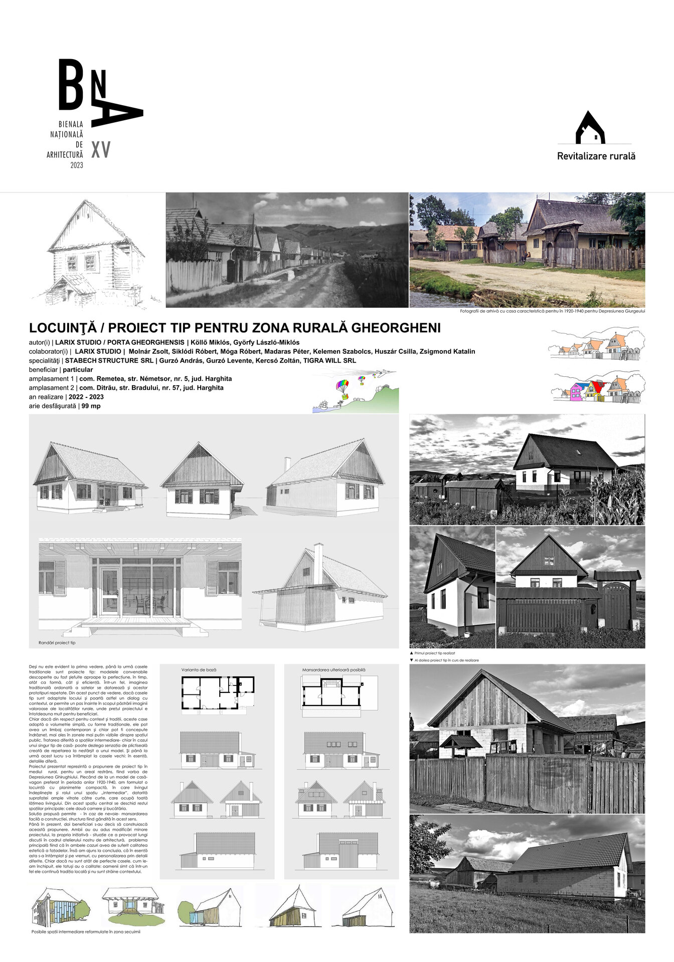 Proiectul prezentat reprezintă o propunere de proiect tip în mediul rural, pentru un areal restrâns, fiind vorba de Depresiunea Ghirughiului. A fost realizată în cadrul programului de inventariere a valorilor din zona rurală din judeţul Harghita, finanţată de Consiliul Judeţean Harghita. Programul urmăreşte protejarea şi păstrarea imaginii satului tradiţional, delimitarea zonelor de protecție a obiectivelor de patrimoniu, reglementarea modului de construire a clădirilor noi pentru a păstra atât identitatea locală, cât şi de a valorifica potenţialul turistic judeţean reprezentat de acestea. În cadrul proiectului, la un moment dat, s-a încercat schiţarea unor case tip posibile petru diferitele microregiuni etnografice a judeţului, care să nu fie deranjante în imaginea satelor.