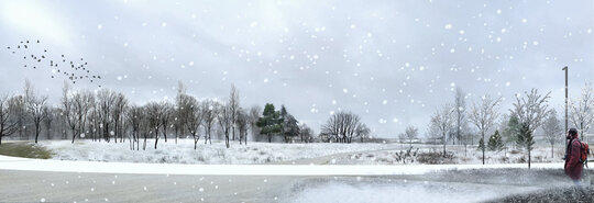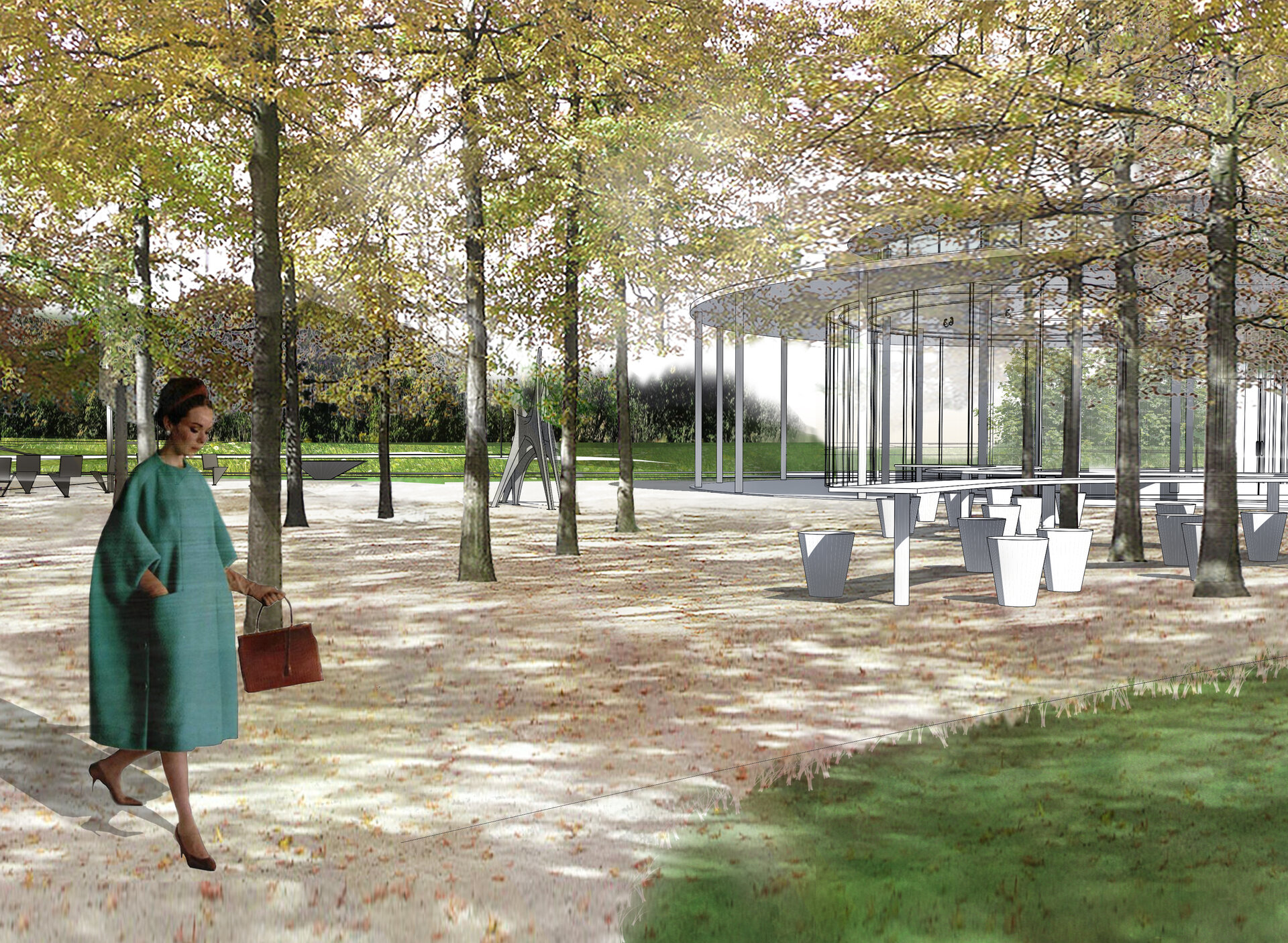 Actualul teren sterp din mijlocul parcului este încadrat de noi copaci și astfel apare luminișul - spațiul comun.