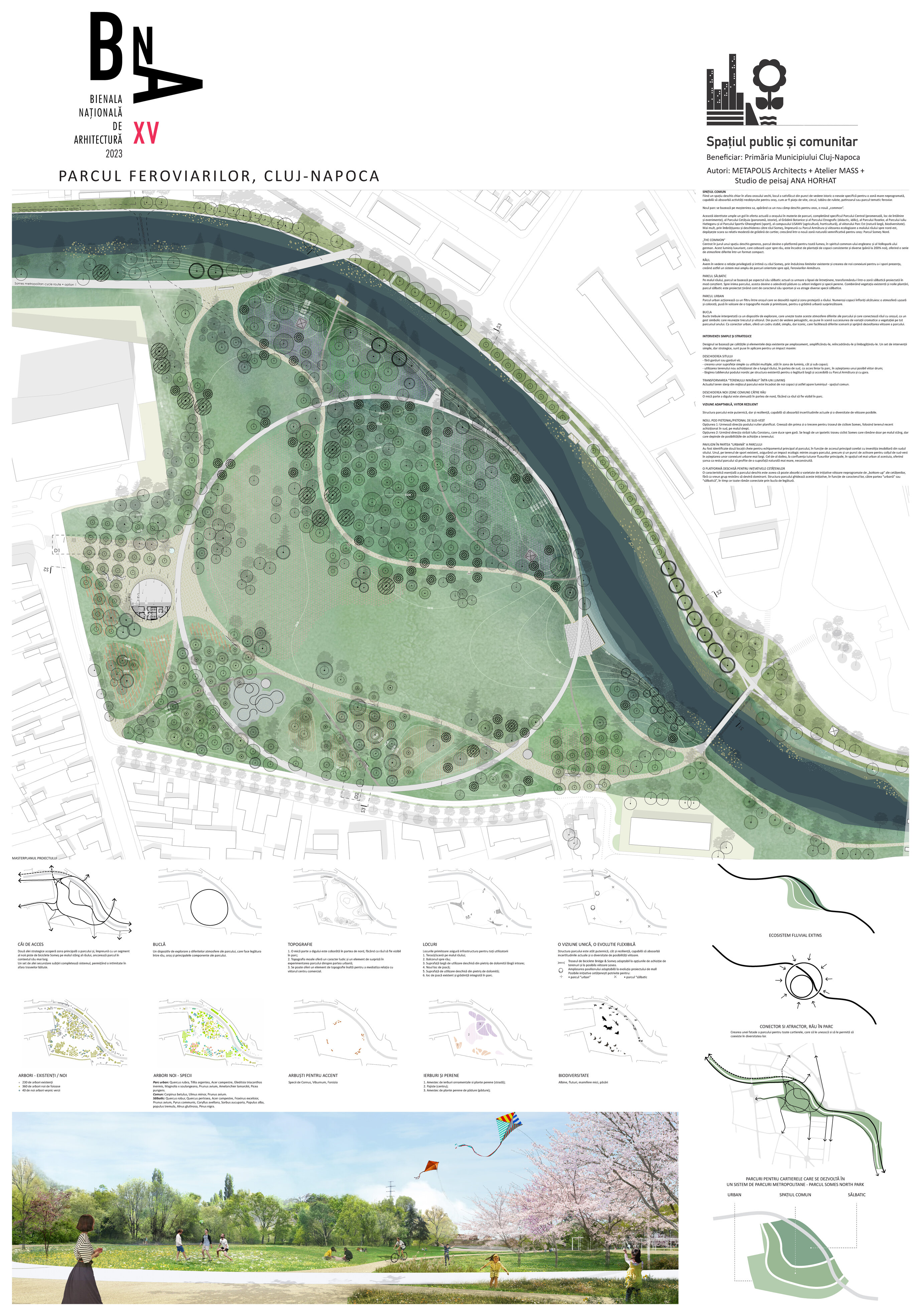 Avem în vedere o relație privilegiată și intimă cu râul Someș, prin îndulcirea limitelor existente și crearea de noi conexiuni pentru a-i spori prezența, creând astfel un sistem mai amplu de parcuri orientate spre apă, Feroviarilor-Armătura.