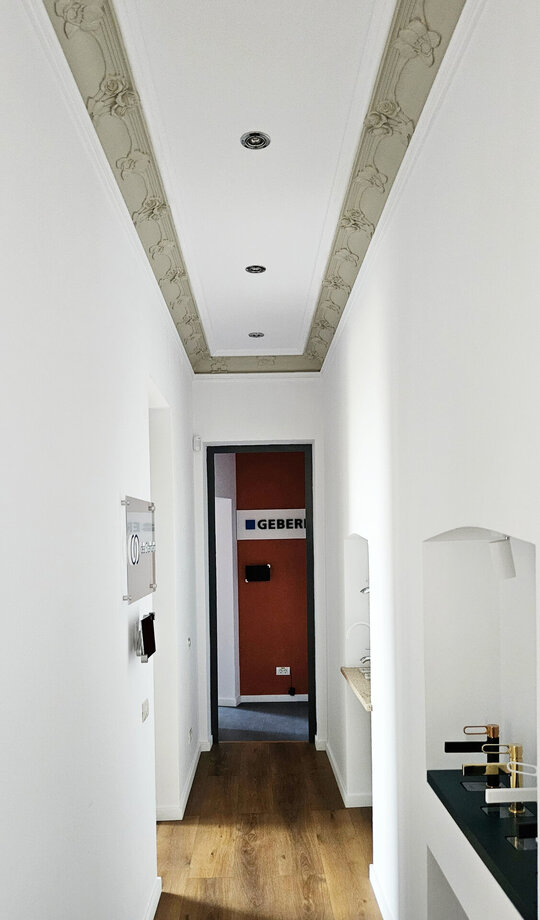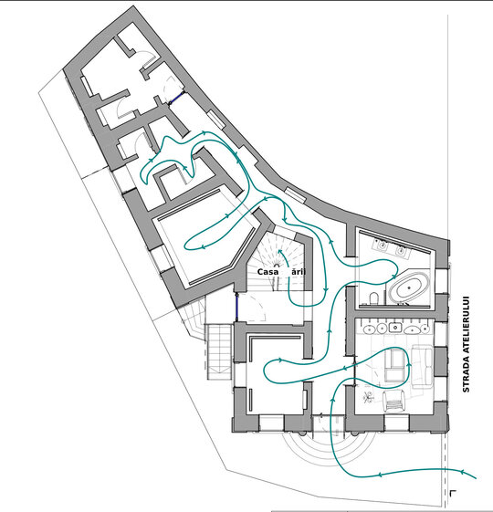 Expoziția urmează geometria casei monument prin camere-alveole de prezentare.Colaborarea dintre echipe a fost una de succes. Fiecare echipă a creat o baie unicat și a avut libertate de creație.