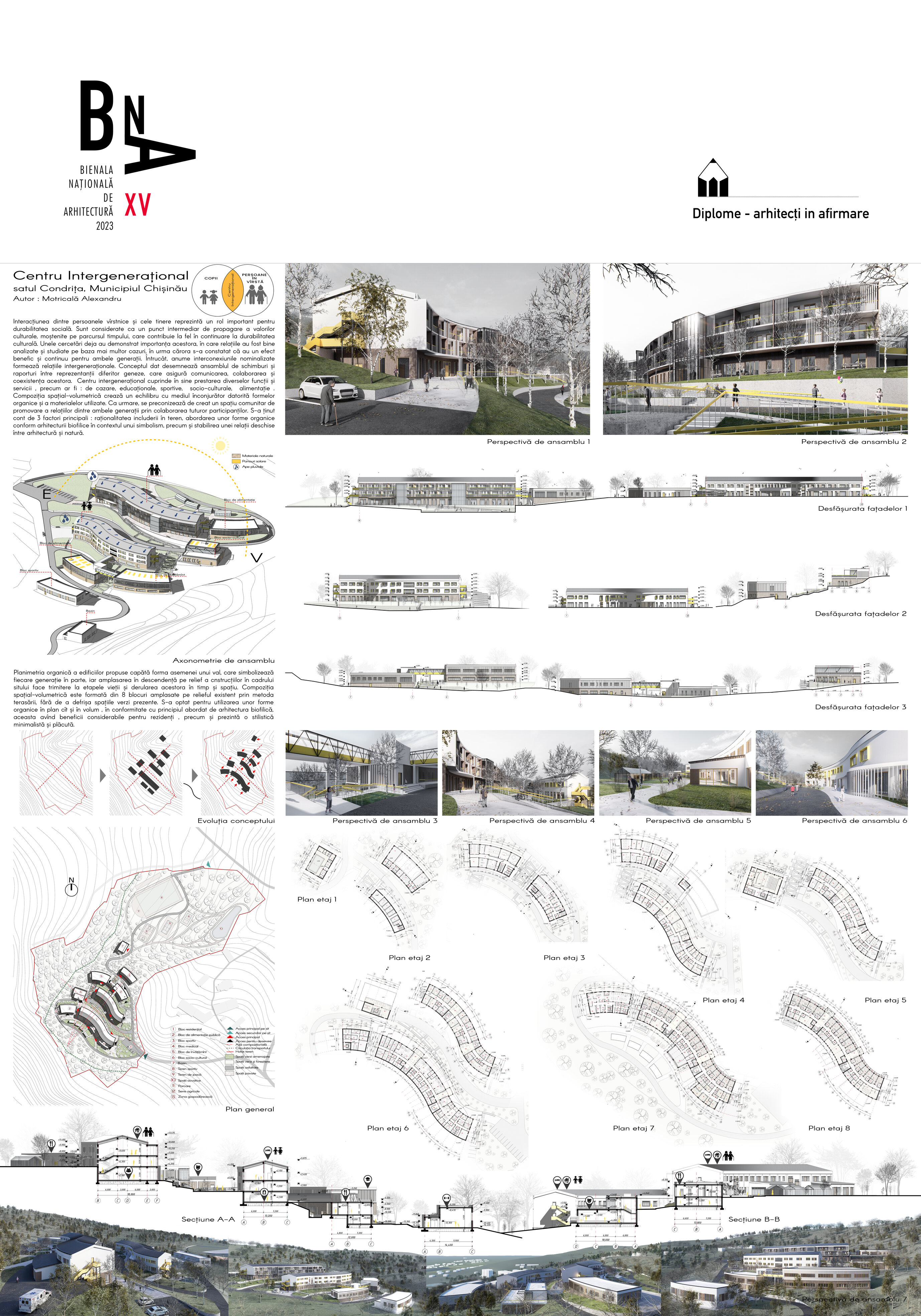 A fost optat pentru crearea unui centru multifuncțional, care va oferi o gamă diversificată de servicii și activități, incluzând servicii de cazare, alimentație, instruire, activități artistice și sportive, sprijin social și moral. Acest proiect vine cu soluții pentru abordarea problemei menționate anterior. Se promovează conceptul de intergeneraționalitate, incluziune socială și egalitate pentru persoanele aflate în situații vulnerabile. Scopul lucrării este să demonstreze importanța interacțiunii intergeneraționale și implementarea acestui concept în cadrul societății.