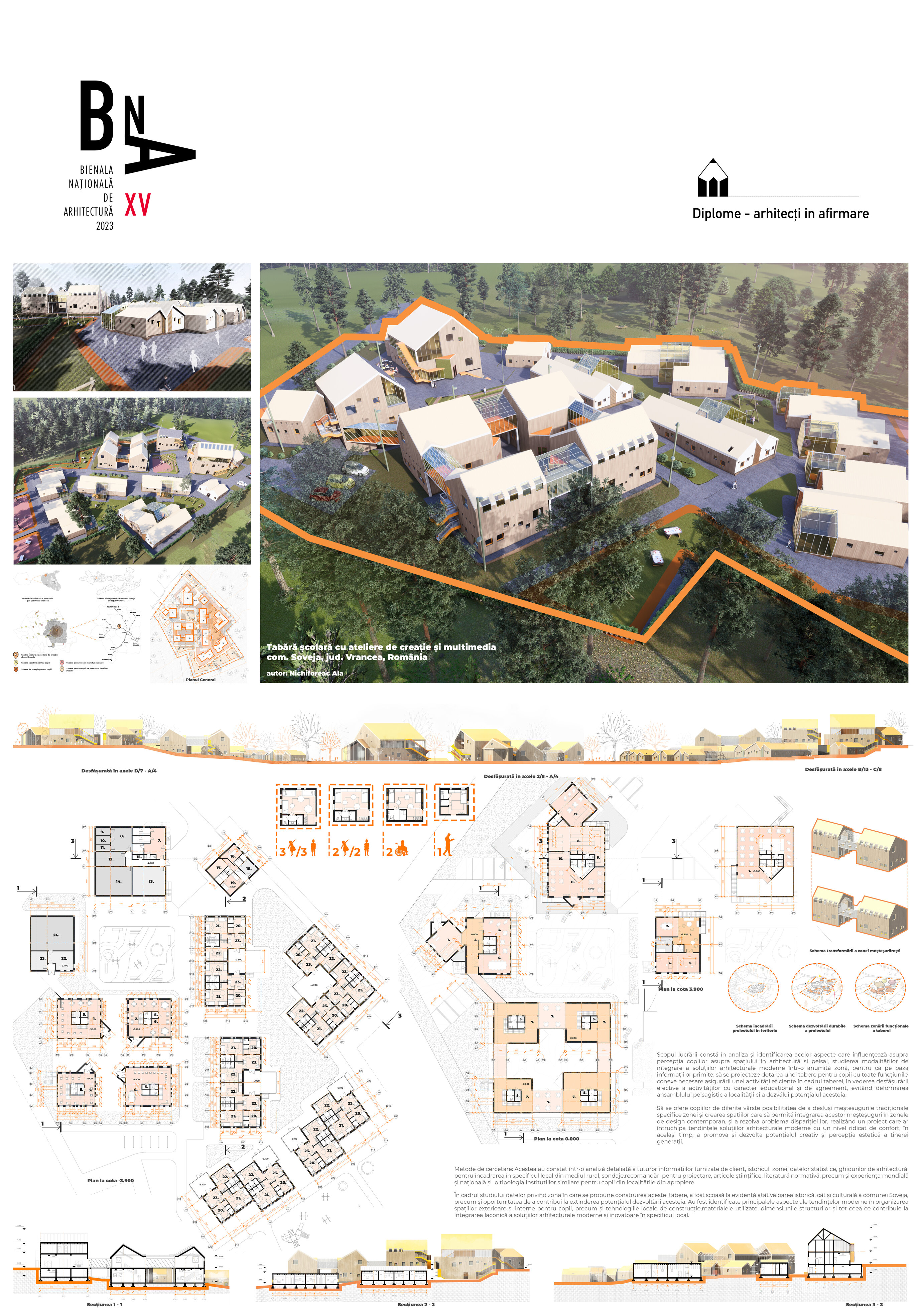 Scopul acestui proiect constă în analizarea și identificarea factorilor care influențează percepția copiilor asupra spațiului în arhitectură și peisaj, precum și în studierea modalităților de integrare a soluțiilor arhitecturale moderne într-o anumită zonă. În urma colectării informațiilor relevante, am dezvoltat un concept pentru o tabără destinată copiilor, care să ofere toate facilitățile necesare pentru desfășurarea eficientă a activităților educaționale și recreative, menținând totodată integritatea peisajului natural local și punându-i în valoare potențialul.
