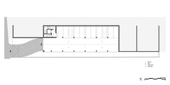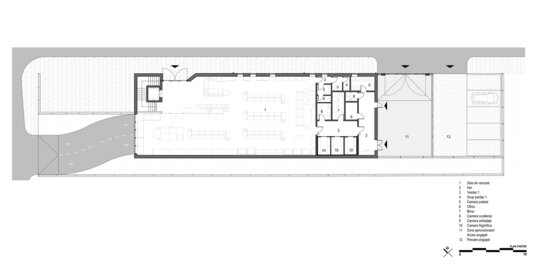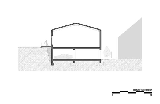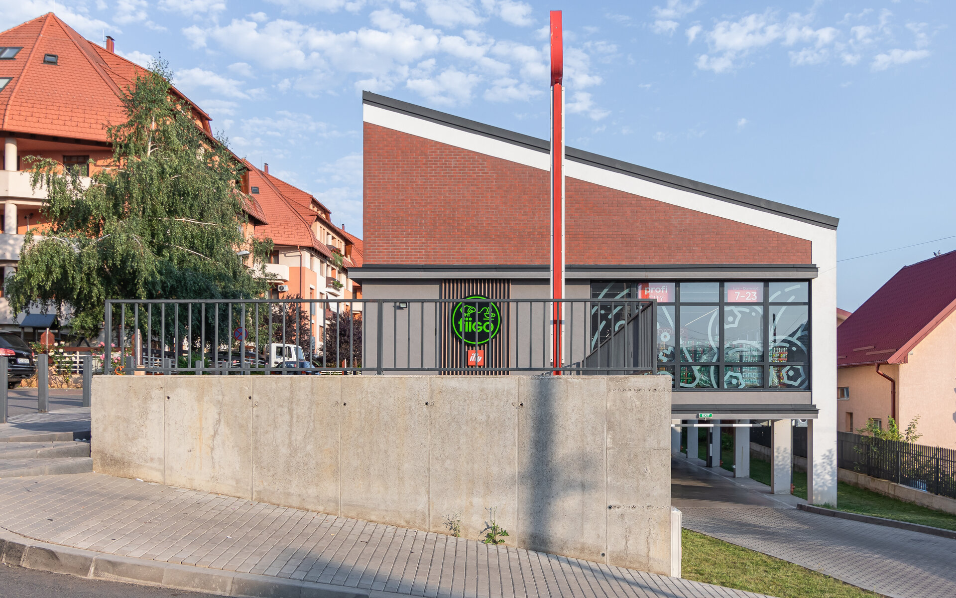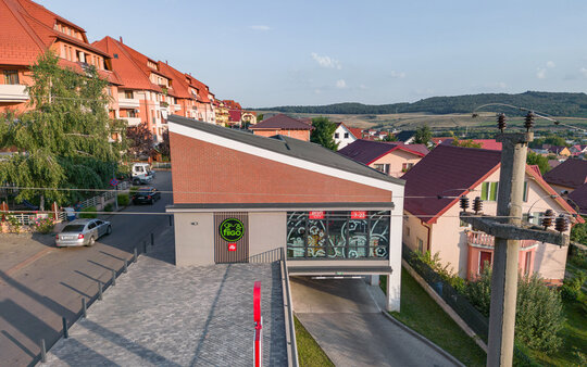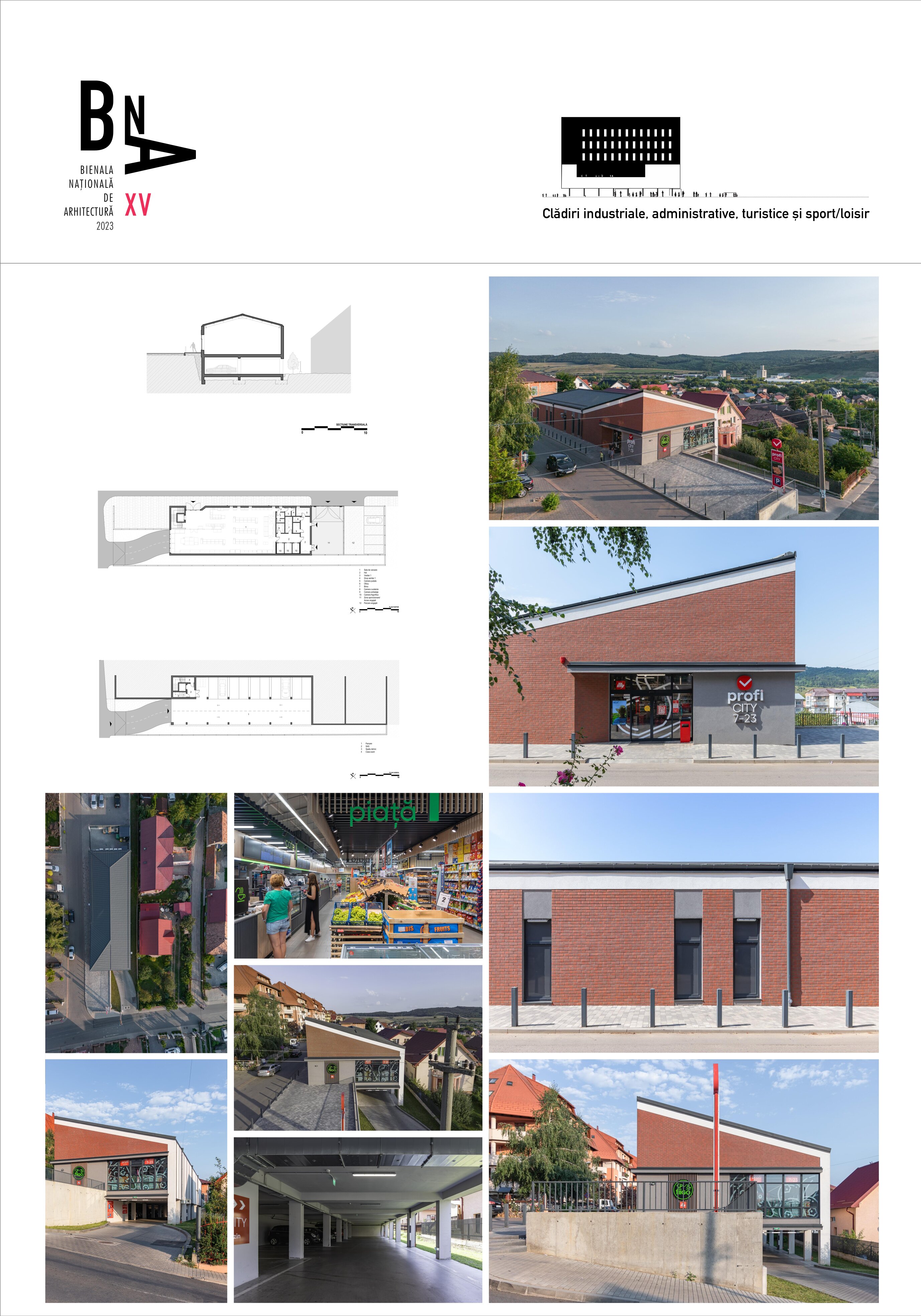Din aceste considerente a rezultat o clădire cu o planimetrie simplă, un dreptunghi îngust și lung, care la nivelul inferior adăpostește locurile de parcare, iar la nivelul parterului spațiul comercial cu anexele aferente funcțiunii. Cele două niveluri sunt conectate printr-o scară interioară și un lift. Din punct de vedere volumetric s-a optat pentru un acoperiș șarpantă în trei ape, care se transformă într-o apă spre colț, marcând astfel atât intersecția între cele două străzi, cât și intrarea în clădire.