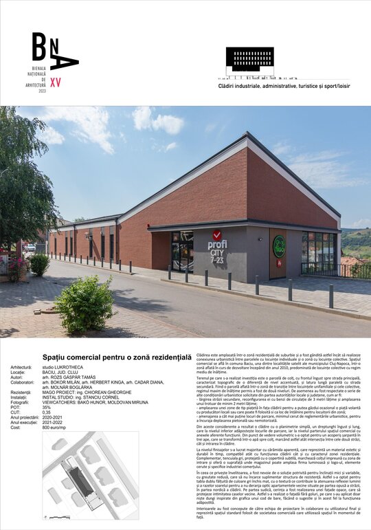 Această parte a localității s-a dezvoltat fără un masterplan conceput și gândit în profunzime, motiv pentru care funcțiunile complementare locuirii au lipsit aproape în totalitate. Prin extinderile recente au fost inserate dotări, fără care nu poate funcționa o zonă rezidențială: creșă, grădiniță, zone verzi publice, spații comerciale și alte servicii. Acesta este motivul pentru care parcela aflată la intersecția a două străzi a fost gândită pentru o clădire cu funcțiune de comerț.