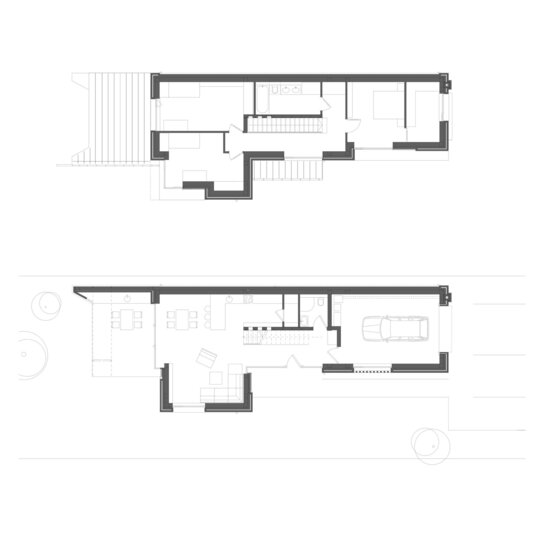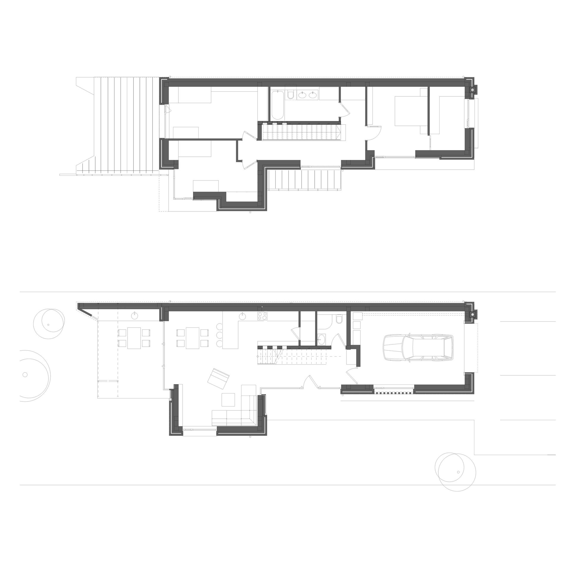 In organizarea spațiului interior: zona de zi se extinde cu terasa acoperită către grădina din spate, prin intermediul unei deschideri generoase. S-a realizat o continuitate vizuală in toate spatiile de zi situate la nivel parter. La nivel etaj, zona casei de scară este gândit să fie un spațiu deosebit de luminos ce leagă trei dormitoare.