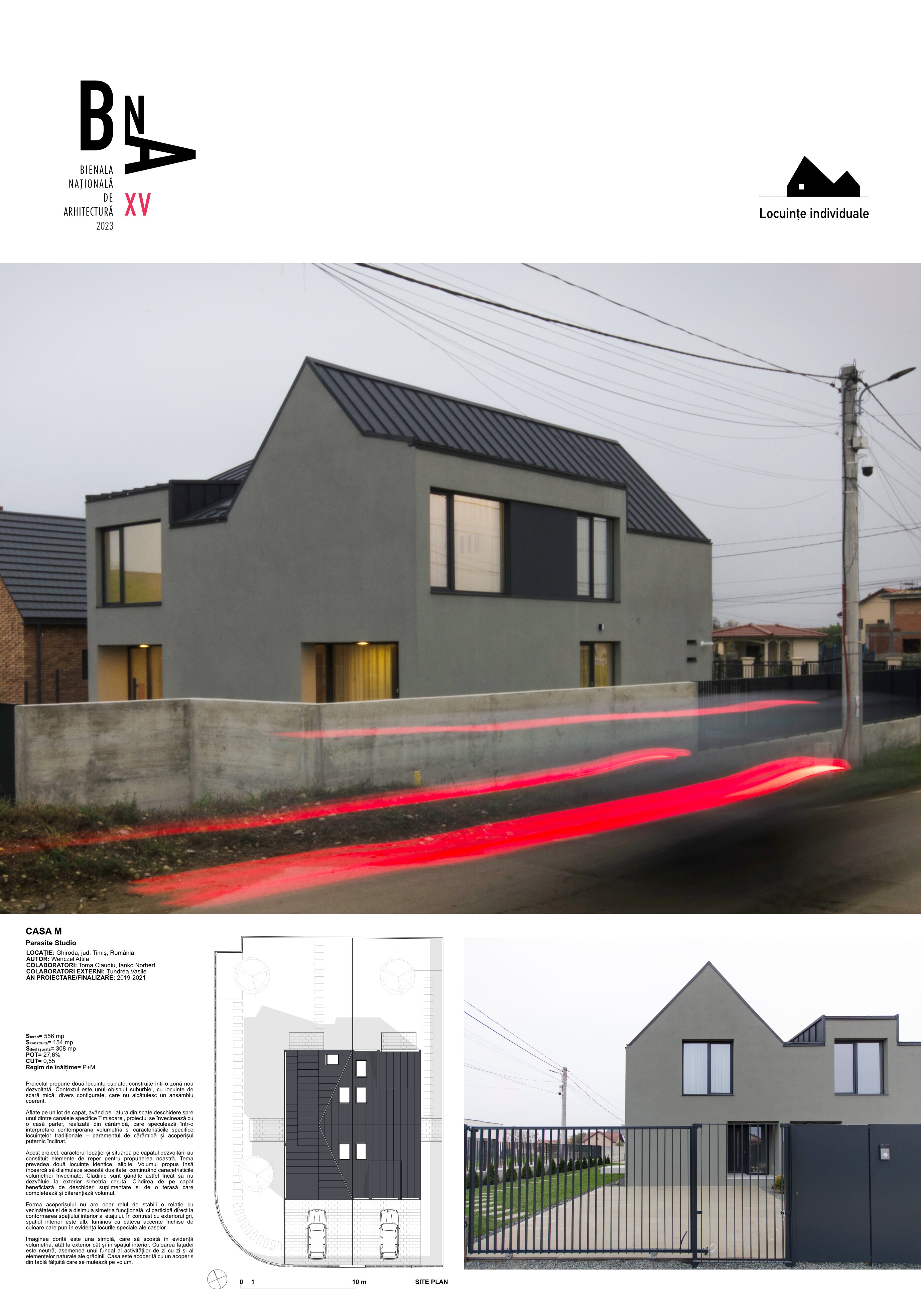 Acest proiect este rezultatul unui proces de dezvoltare care se bazează pe o serie de idei și concepte generate de caracterul unic al locației și amplasării sale în cadrul dezvoltării urbane. Cerințele temei au presupus dezvoltarea a două unitati locative identice și continue. Cu toate acestea, am considerat că trebuie să abordăm această simetrie într-un mod subtil, păstrând în același timp coerența limbajului arhitectural general al ansamblului.