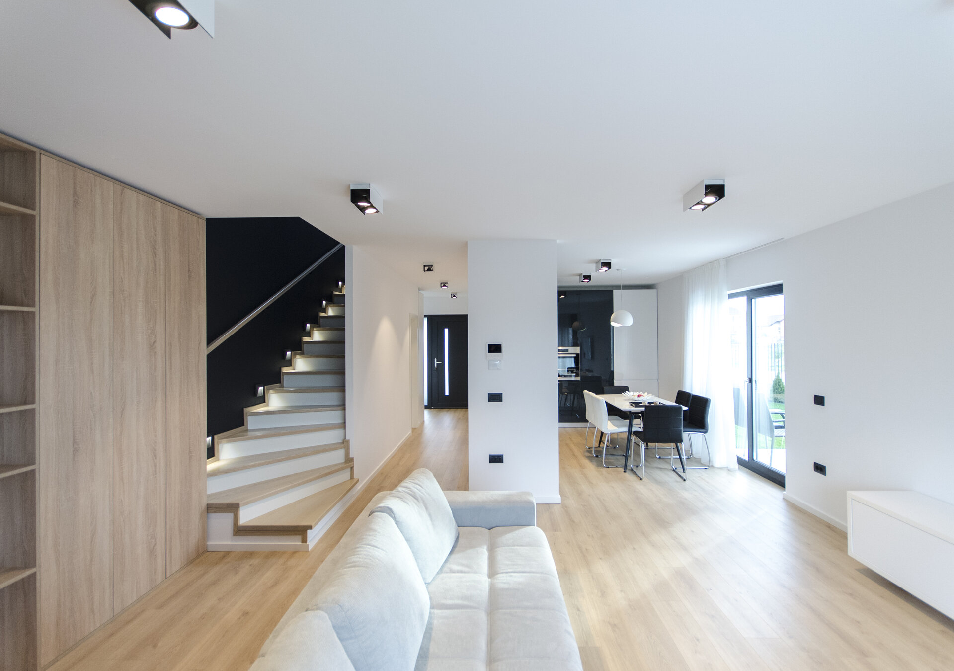 Interiorul locuințelor este un spatiu de lumină și calitate. Alegerea culorii predominante alb pentru pereți accentuează luminozitatea și creează un fundal versatil pentru mobilier și decor. Accentele subtile de culoare adaugă puncte de interes și subliniază anumite zone sau elemente de design. Spațiile sunt concepute pentru a maximiza senzația de deschidere și conectivitate, integrând în mod fluid zona de zi cu cea de noapte și facilitând interacțiunea între membrii familiei.