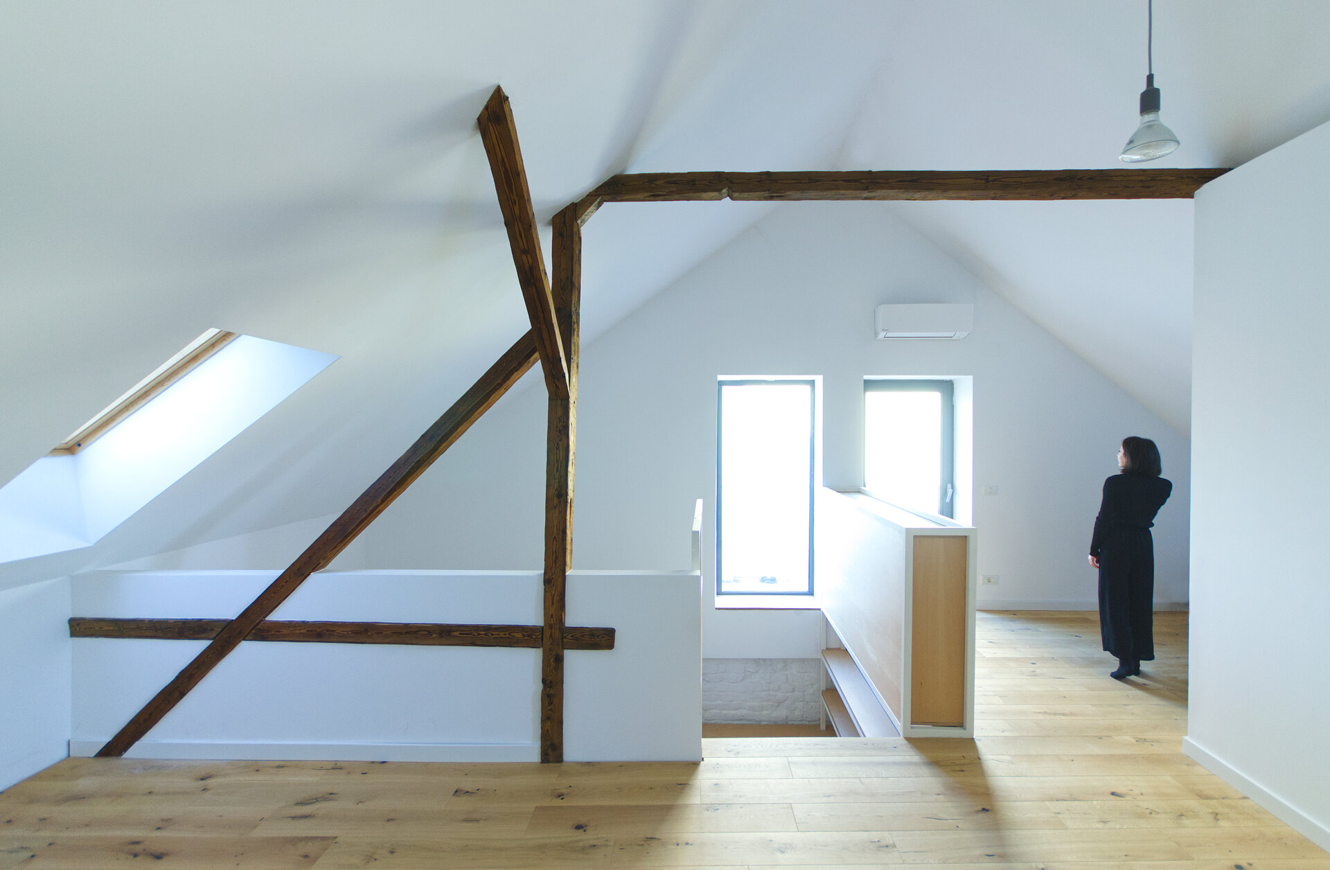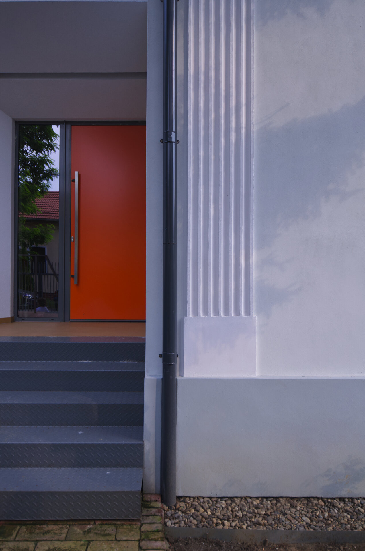 Pentru că în cursul timpului clădirea a fost supusă unor modificări semnificative atât din punct de vedere structural, cât și funcțional, propunerea noastră urmărește să readucă clădirea la o formă mai pură, păstrând totodată elementele autentice ale fațadei principale. Această fațadă, care este acum elementul distinctiv al casei, a fost singurul aspect care și-a păstrat forma inițială. Pentru a atinge această transformare, prima etapă a proiectului a implicat demolarea parțială a zonelor adăugate în mod incorect, permițând clădirii să-și regăsească aspectul autentic. În plus, șarpanta a fost demolată parțial și apoi reconstruită în conformitate cu forma sa originală, cu două pante, pentru a reintegra clădirea în contextul urban într-un mod mai armonios.