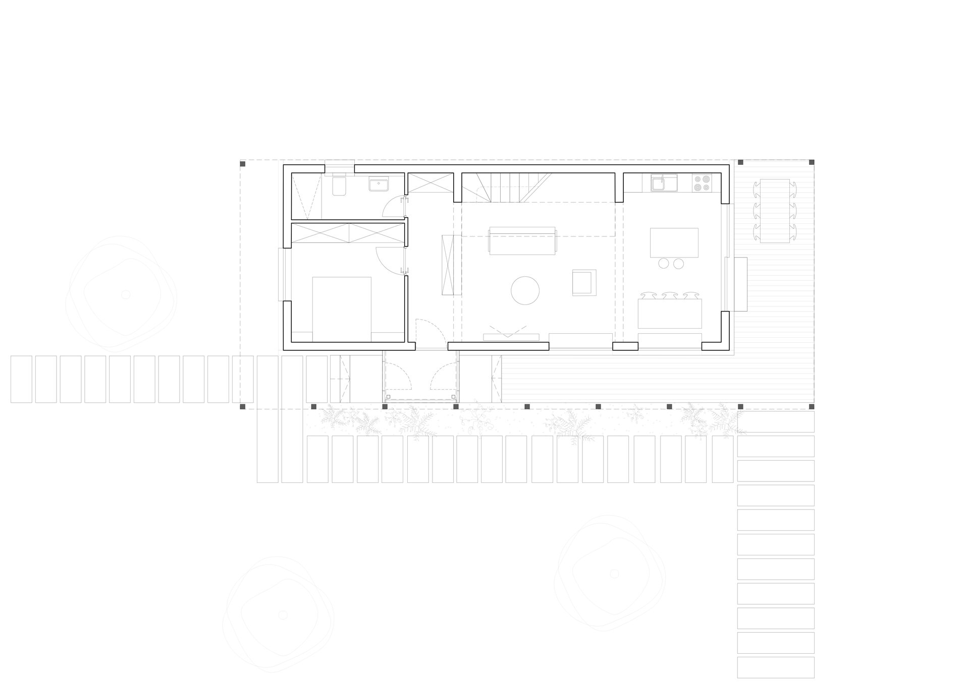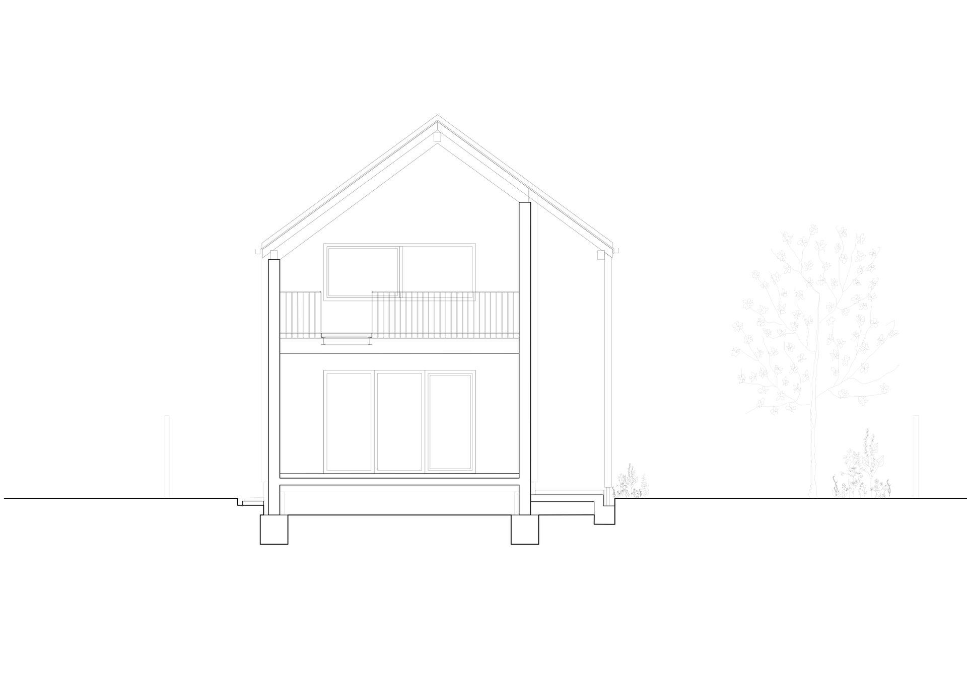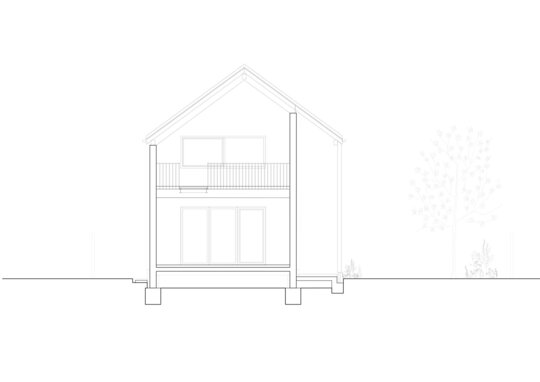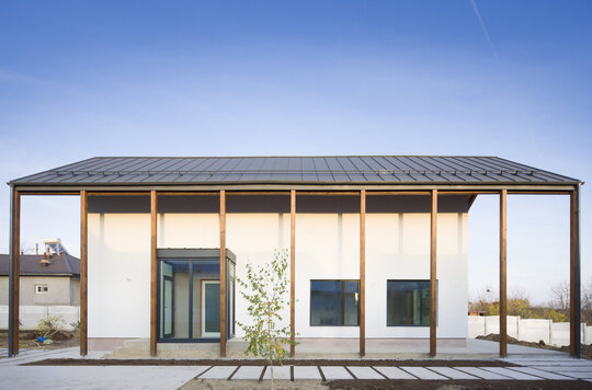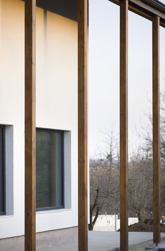 bună intimitate familiei și o prezență mai discretă în raport cu construitul existent. Către grădină, construcția se