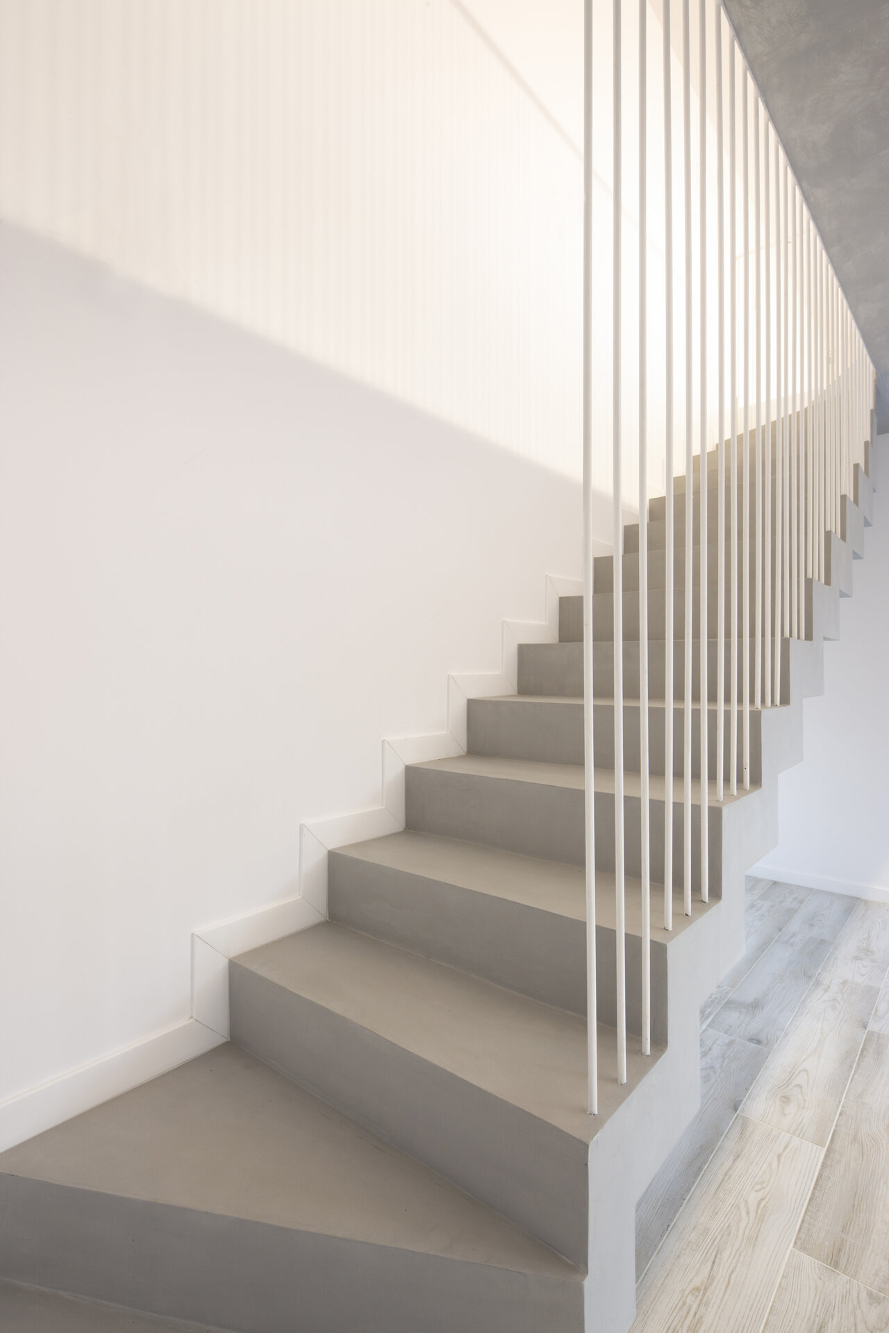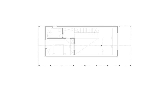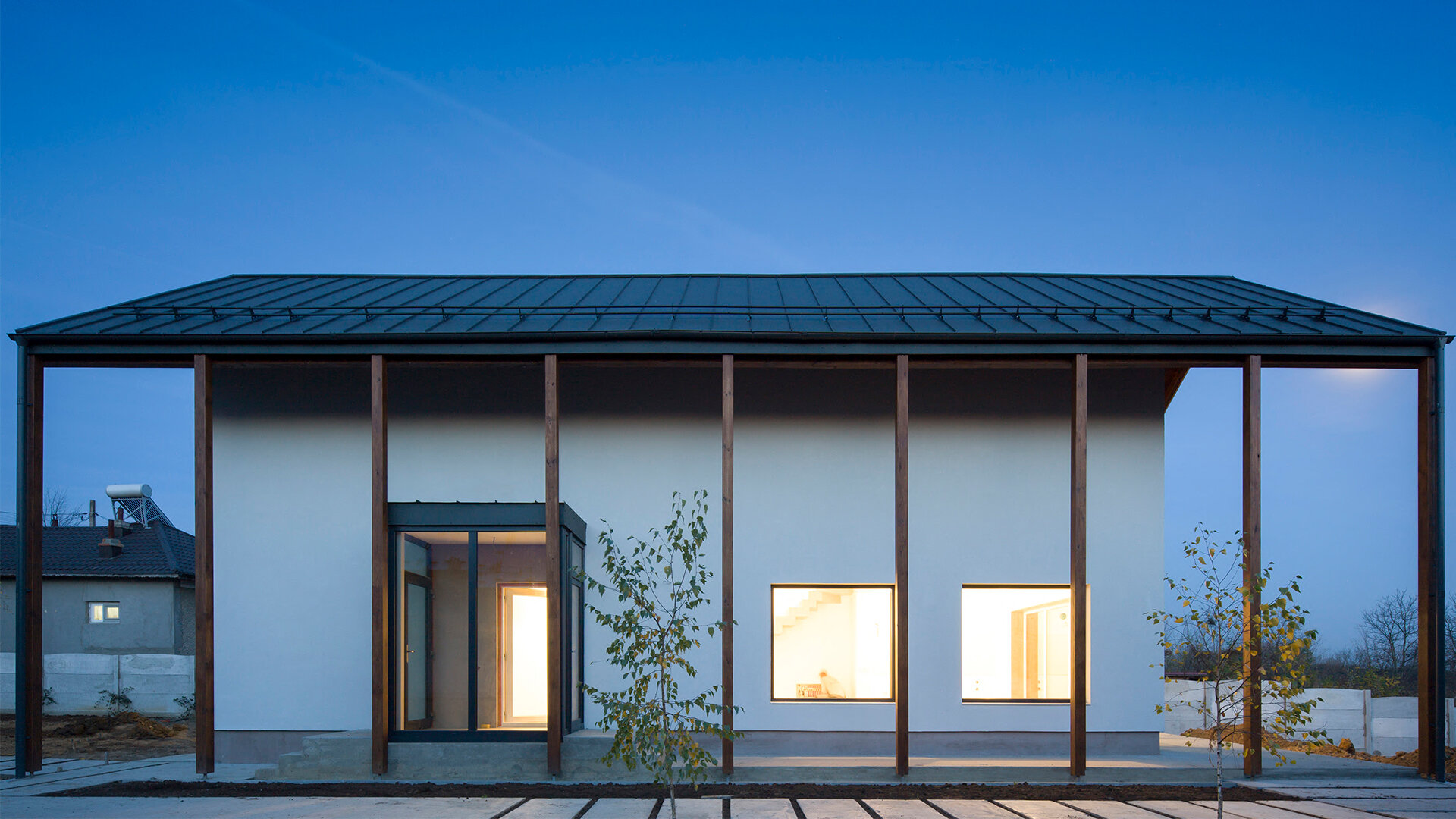 Accesul în casă se face prin porticul înalt și ulterior printr-o cutie de sticlă strecurată între stâlpii verandei și perete. Înălțimea porticului și a terasei longitudinale a casei anunță într-un fel spațiul pe dublă înălțime al zonei de zi, accentuând caracterul de înveliș protector, de „carapace” în jurul locuirii. Spațiile de la etaj sunt legate printro pasarelă metalică, ce face legătura între zona de noapte și cea de lucru/hobby, traseele locuirii fiind astfel vizibile din fiecare colț al casei.