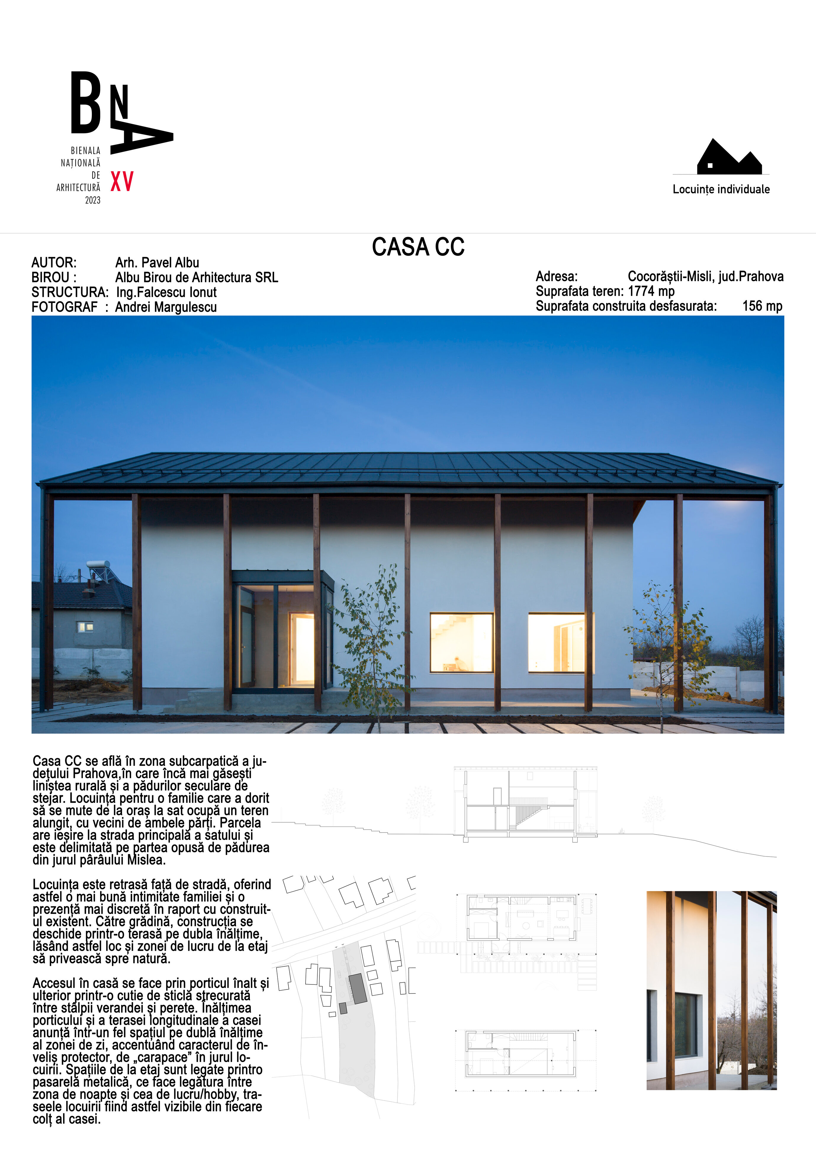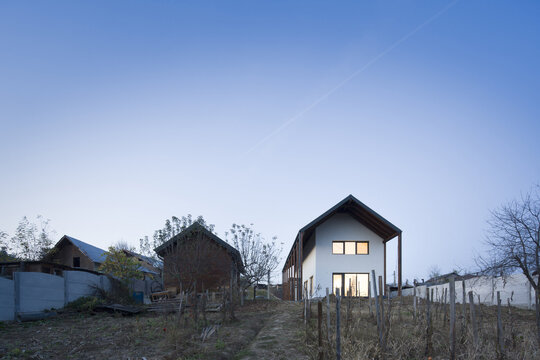 în care încă mai găsești liniștea rurală și a pădurilor seculare de stejar. Locuința pentru o familie care a dorit să se mute de la oraș la sat ocupă un teren alungit, cu vecini de ambele părți. Parcela are ieșire la strada principală a satului și este delimitată pe partea opusă de pădurea din jurul pârâului Mislea.