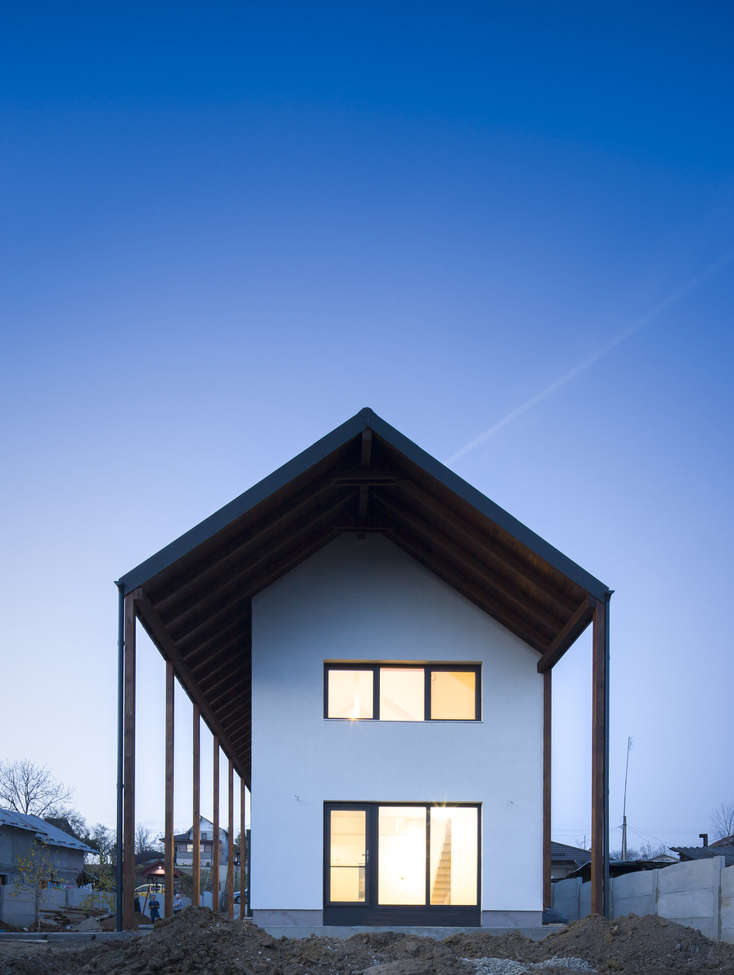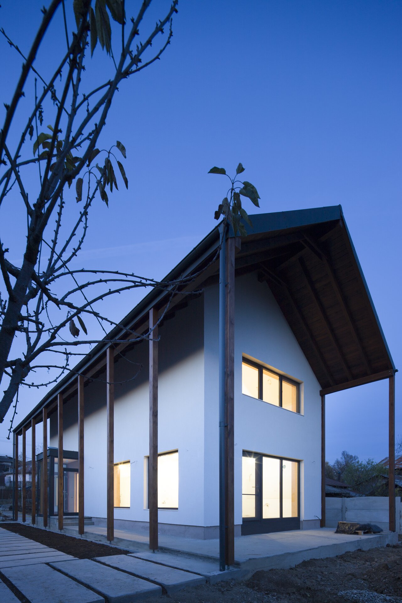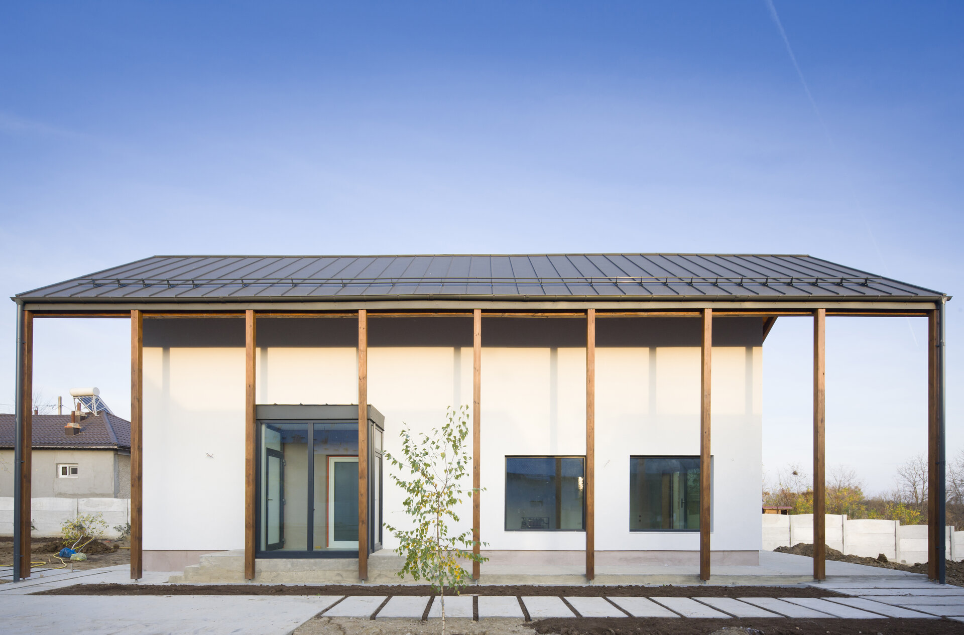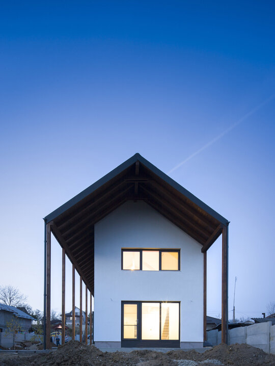 Locuința este retrasă față de stradă, oferind astfel o mai