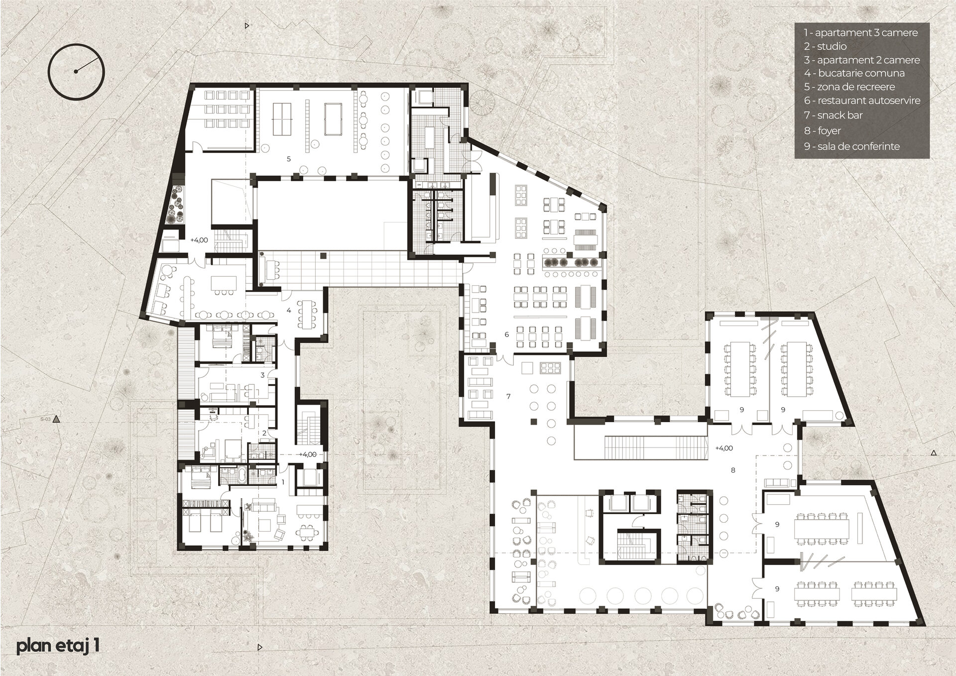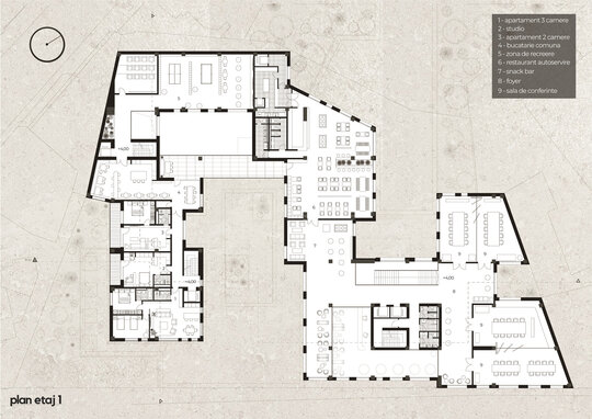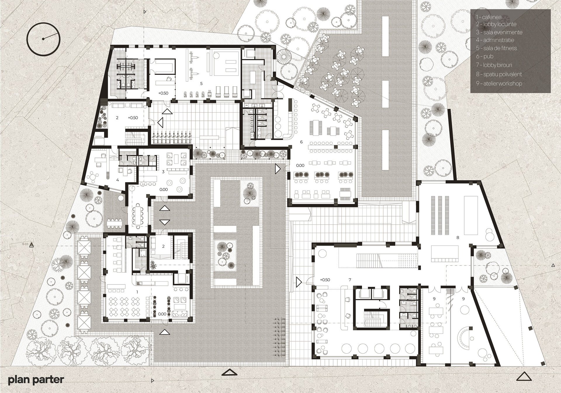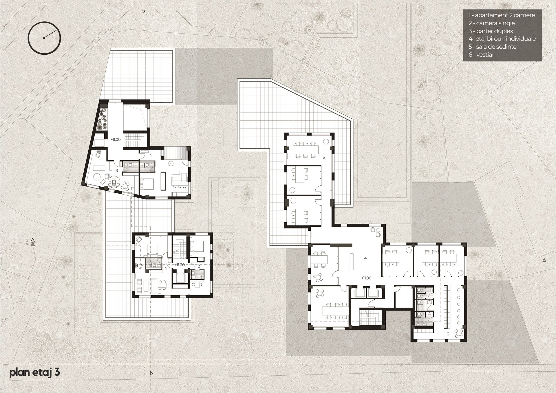 Soluția propusă este o clădire sau un ansamblu de clădiri de tip mixed - use care vor îndeplini toate cerințele specifice acestui tip de nomad și anume: componenta ce cuprinde locuirea (co - living), componenta tipică muncii (co - working) și cea care va îndeplini aspecte legate de loisir. Acest proiect va fi benefic atât pentru utilizatori, cât și pentru comunitatea locală, scopul principal fiind acela de a o integra prin plurivalența spaților comune. În urma studiului realizat asupra comportamentului nomazilor digitali am ajuns la concluzia că proiectul ar trebui amplasat într-o zonă semi-centrală, cu acces facil la principalele utilități ale orașului, tocmai pentru a-i face pe utilizatori să se integreze în cadrul comunității locale, scopul final fiind acela de a atrage tineri ce vor contribui la dezvoltarea orașului, din punct de vedere economic, social, dar și cultural.