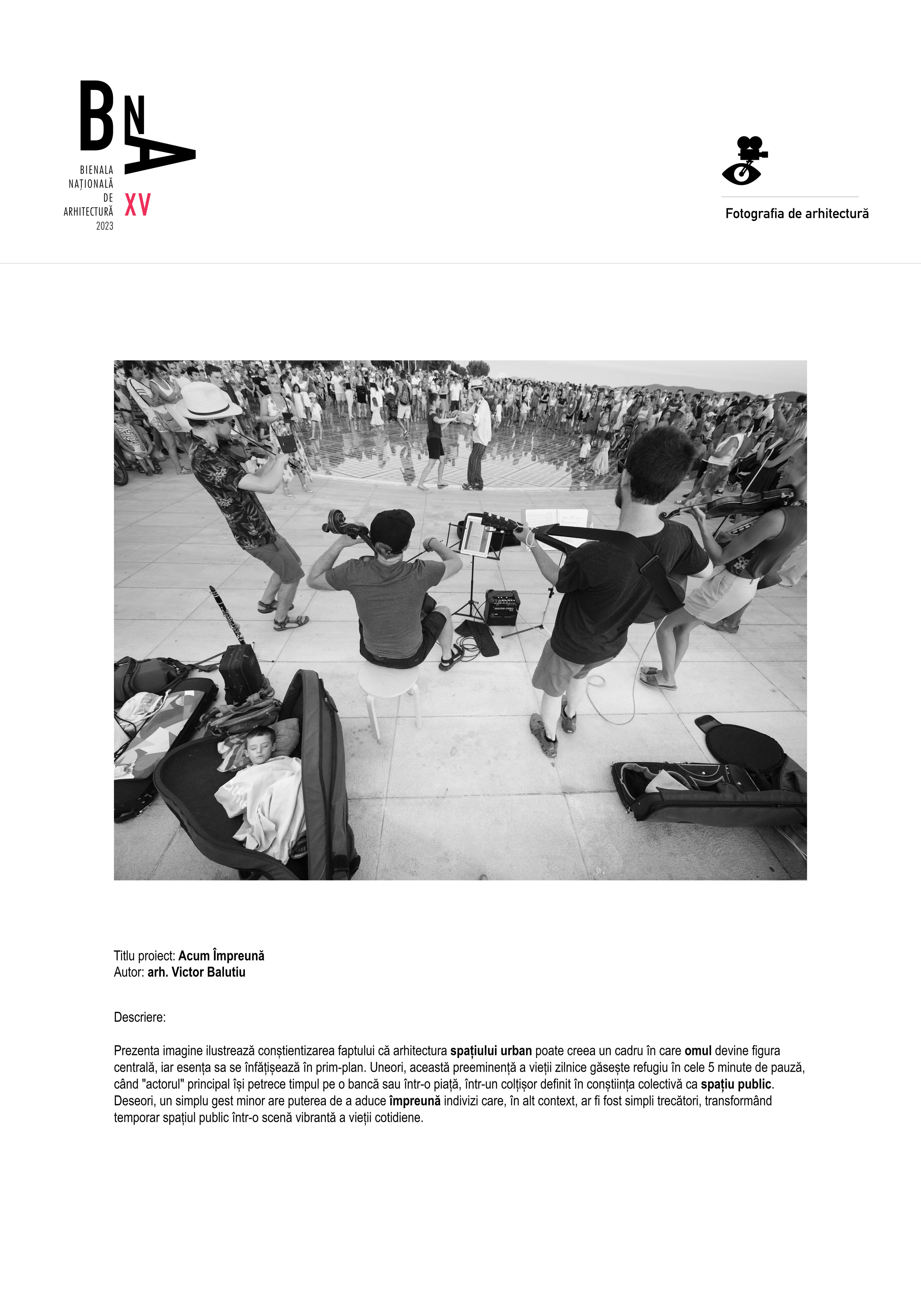 Prezenta imagine ilustrează conștientizarea faptului că arhitectura spațiului urban poate creea un cadru în care omul devine figura centrală, iar esența sa se înfățișează în prim-plan. Uneori, această preeminență a vieții zilnice găsește refugiu în cele 5 minute de pauză, când "actorul" principal își petrece timpul pe o bancă sau într-o piață, într-un colțișor definit în conștiința colectivă ca spațiu public. Deseori, un simplu gest minor are puterea de a aduce împreună indivizi care, în alt context, ar fi fost simpli trecători, transformând temporar spațiul public într-o scenă vibrantă a vieții cotidiene.