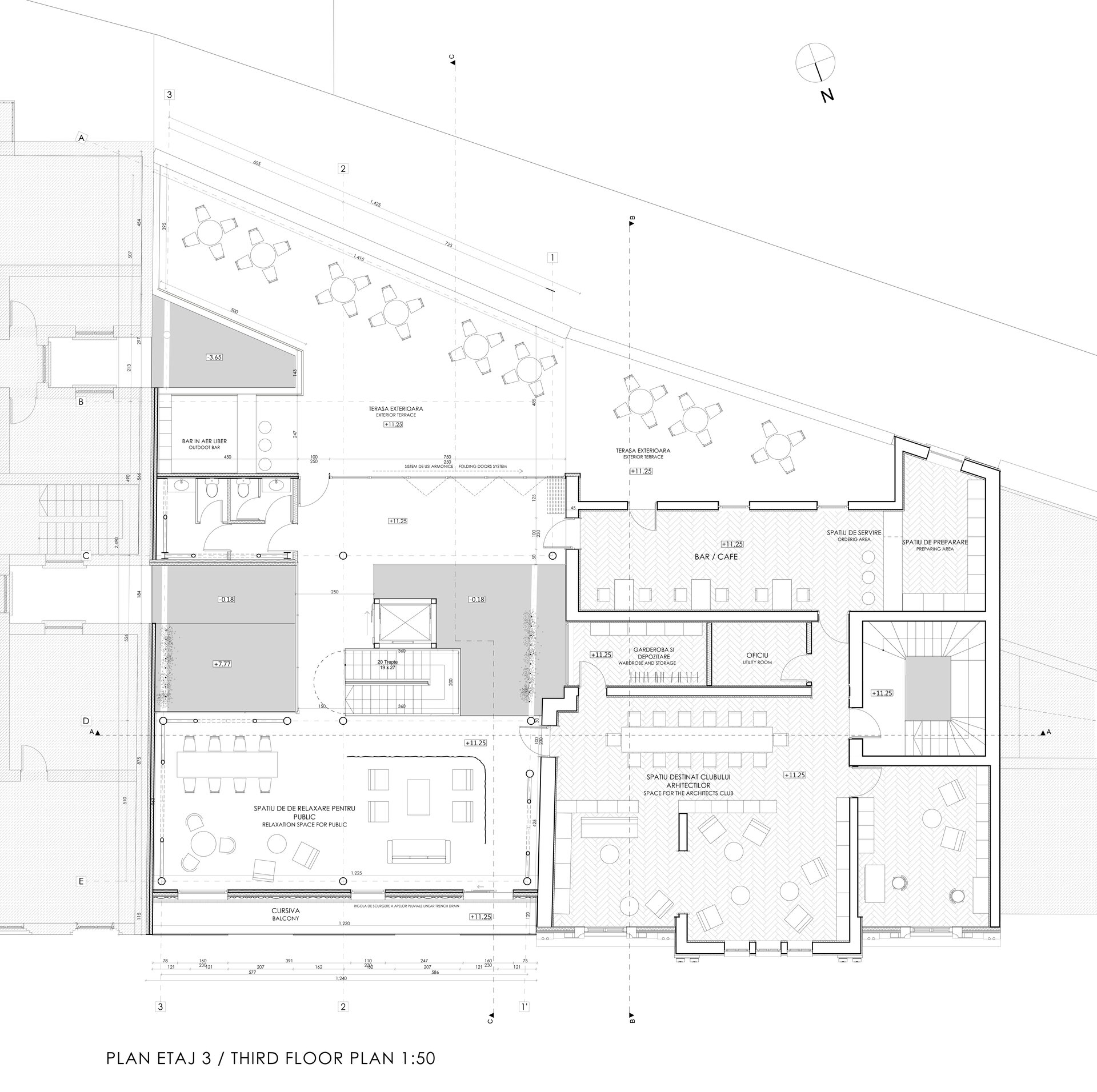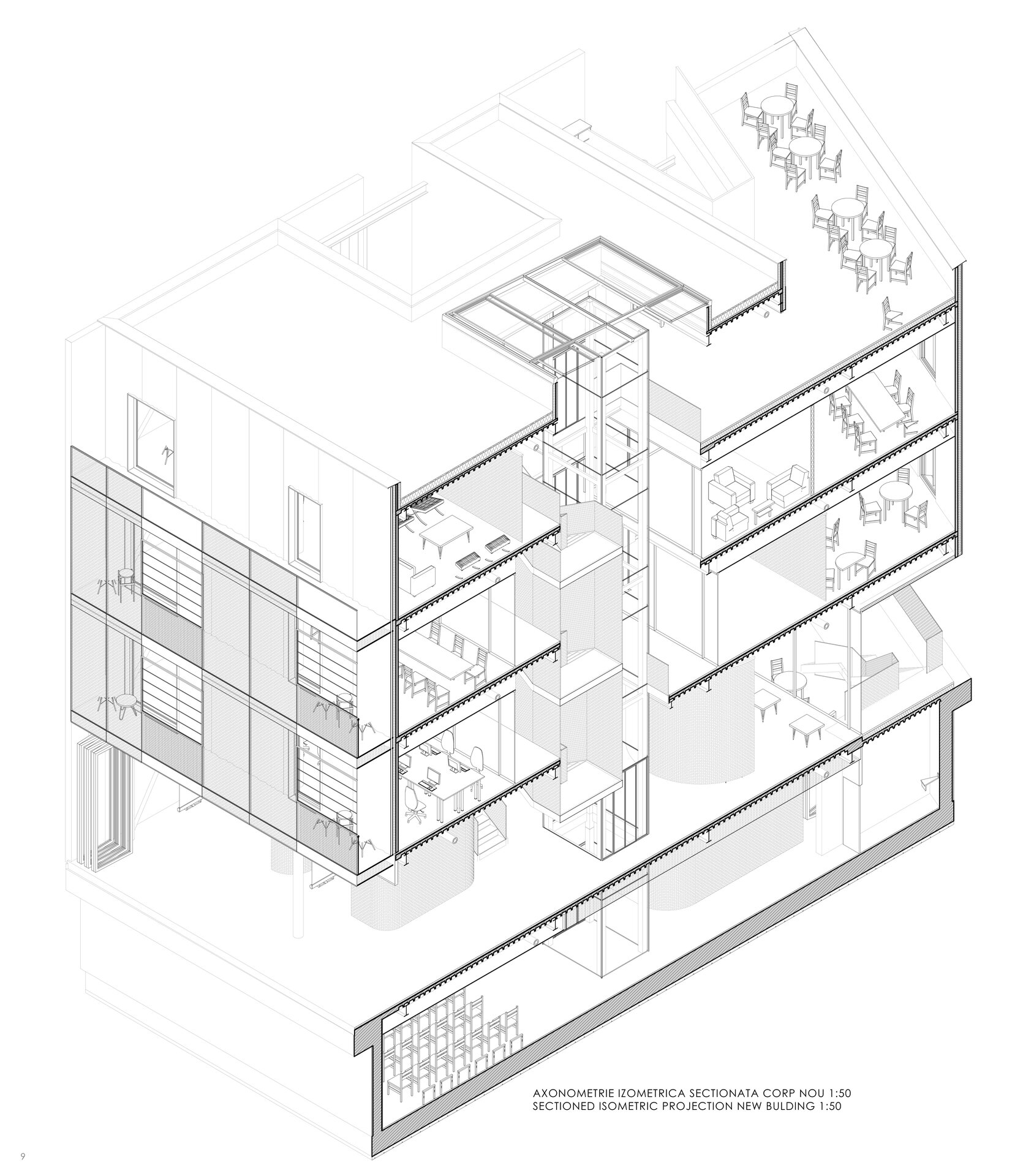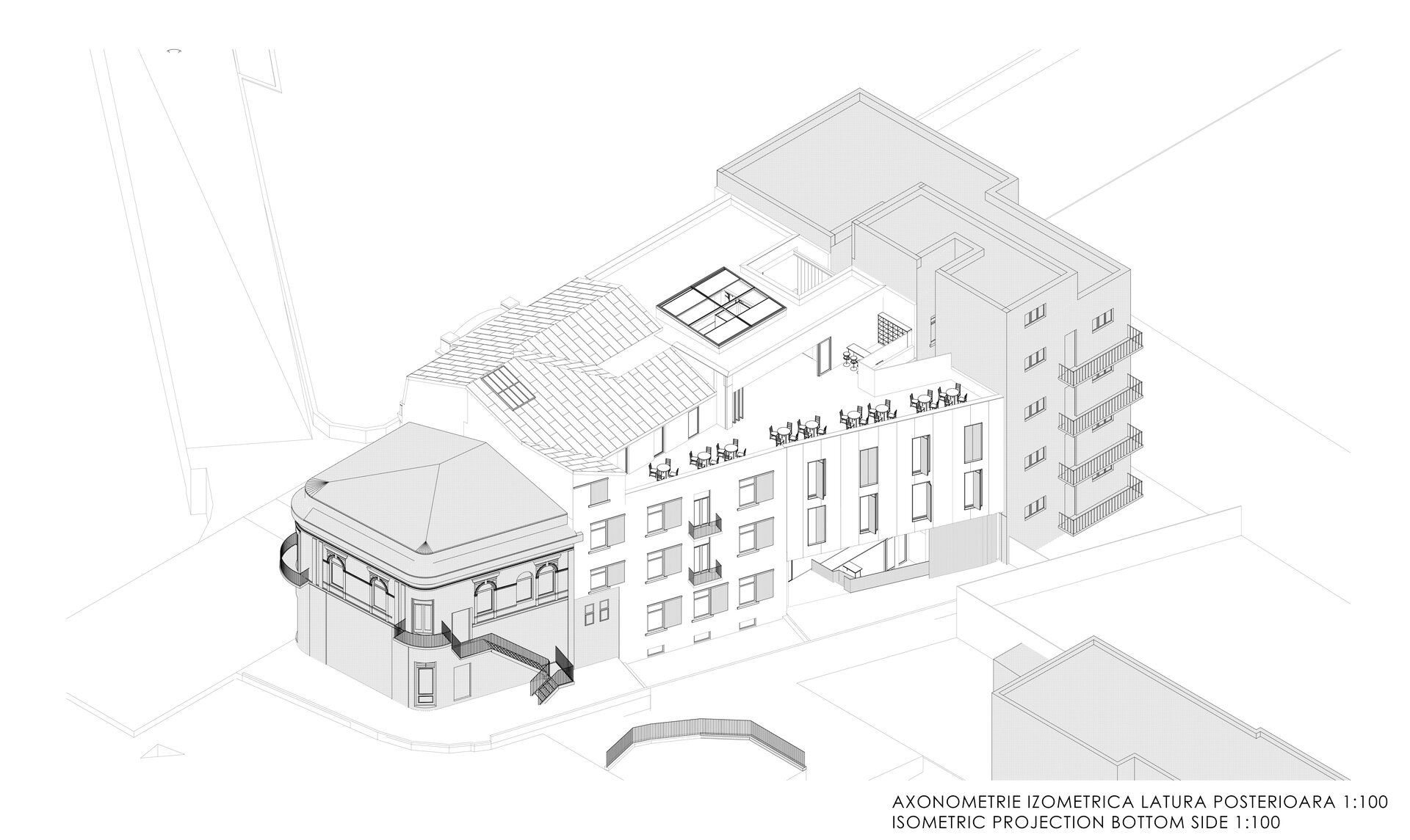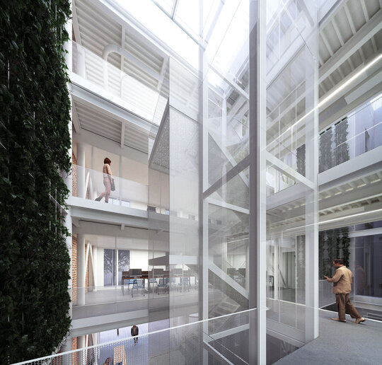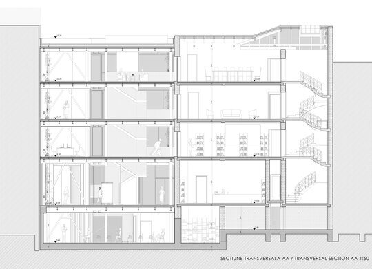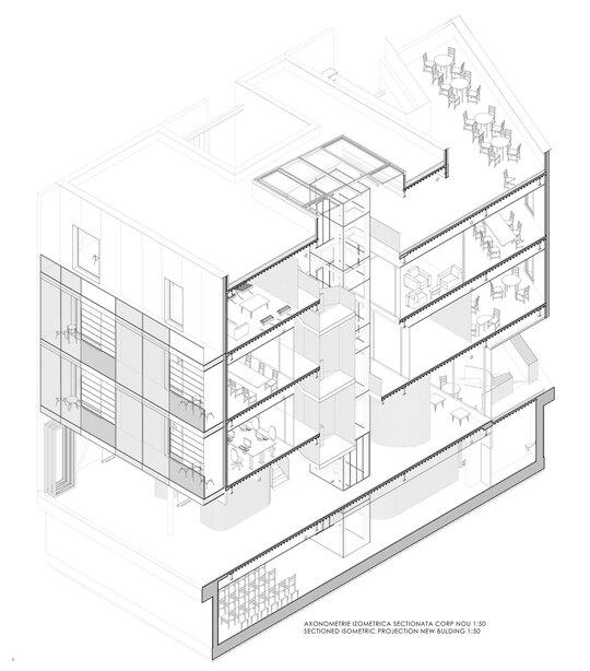 Conceptul proiectului poate fi definit prin termenul "lightness" care sugerează utilizarea unei structuri ușoare, folosind (acolo unde este posibil) doar metalul și sticla la nivelul intervenției noi și utilizarea curților și a golurilor pentru a crea spații semi-deschise ce mențin o relație puternică cu exteriorul și permit cât mai multă lumină să pătrundă în spațiile interioare.