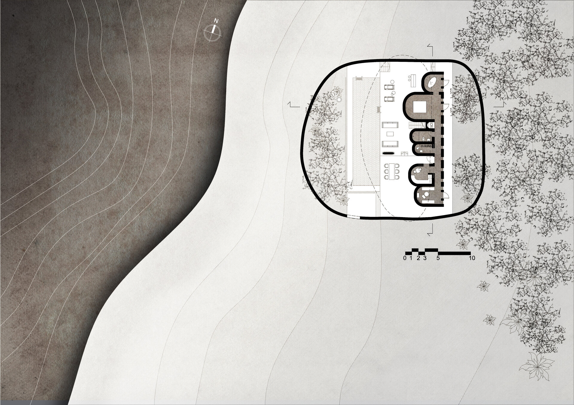 Provocarea lansată de concursul Buildner – „Home of Shadows” a fost aceea de a imagina o locuință care să poată funcționa atât în timpul zilei, cât și în timpul nopții, folosindu-se doar de lumina naturală. Situl este unul imaginar.