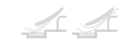 Structura din interiorul „aripii” este o rețea de grinzi metalice zăbrelite. Coaja exterioară este realizată din beton turnat pe cofraj de nisip. Este obținută astfel o suprafață neregulată ce găzduiește un întreg univers de micro-umbre. Geometria acestuia permite pătrunderea în interior a unei cantități generoase de lumină, atât în timpul zilei cât și în timpul nopții.