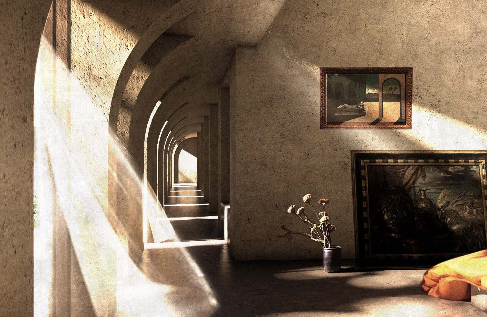 Am abordat tema proiectului ca fiind un studiu al luminii sau, mai precis, al dialogului dintre lumina și suprafața curbă.Intenția principală a fost aceea de a obține spații fluide, suprafețe învăluite și îmbrățișate de lumina naturală.