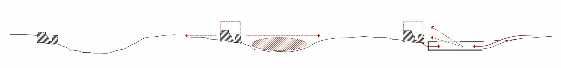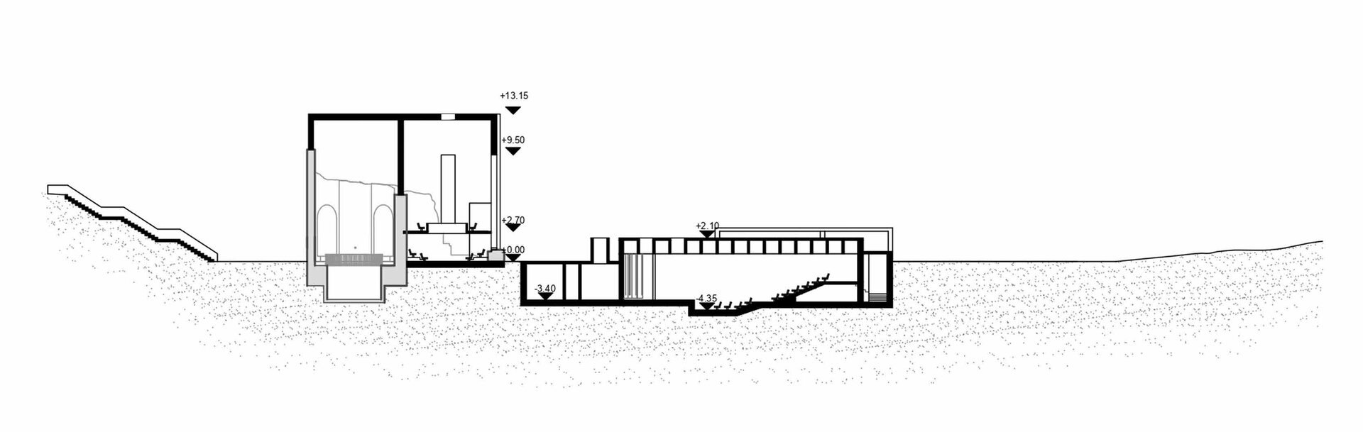 Ceea ce este nou privește cu smerenie, respect și admirație către trecut. Dorința de a rămâne discret, sau chiar invizibl, a condus către o inserție ce a completat denivelarea existentă în teren.
