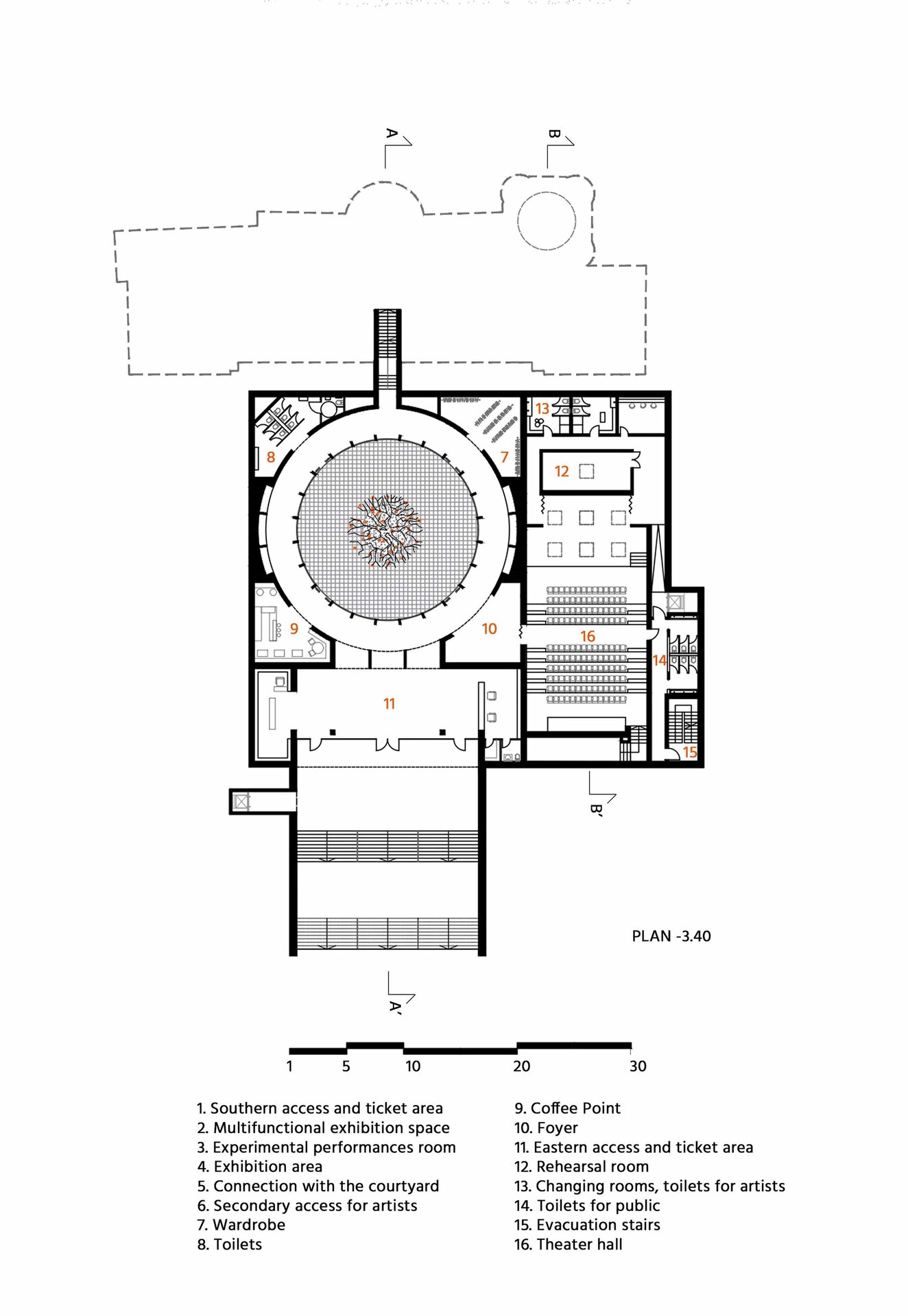 Proiectul este alcătuit din 3 elemente principale: consolidarea și reconstruirea siluetei ruinei, curtea circulară îngropată și teatrul subteran.