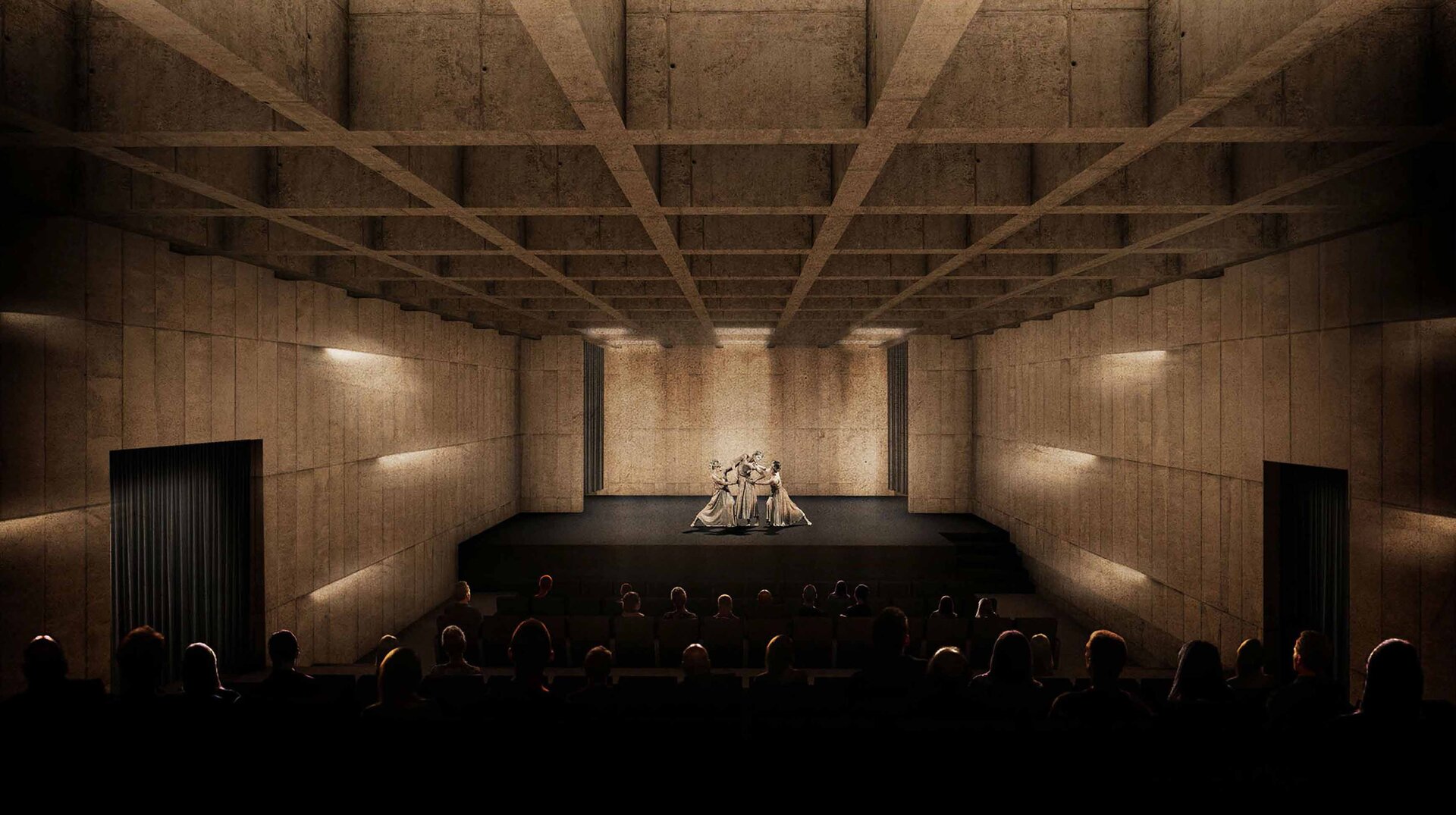 În interiorul Nymphaeumului întâlnim un spațiu multifunctional pentru expoziții și un spațiu pentru spectacole experimentale sau audiții. Acest sector al ansamblului funcționează, de asemenea, ca un filtru pe care îl traversăm înainte de accesul în sala principală de spectacole. Fie că îl traversăm sau îl privim în perspectivă ascendentă din curtea scufundată, suntem captivați sub influența acestuia.