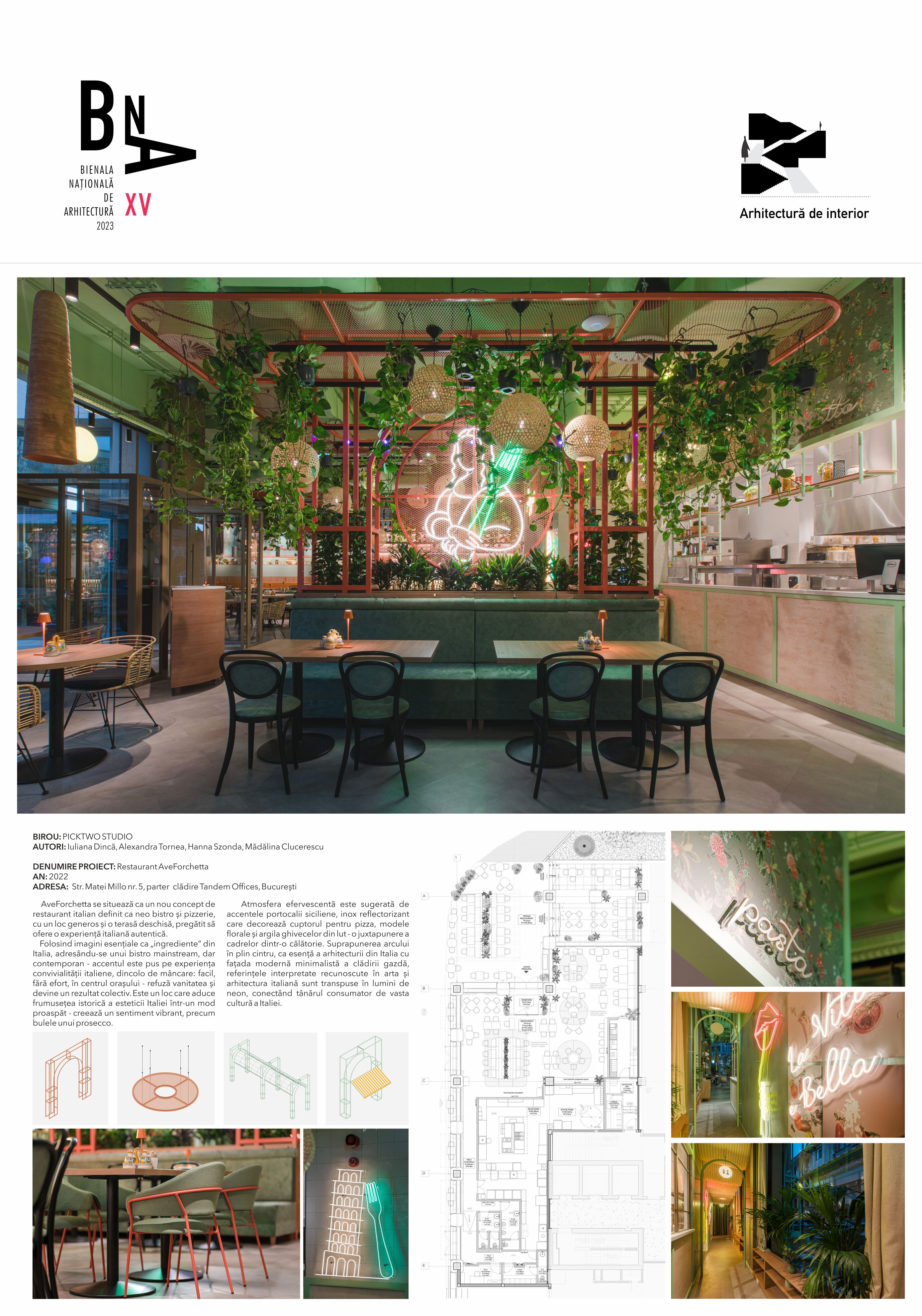 AveForchetta se situează ca un nou concept de restaurant italian definit ca neo bistro și pizzerie, cu un loc generos și o terasă deschisă, pregătit să ofere o experiență italiană autentică. Folosind imagini esențiale ca „ingrediente” din Italia, adresându-se unui bistro mainstream, dar contemporan - accentul este pus pe experiența