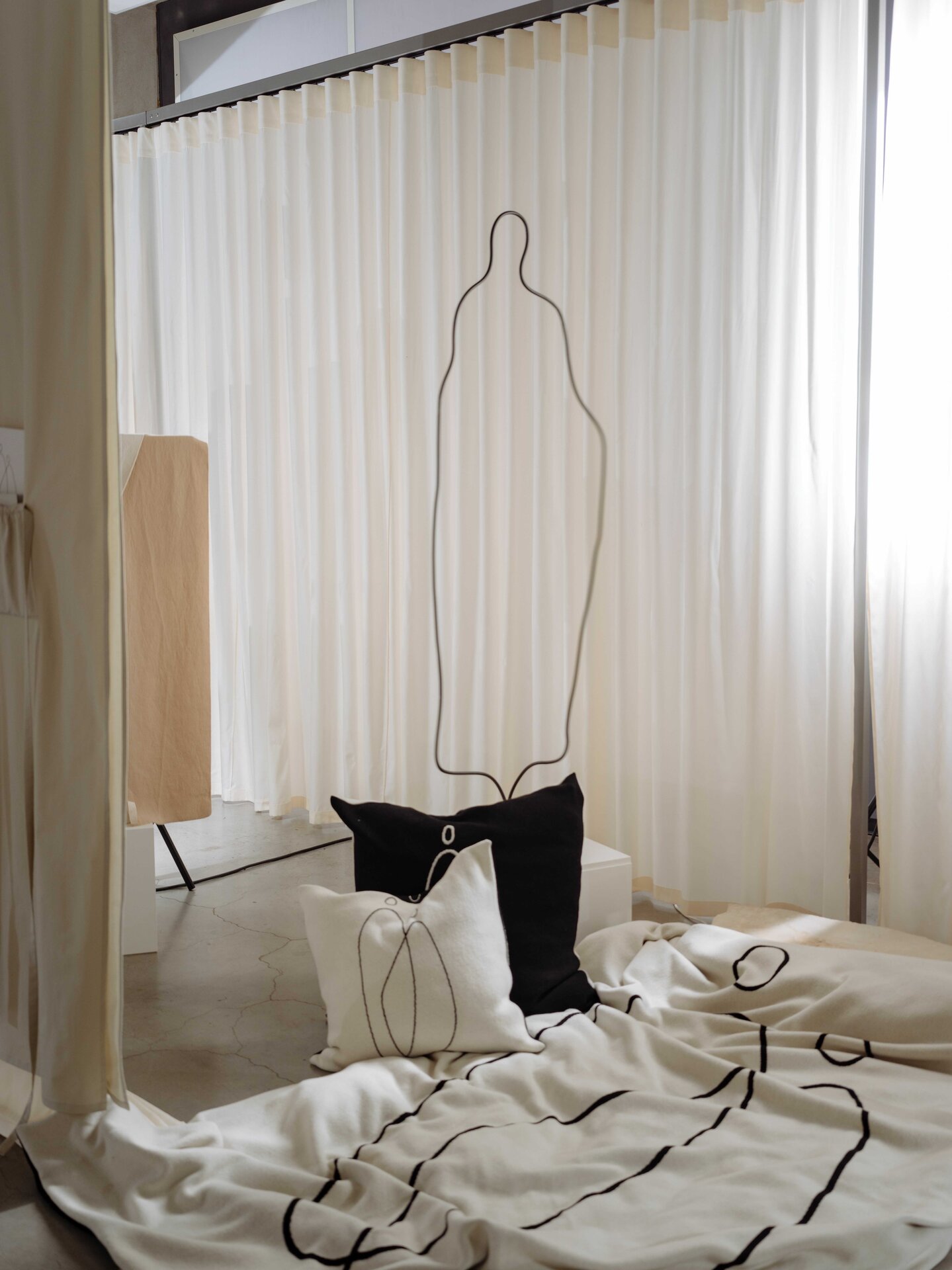 vizitatorii se întâlnesc. Între pereții structurii, „camere” separate de perdele semitransparente descriu