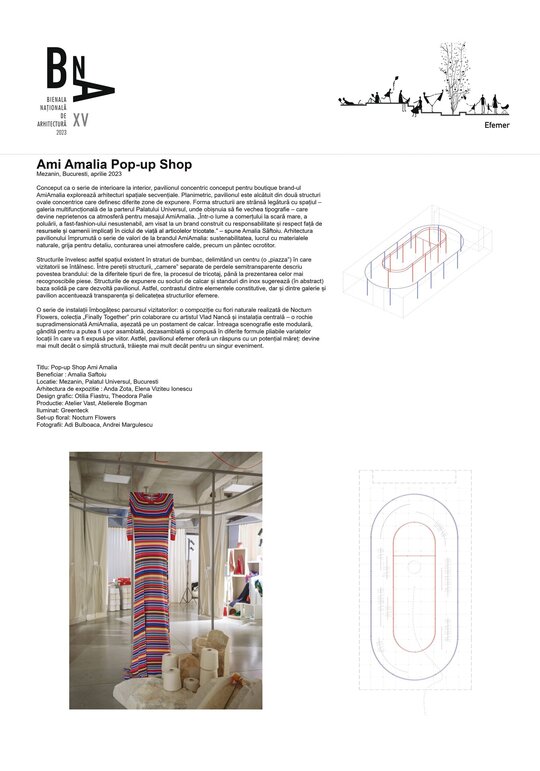 pavilionului împrumută o serie de valori de la brandul AmiAmalia: sustenabilitatea, lucrul cu materialele