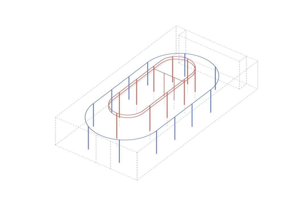 AmiAmalia explorează arhitecturi spațiale secvențiale. Planimetric, pavilionul este alcătuit din două structuri