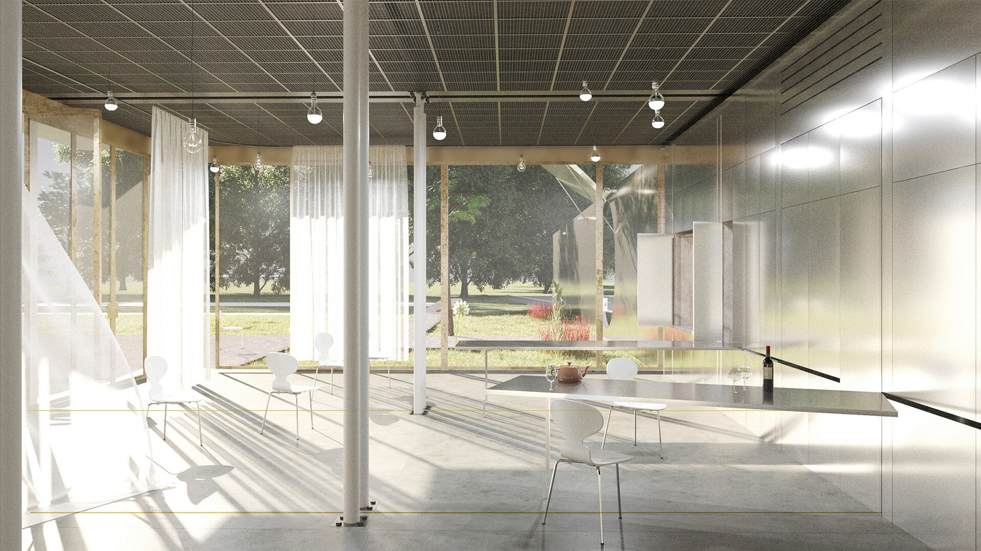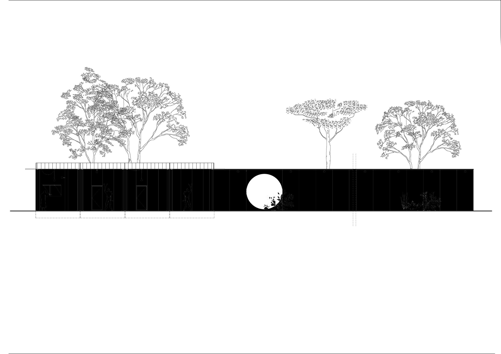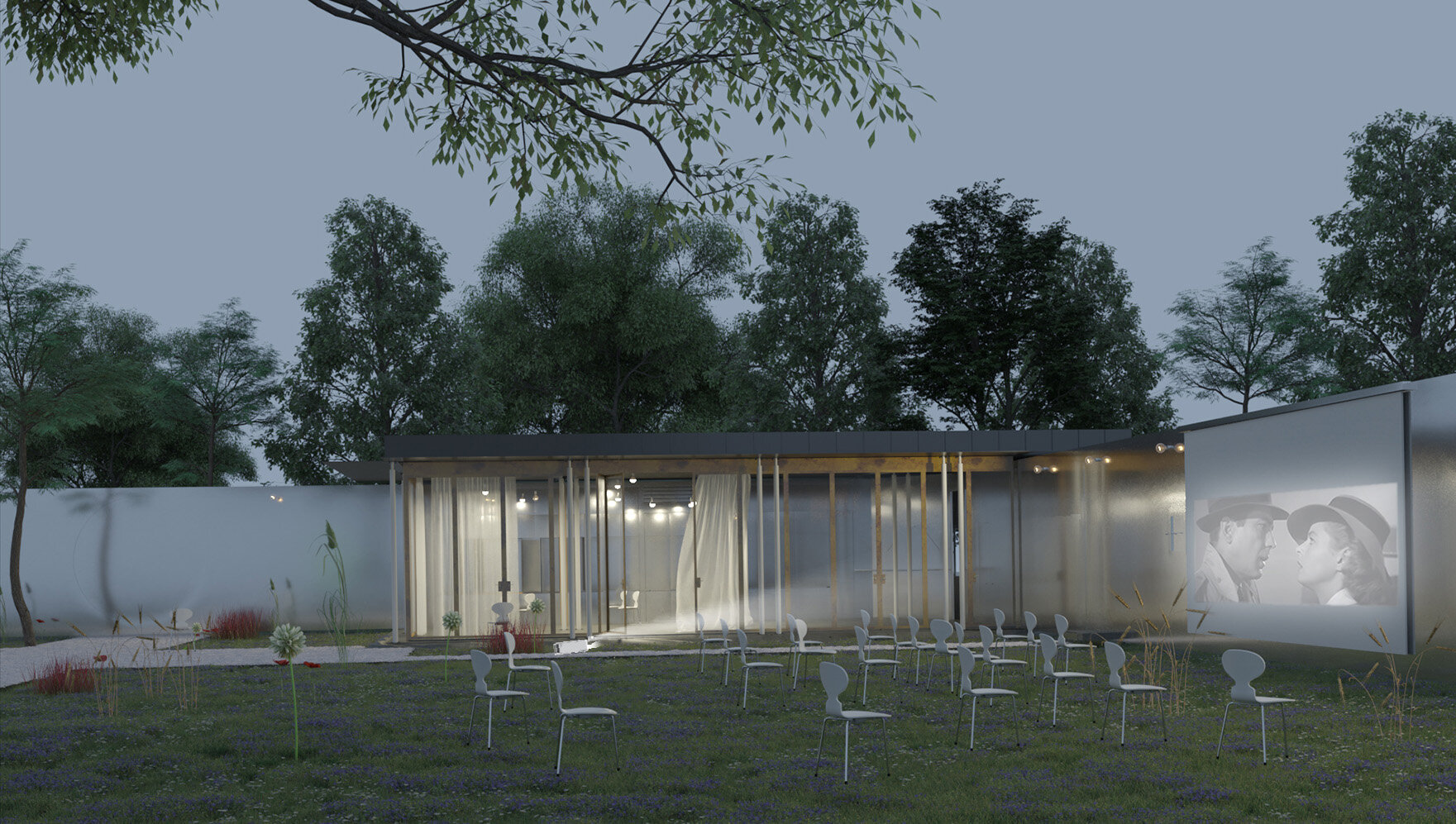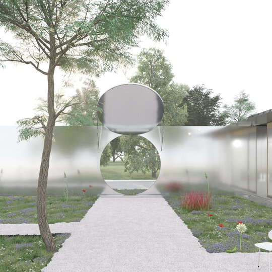 Am optat ca acest perete aflat la granița dintre public și privat, care oglindește imaginea privitorului și totodată aduce în discuție problematica hotarului difuz, să definească limita ambiguă, ce separă și adună laolaltă în egală măsură. Utilizând “hotarul” ca instrument de lucru, grădina rezultată poate oferi prilejul serilor de film, sau al oricărei forme de reprezentație. O recuperare a agorei, prin marcarea carteziană și judicioasă a limitelor sale.