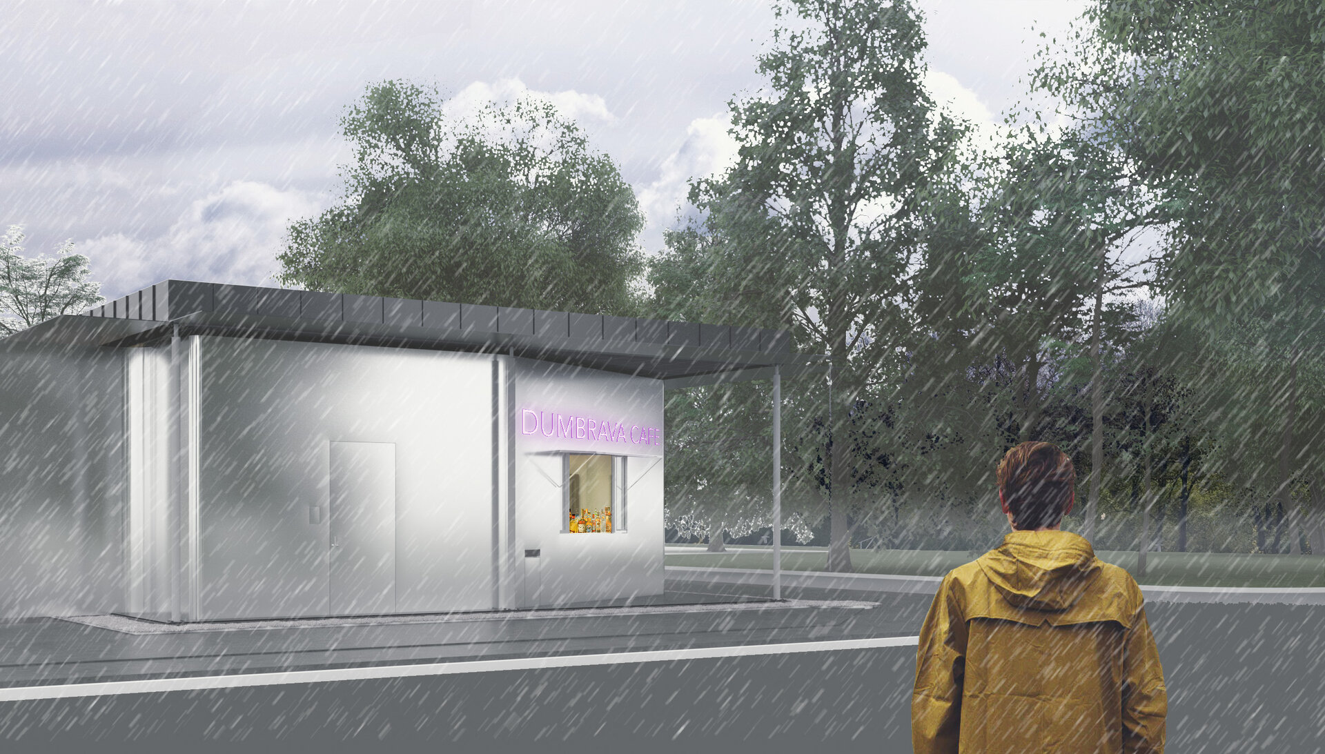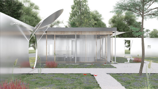 În imaginea noastră, tema propusă prin concurs aduce în discuție realizarea locului ferit, protejat, dar aflat în deschis. De bună seamă, o veritabila “vatră” a comunității aflate în plină formare în Dumbrava Vlasiei. Ca atare, prima pornire, a fost aceea de a lucra, mai degrabă, cu limita. Limită care poate deveni, în fapt, prilejul de a aduna și de a ocroti.