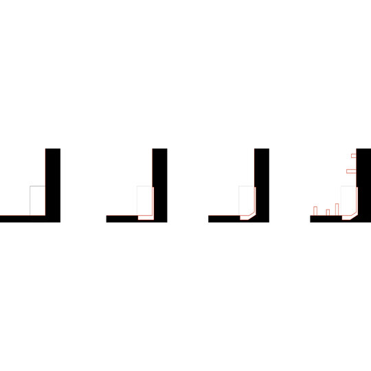 Pornind de la natura imanentă a casei de colț, construcția își extinde “peretele-mobilier” în afara ariei sale construite. Bunăoară, acest perete conținător, întoarce pe de-o parte un “spate” al casei către stradă. Acest așa numit “spate de casă”, reprezintă un act de transgresare exprimat printr-o fațadă opacă la stradă. Un act parcimonios, ce are ca scop accentuarea ulterioară a actului de devoalare a clădirii către interiorul terenului. Către vatră.