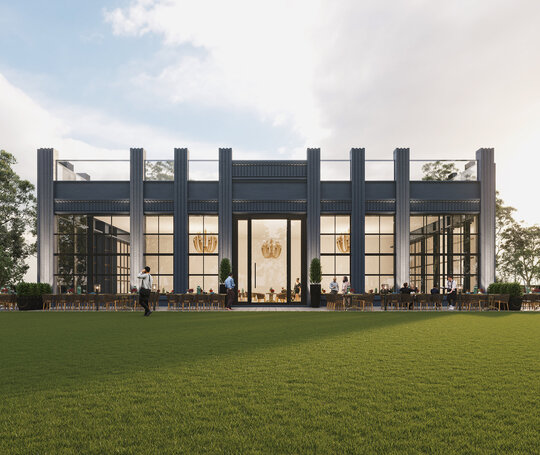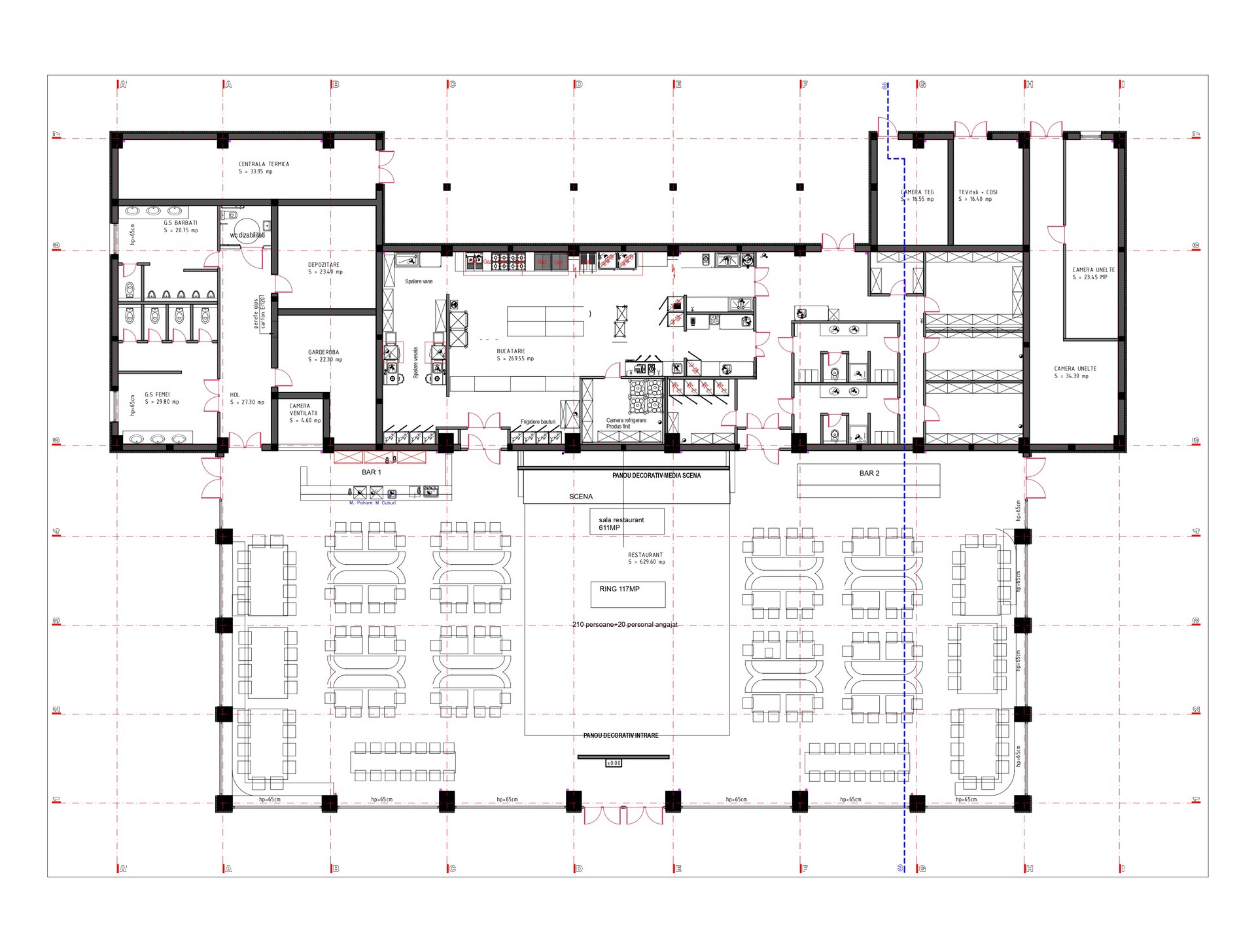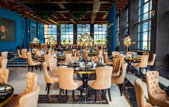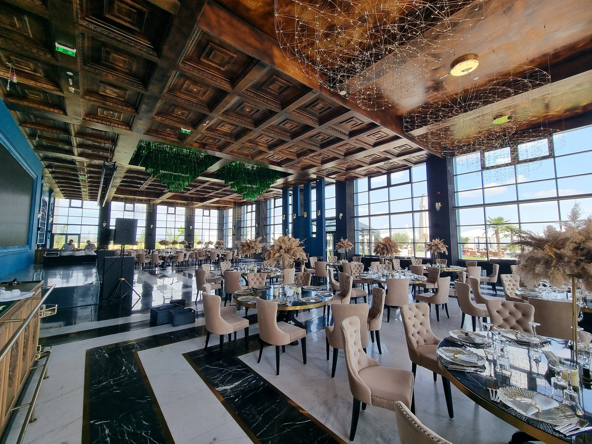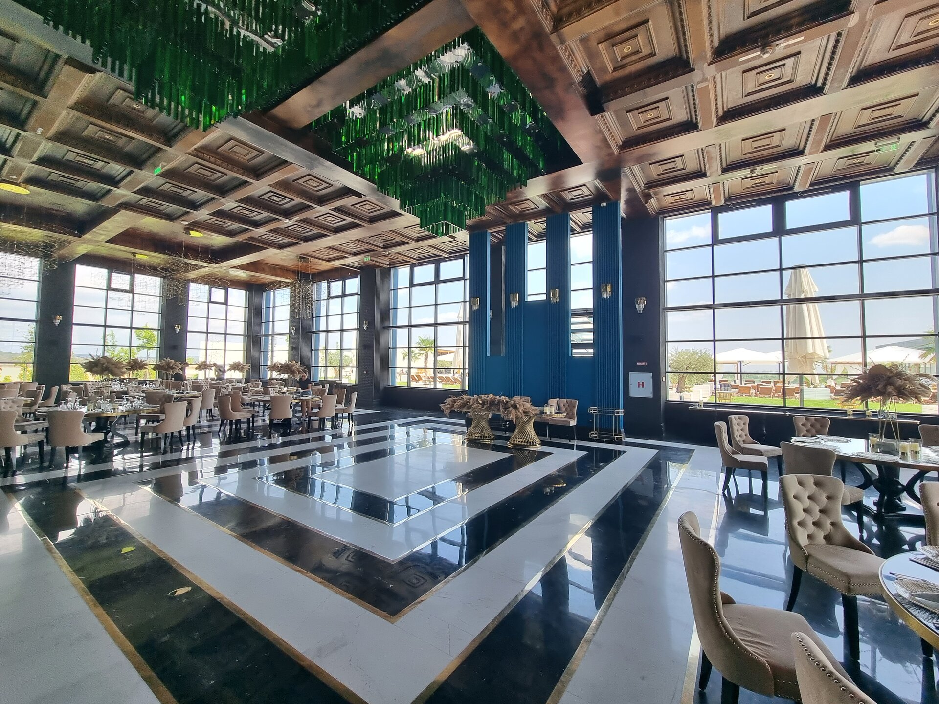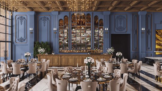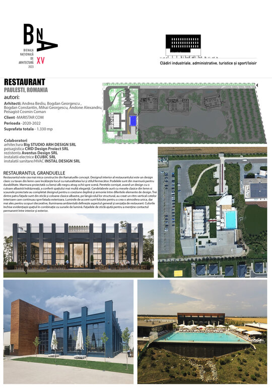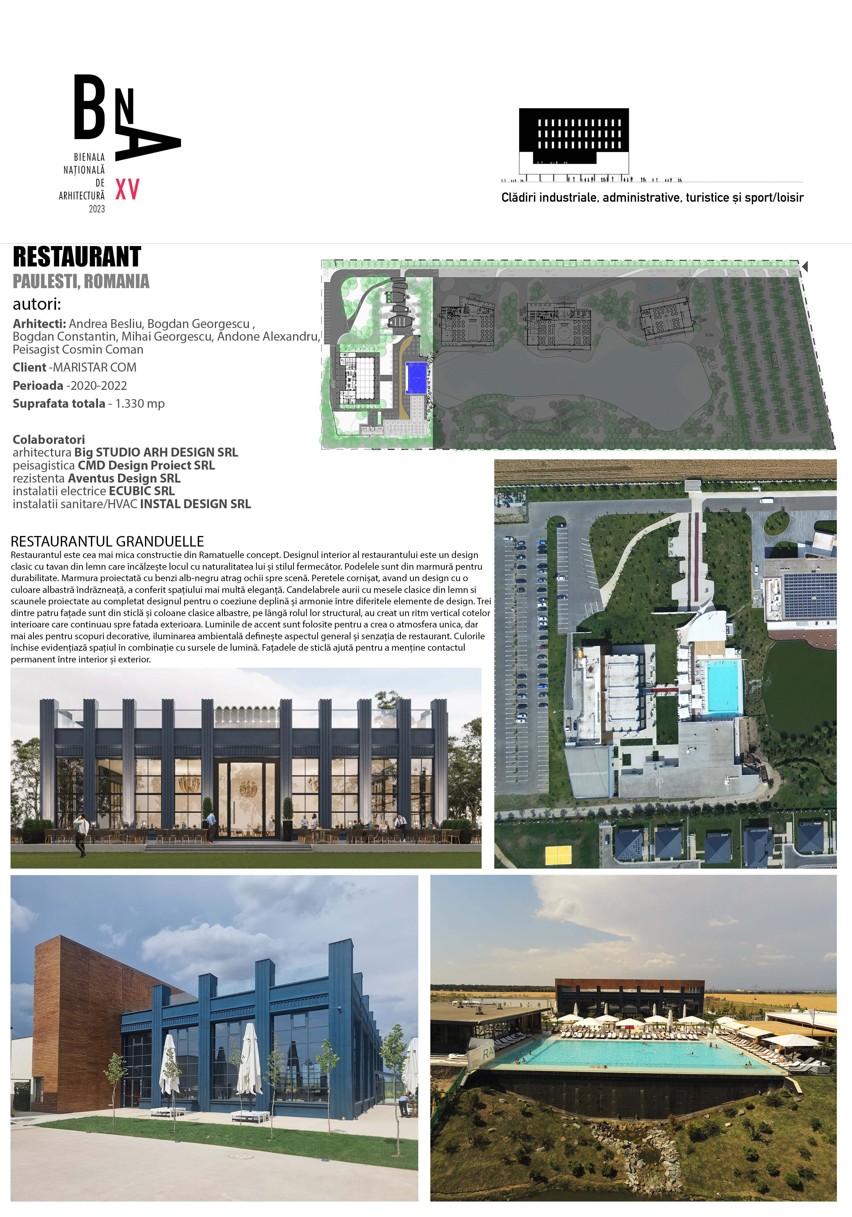 Restaurantul Granduelle este cea mai mica constructie din Ramatuelle concept. Designul interior al restaurantului este un design clasic cu tavan din lemn care încălzește locul cu naturalitatea lui și stilul fermecător. Podelele sunt din marmură pentru durabilitate. Marmura proiectată cu benzi alb-negru atrag ochii spre scenă. Peretele cornișat, avand un design cu o culoare albastră îndrăzneață, a conferit spațiului mai multă eleganță. Candelabrele aurii cu mesele clasice din lemn si scaunele proiectate au completat designul pentru o coeziune deplină și armonie între diferitele elemente de design. Trei dintre patru fațade sunt din sticlă și coloane clasice albastre, pe lângă rolul lor structural, au creat un ritm vertical cotelor interioare care continuau spre fatada exterioara. Luminile de accent sunt folosite pentru a crea o atmosfera unica, dar mai ales pentru scopuri decorative, iluminarea ambientală definește aspectul general și senzația de restaurant. Culorile închise evidențiază spațiul în combinație cu sursele de lumină. Fațadele de sticlă ajută pentru a menține contactul permanent între interior și exterior.