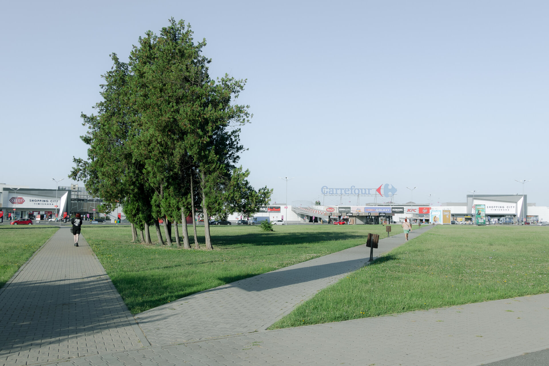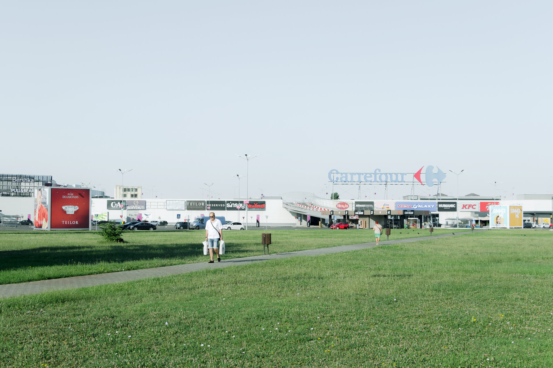 Spațiul documentat și prezentat în cele ce urmează ilustrează perfect nevoia umană de fi prezent într-un spațiu, de a se manifesta, de-și însuși un spațiu, de a-i oferi identitate. Doar o suprafață întinsă de teren, ce deține rolul de a anunța pietonul că este pe punctul de a intra în proximitatea ademenitoare creată de obiectul principal care cuprinde întregul orizont - mall-ul. Scara obiectului este percepută prin dubla traversare a celor două spații vaste, premergătoare. Cele două alei care străbat terenul verde conduc către cele două intrări în mall, traversând zona extinsă a parcării, de unde circulația pietonală lipsește aproape în întregime.