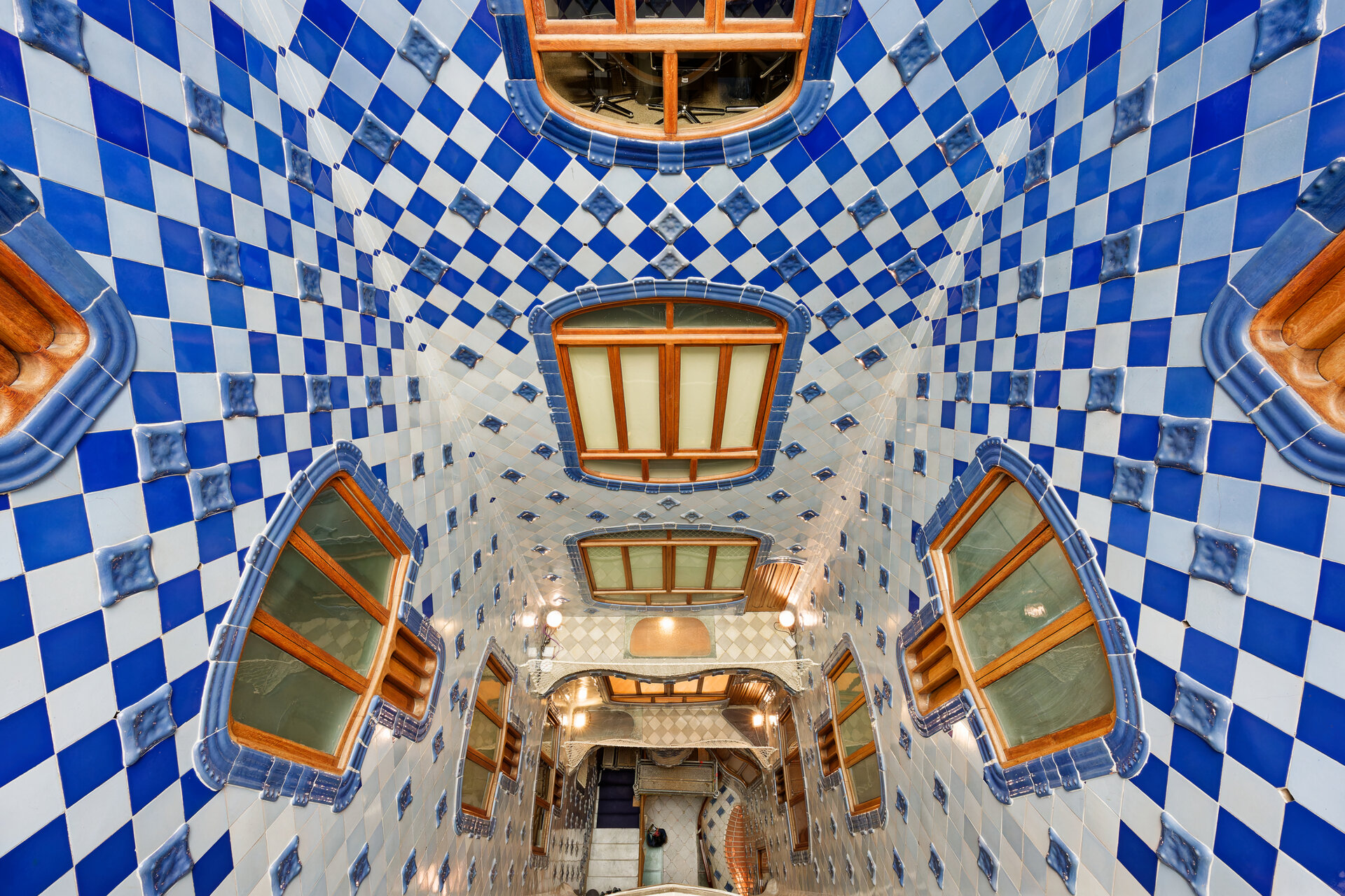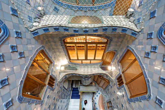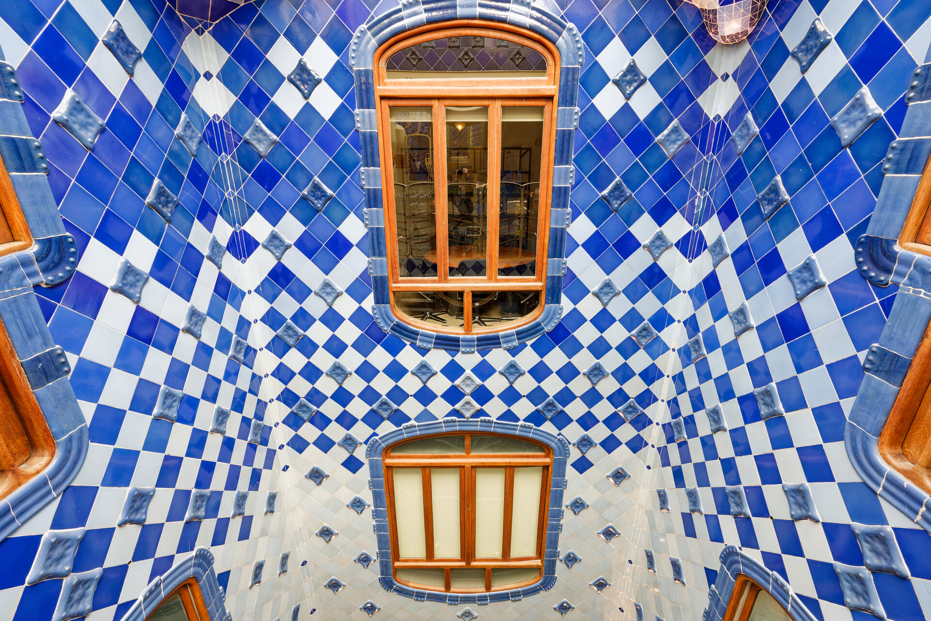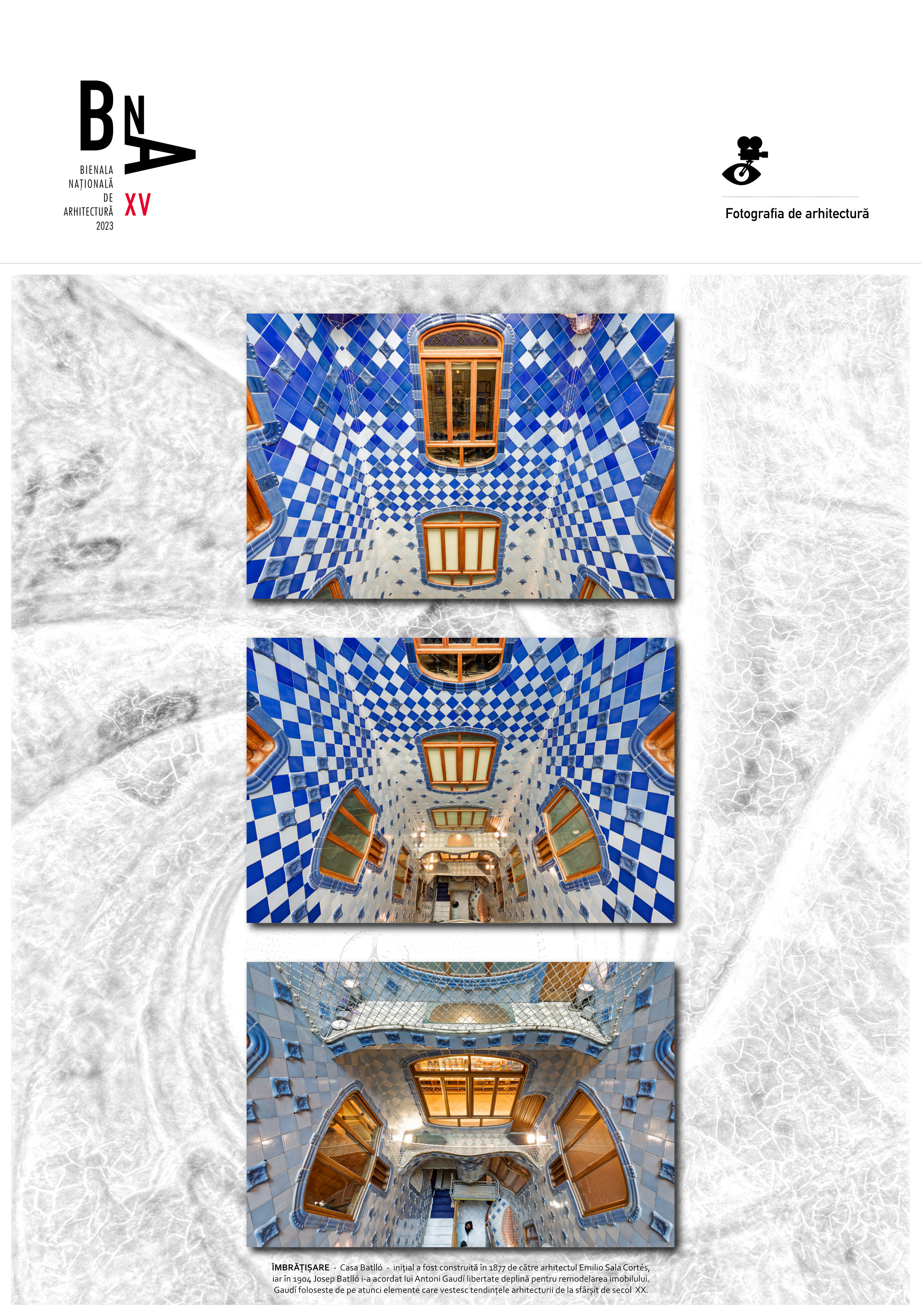 - Casa Batlló - inițial a fost construită în 1877 de către arhitectul Emilio Sala Cortés, iar în 1904 Josep Batlló i-a acordat lui Antoni Gaudí libertate deplină pentru remodelarea imobilului. Gaudí foloseste de pe atunci elemente care vestesc tendințele arhitecturii de la sfârșit de secol XX. Cele trei imagini reprezintă curtea de lumină, circulații verticale și ventilație.