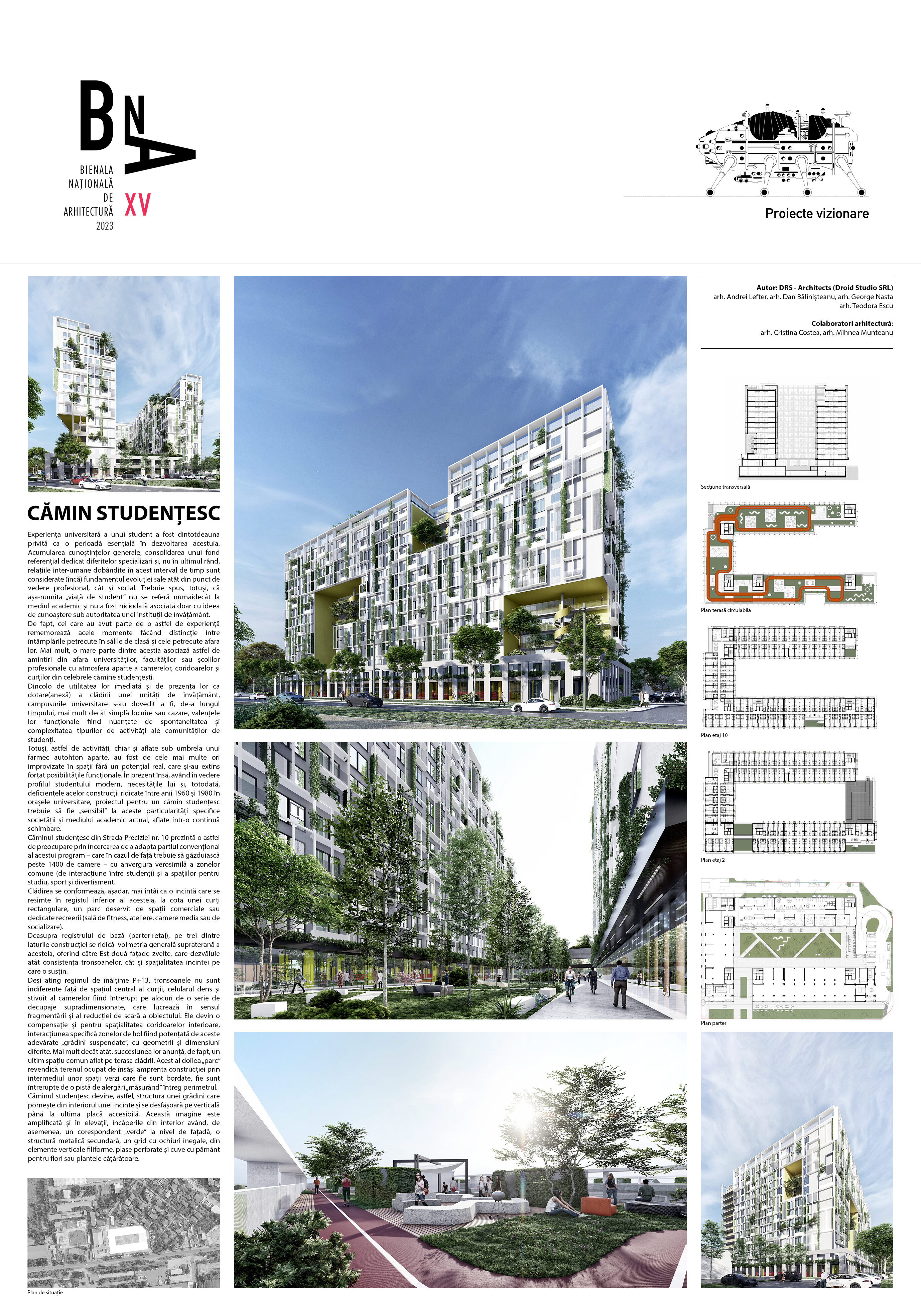 Căminul studențesc din Strada Preciziei nr. 10 prezintă o astfel de preocupare prin încercarea de a adapta partiul convențional al acestui program – care în cazul de față trebuie să găzduiască peste 1400 de camere – cu anvergura verosimilă a zonelor comune (de interacțiune între studenți) și a spațiilor pentru studiu, sport și divertisment.