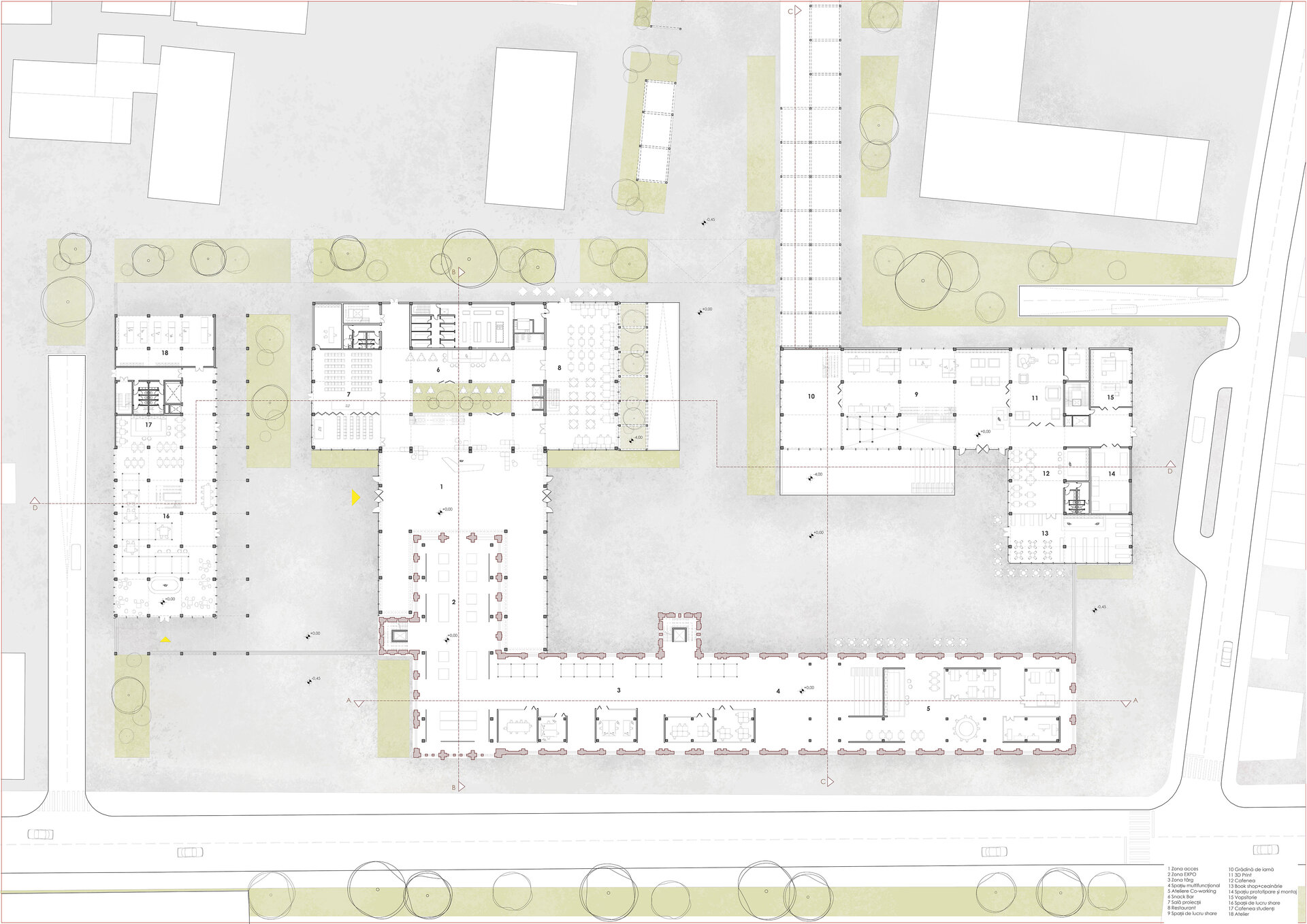 Propunerea are ca scop crearea unui spațiu care să faciliteze contactul direct, schimbul de idei, practica si dezvoltarea de competențe, incurajarea mobilitatilor profesionale si a legaturilor intre profesionisti din diferite domenii sub aceeasi sfera a creativitatii. Se doreste creearea unui ecosistem dinamic deschis în care găsești spații de co-working, ateliere individuale si in regim de sharing, ateliere de lemn & metal, spatii de prototipare si testare, vopsitorie si zone printare 3D, studio-uri private, spații de întâlniri și evenimente si alte spatii conexe. Utilizatorii tintă sunt antreprenori ce activează în domenii diferite precum : design de obiect, arhitectură, pictură, sculptură, graphic design. Ansamblul cuprinde facilităti mixte iar acest mix de functiuni asigură sustenabilitatea spatiului si asigură o diversitate de utilizatori si proiecte. Comunitatea astfel formată este alcătuită din profesionisti si mestesugari veniti din domenii diferite, dar care pot conlucra la un loc. Datoriă spatiilor componente, complexul poate deveni si loc de practică profesională penru studentii din scolile profesionale de meserii sau pentru publicul curios de modul de lucru si dezvoltare a obiectelor. Tema de proiectare vizeaza o stare de echilibru intre spatiile de tip atelier individual, spatiile de co-working, spatiile de workshop pentru public si zonele in care utilizatorii se pot documenta sau spatiile in care pot avea loc evenimente culturale. Intercatiunea cu publicul se poate realiza in zonele de workshop, de expunere a produselor rezultate in anasamblu, in salile de evenimente si documentare sau in zonele de alimentatie publica de tip restaurant si cafenea.