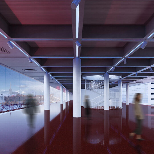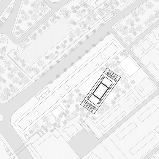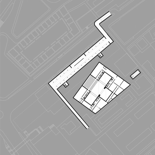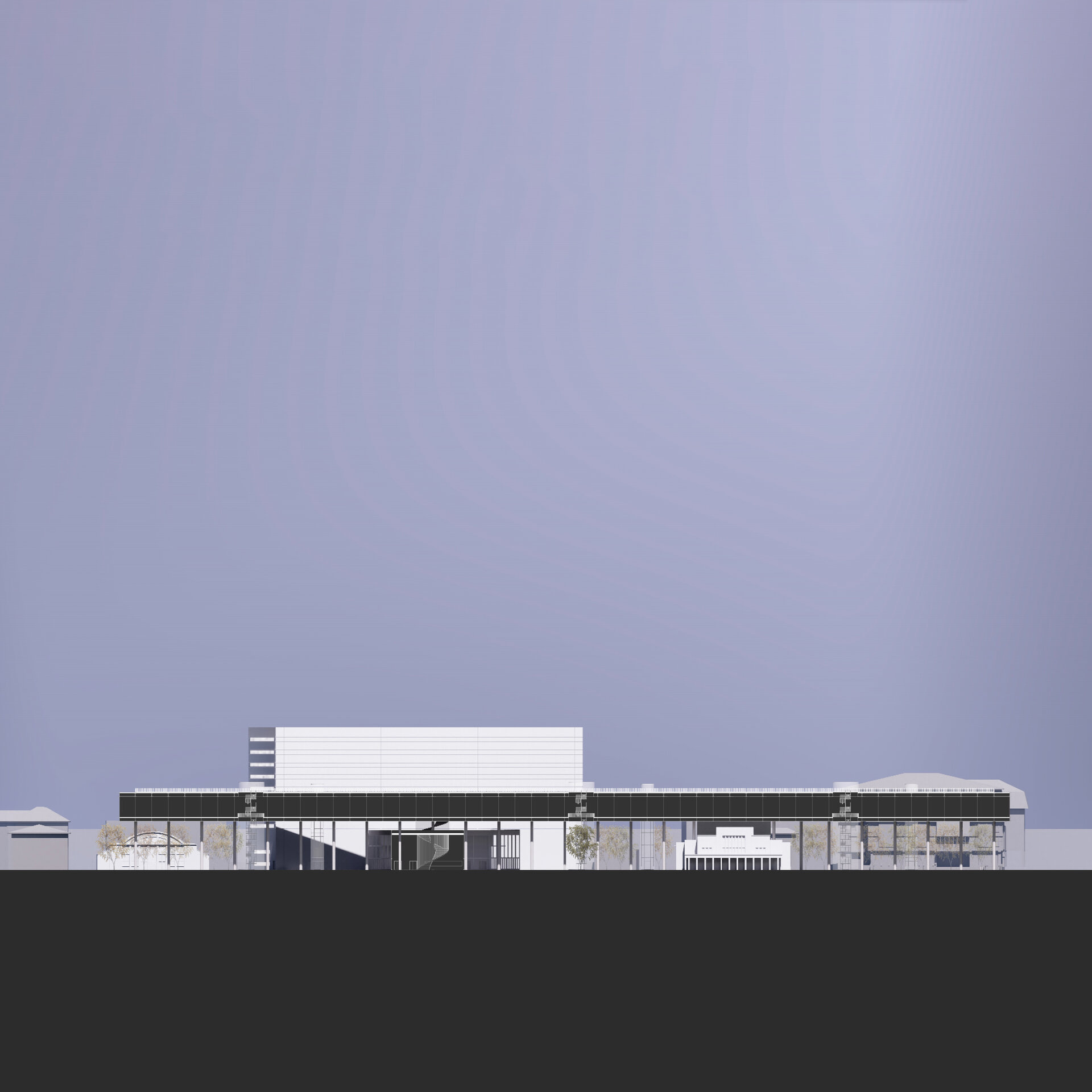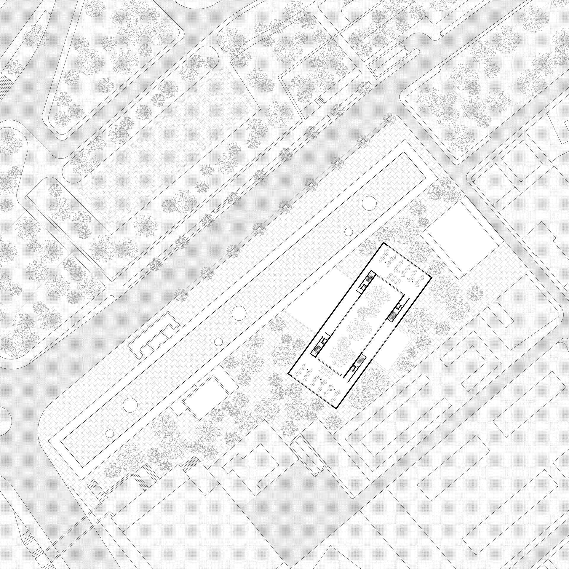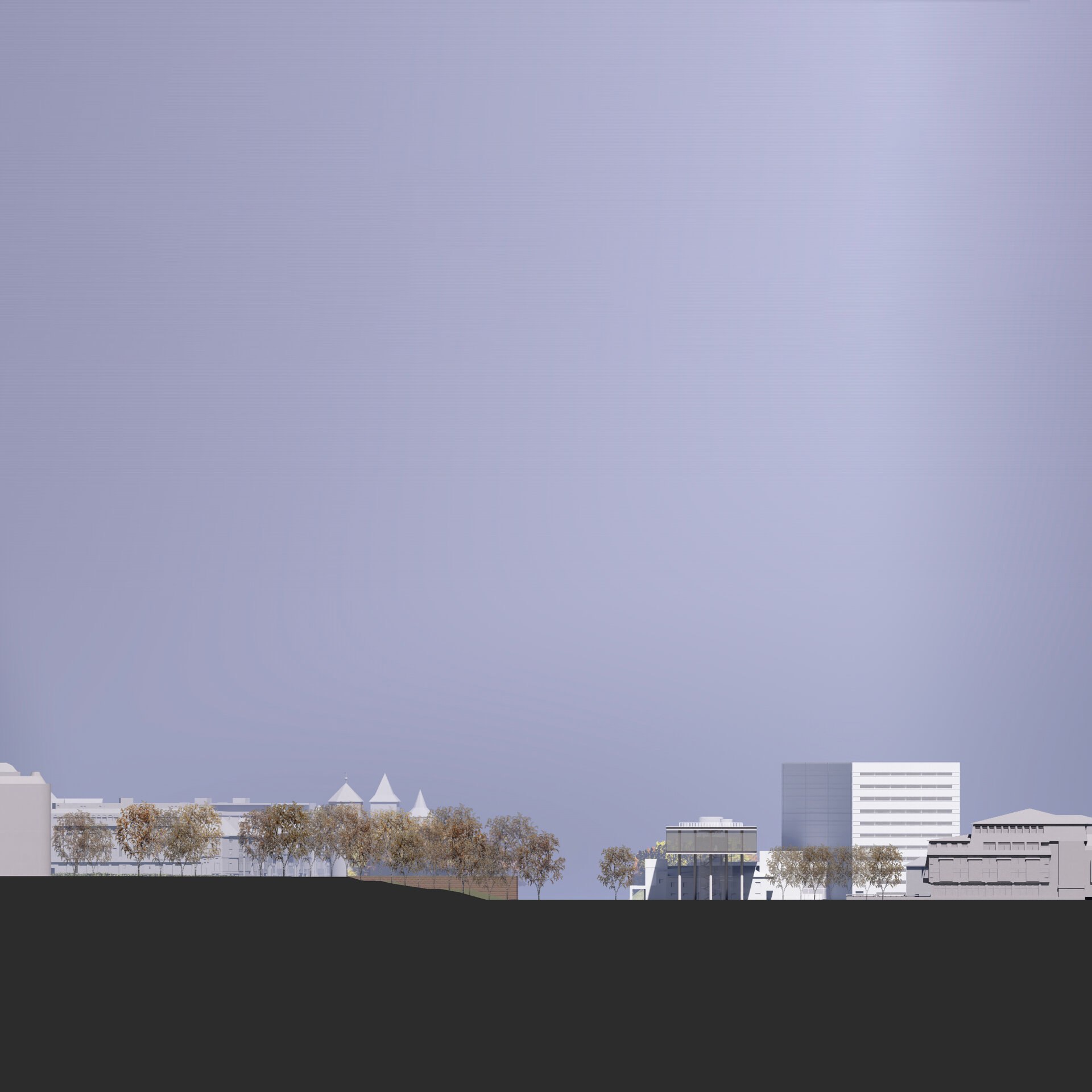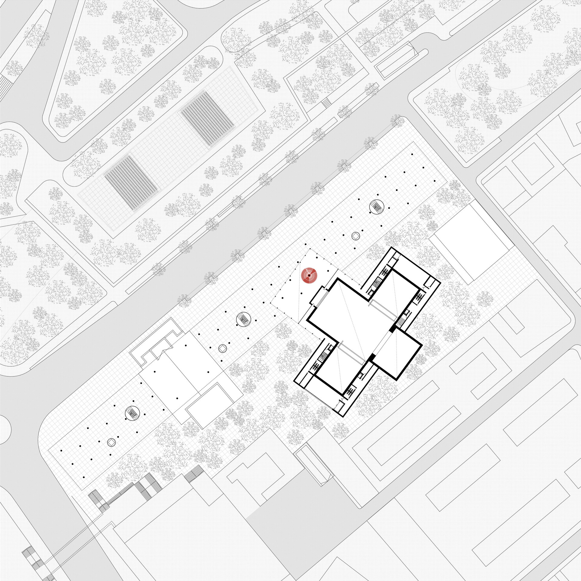Amplasamentul studiat se află într-o zonă caracterizată de fragmentare, care are potențialul de a acționa ca un spațiu de tranziție, estompând limitele atât între oraș și teatru, cât și între fondul istoric și cel nou. Un prim gest la nivelul cadrului urban este acela de a contura o limită clară și în același timp permeabilă între spațiul major definit de Hotelurile Continental Forum, Ramada și Casa Prima Ardeleană, respectiv spațiul minor definit de Hotelurile Ibis, Ramada și Casa de Cultură a Sindicatelor. Gestul este reprezentat de un element arhitectural detașat de sol care traversează situl în lungul acestuia.