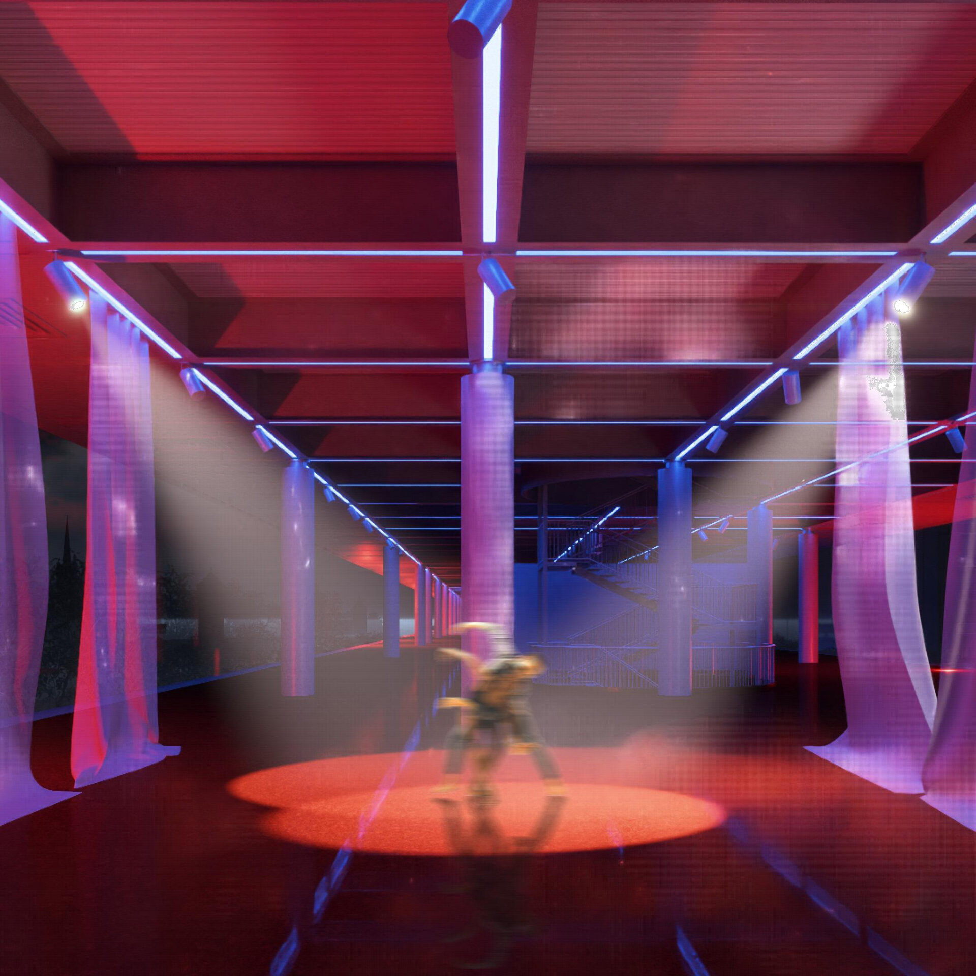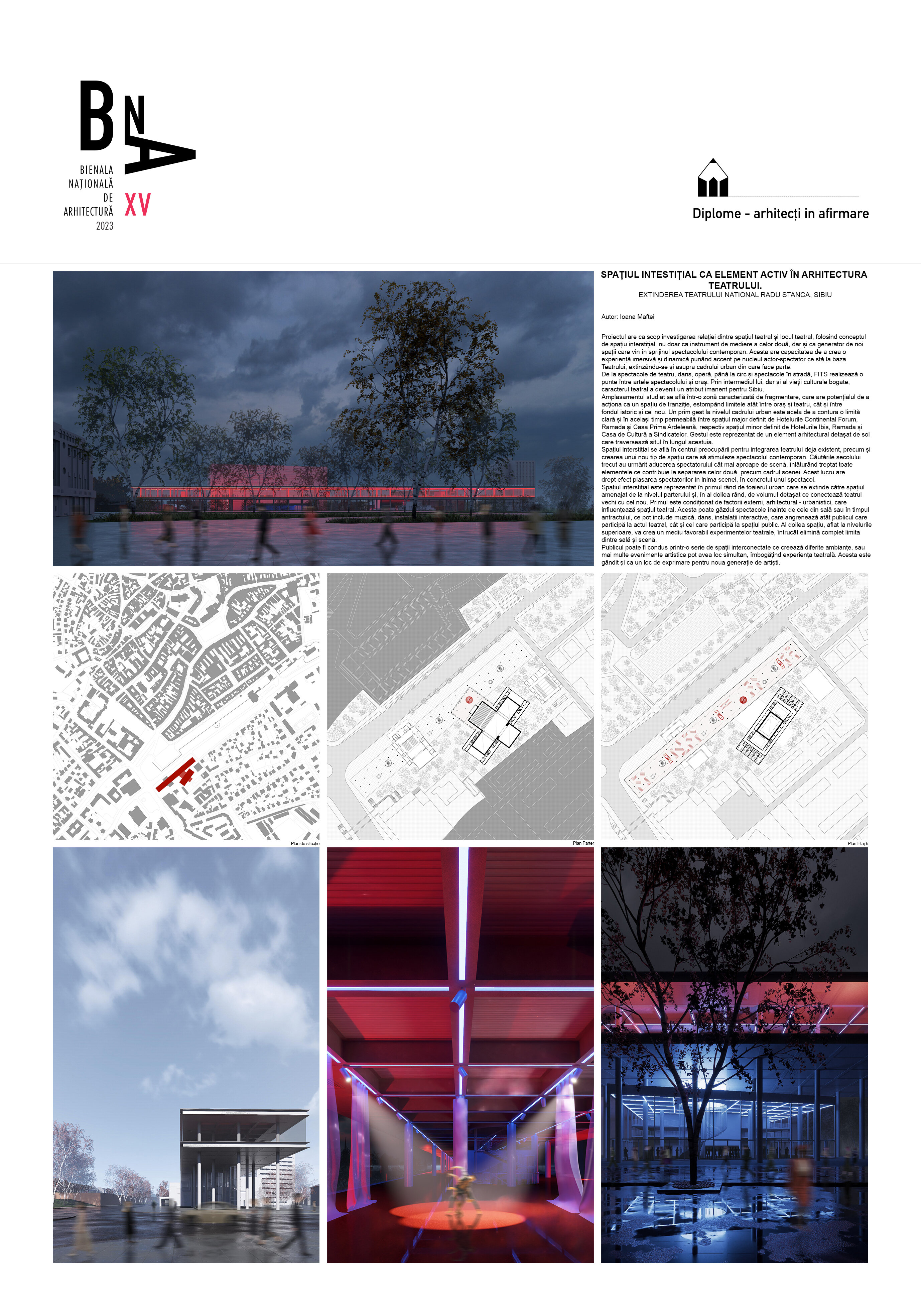 Teatrul contemporan provoacă limitele tradiționale impuse de realism și naturalism. Acesta se bazează pe experimentarea unor noi forme teatrale, punând accent pe relația dintre auditoriu și scenă, prin intermediul prezenței actorilor sau tehnologiei. Proiectul are ca scop investigarea relației dintre spațiul teatral și locul teatral, folosind conceptul de spațiu interstițial, nu doar ca instrument de mediere a celor două, dar și ca generator de noi spații care creeaza spectacolului contemporan. Acesta are capacitatea de a crea o experiență imersivă și dinamică punând accent pe nucleul actor-spectator ce stă la baza Teatrului, extinzându-se și asupra cadrului urban din care face parte.