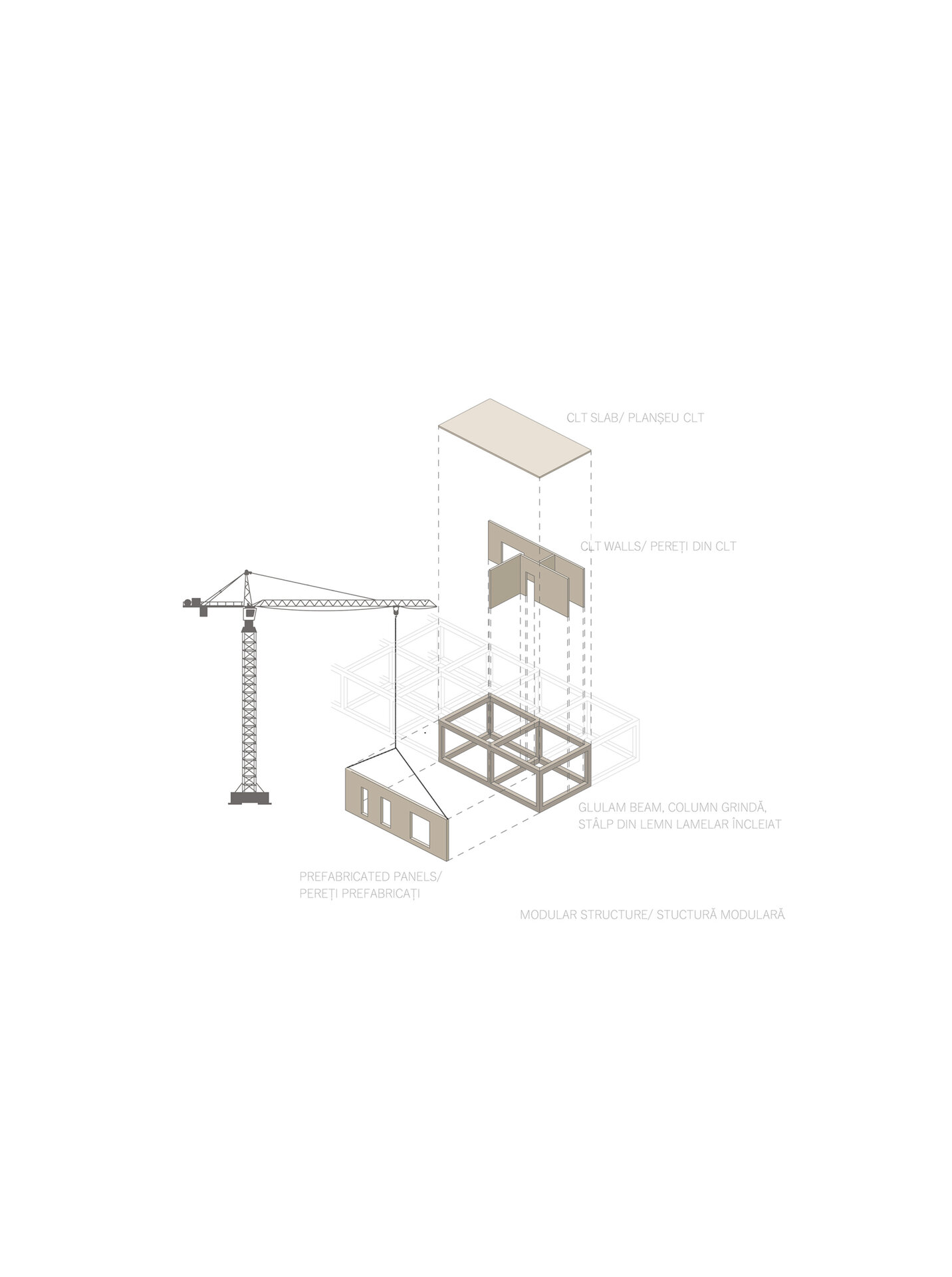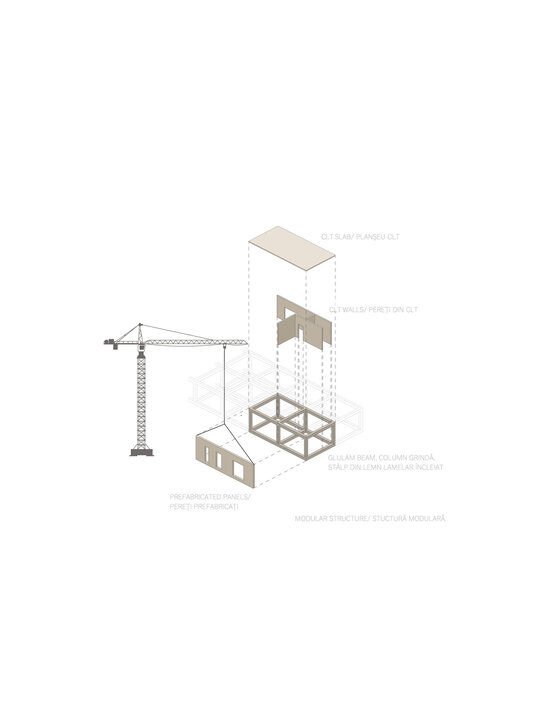 În cazul structurii am optat pentru o structură în cadre din lemn, iar închiderile sunt realizate din panouri din lemn prefabricate care eficientizează timpul de construcție, oferă o siguranță a structurii și o rezistență îndelungată a clădirii.