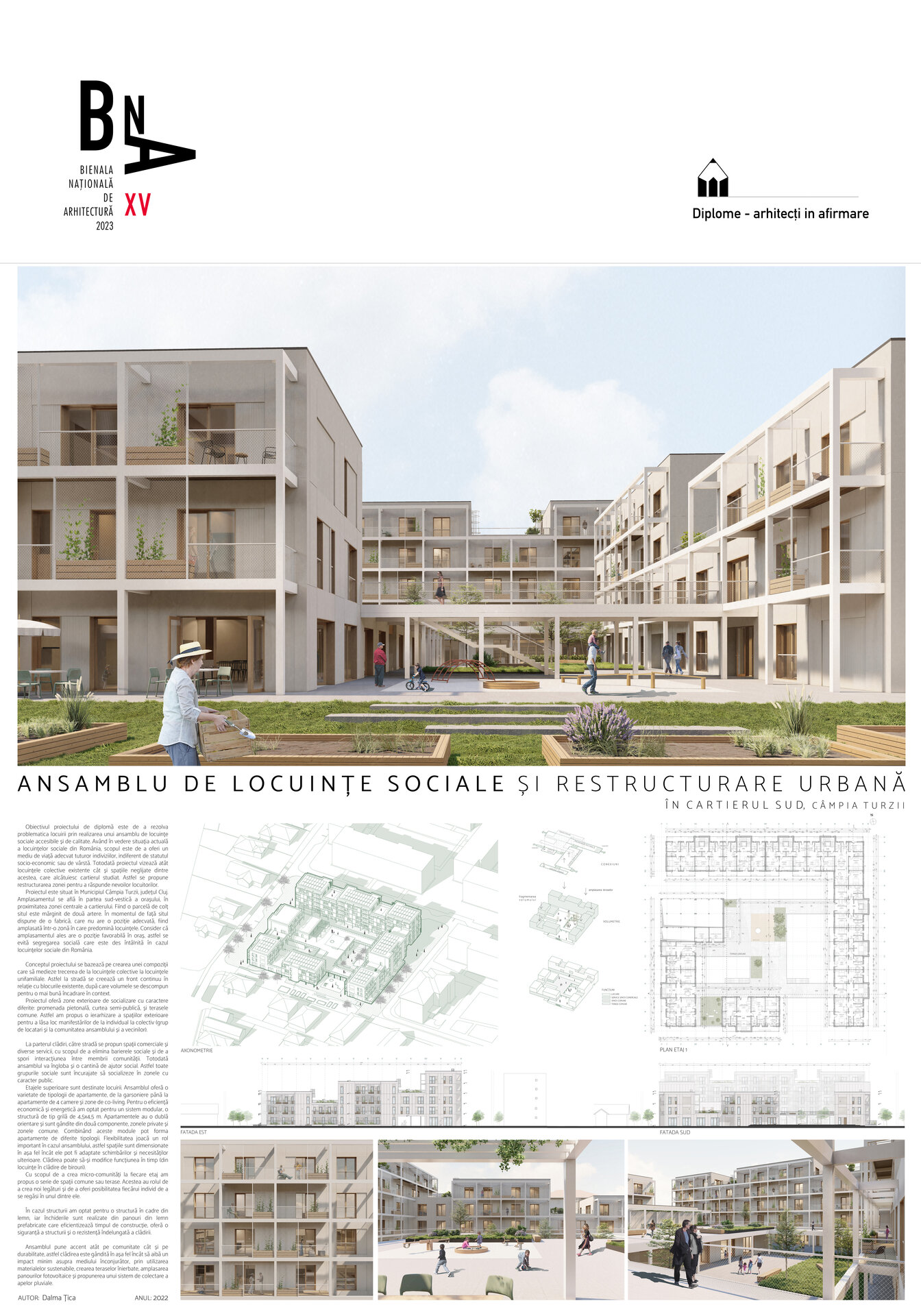 Obiectivul proiectului de diplomă este de a rezolva problematica locuirii prin realizarea unui ansamblu de locuințe sociale accesibile și de calitate. Având în vedere situația actuală a locuințelor sociale din România, scopul este de a oferi un mediu de viață adecvat tuturor indiviziilor, indiferent de statutul socio-economic sau de vârstă. Totodată proiectul vizează atât locuințele colective existente cât și spațiile neglijate dintre acestea, care alcătuiesc cartierul studiat. Astfel se propune restructurarea zonei pentru a răspunde nevoilor locuitorilor.
